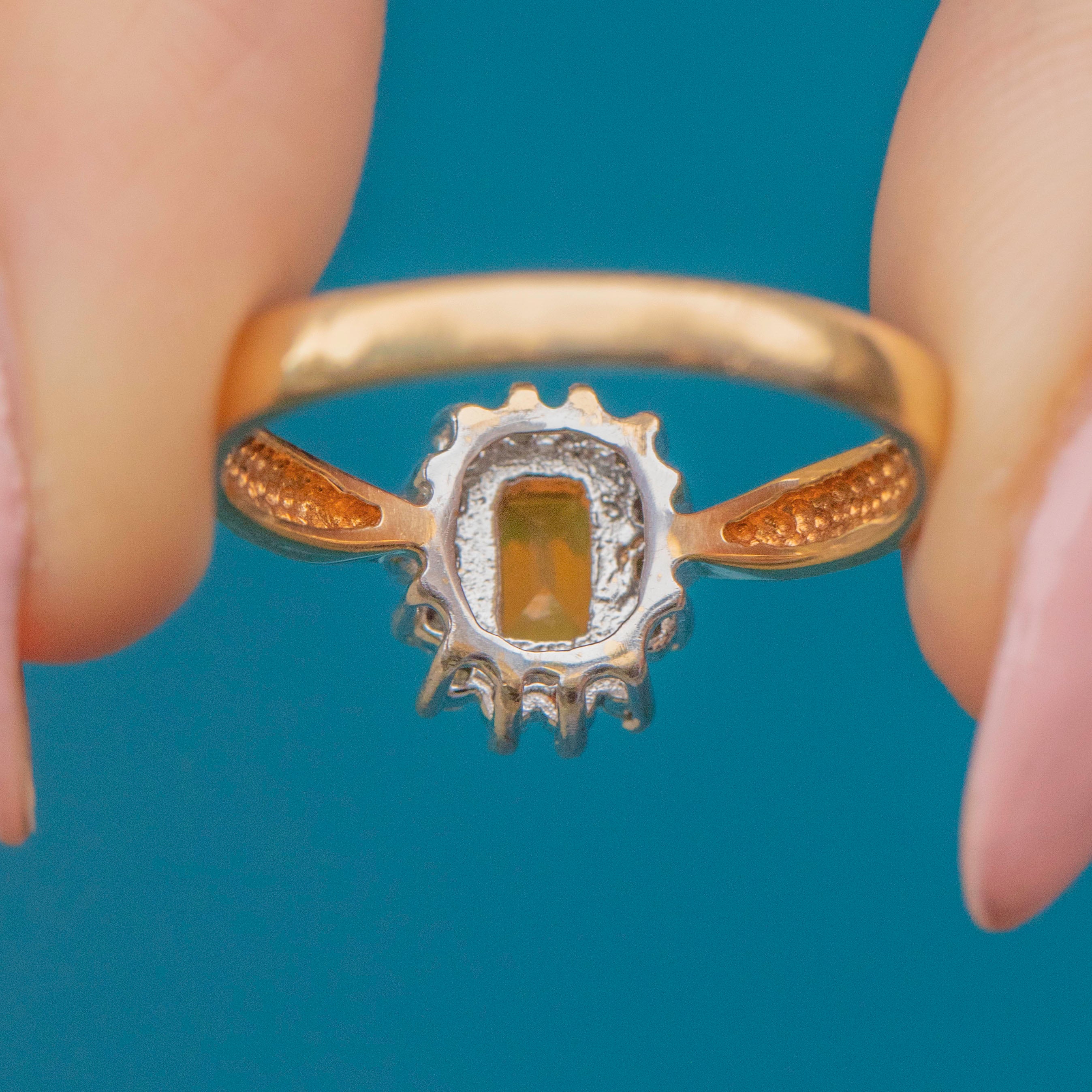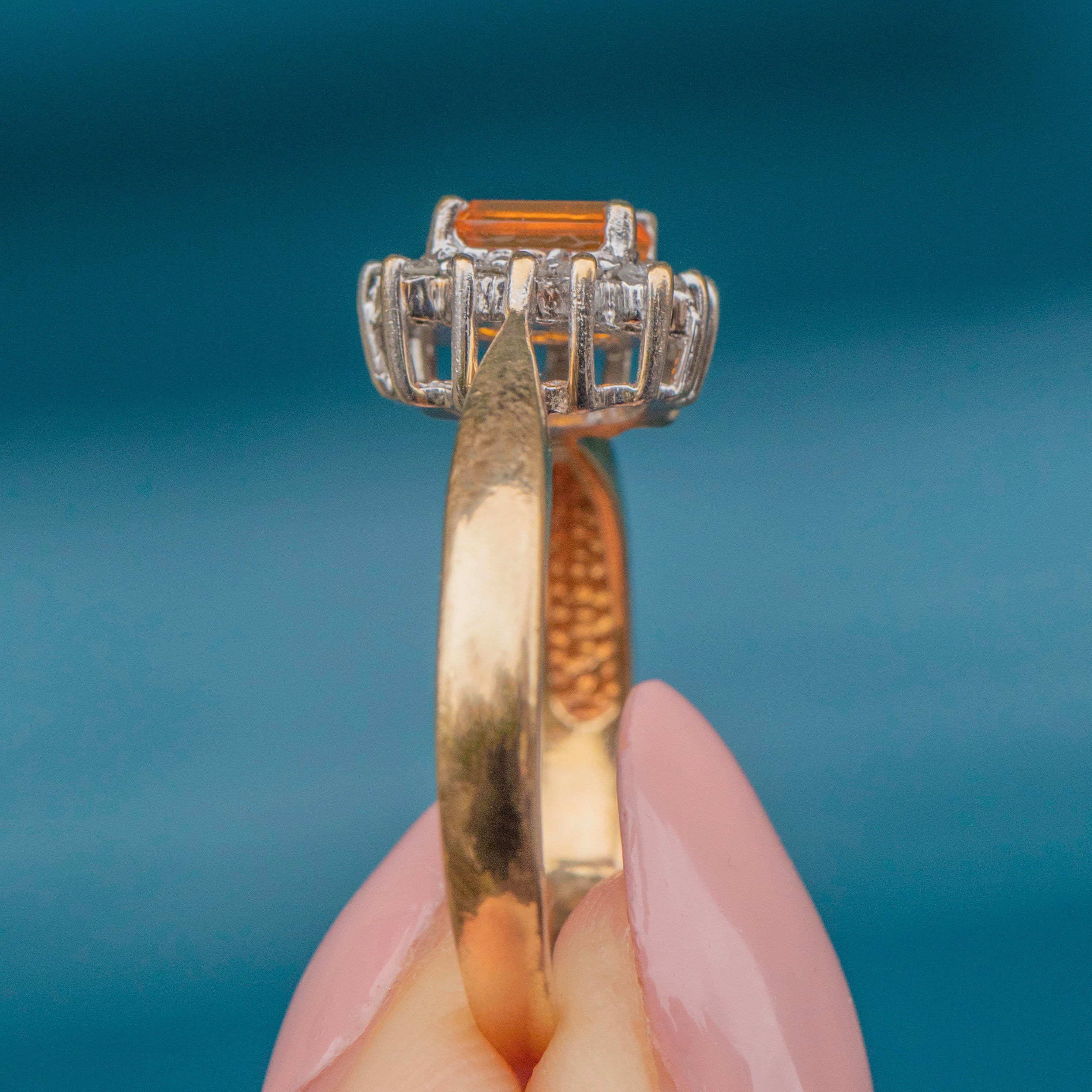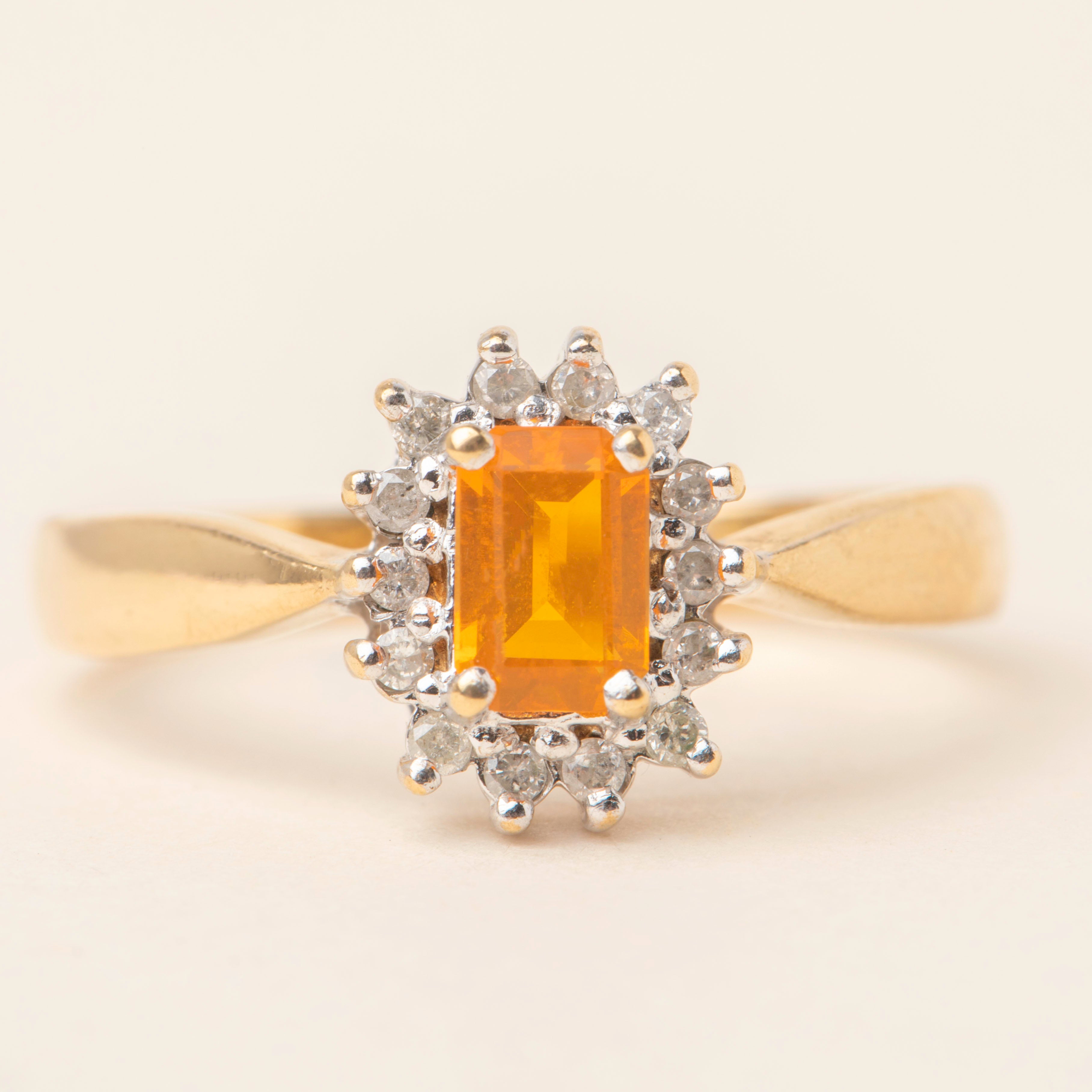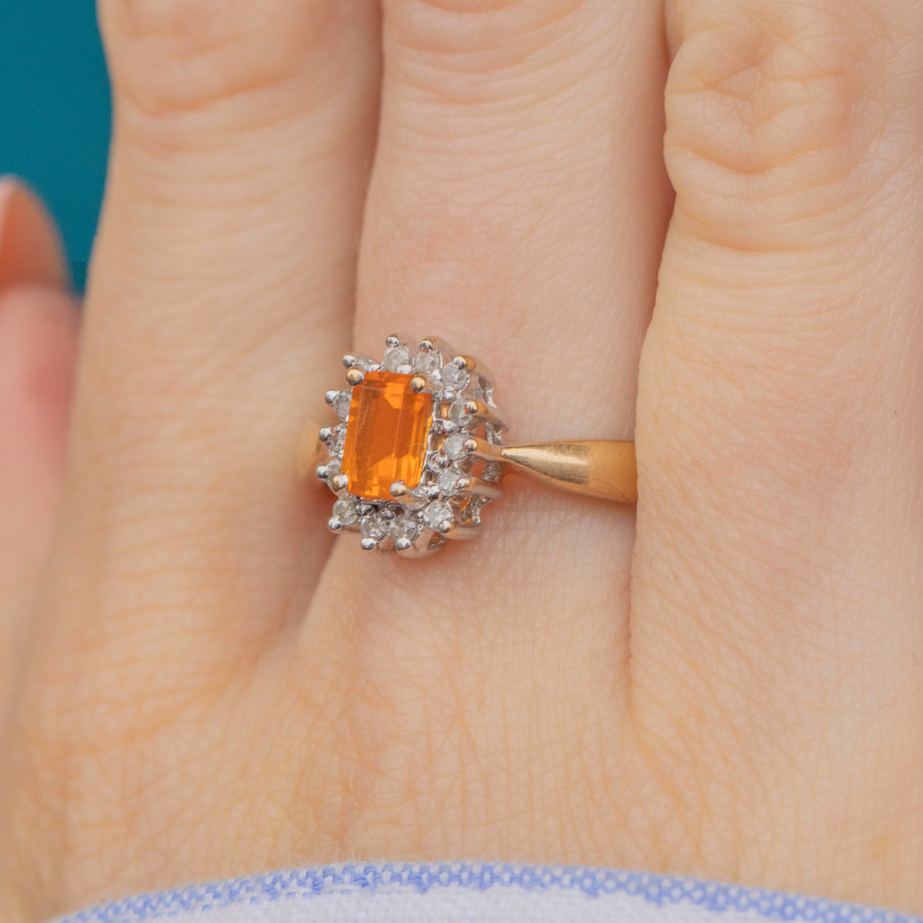 This 9ct Gold Spessartine Garnet Diamond cluster ring is the perfect way to incorporate a pop of colour into your collection, with its fiery Spessartine Garnet at its centre!