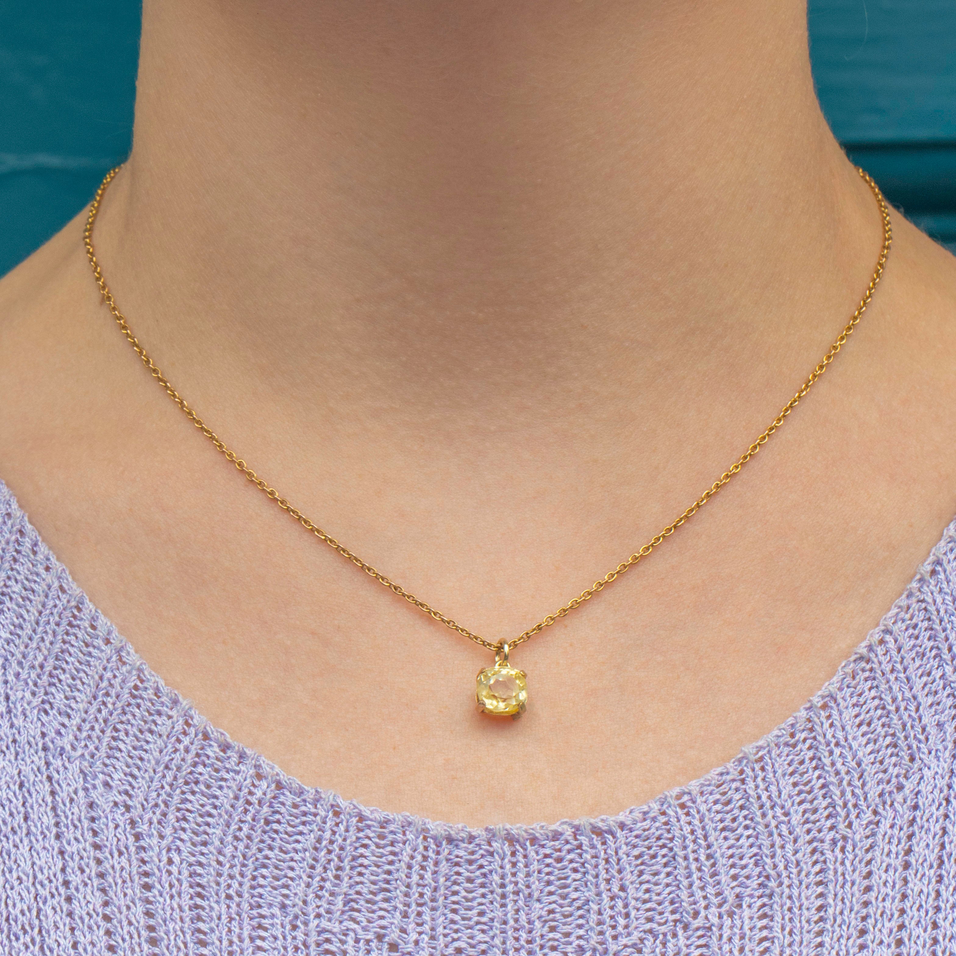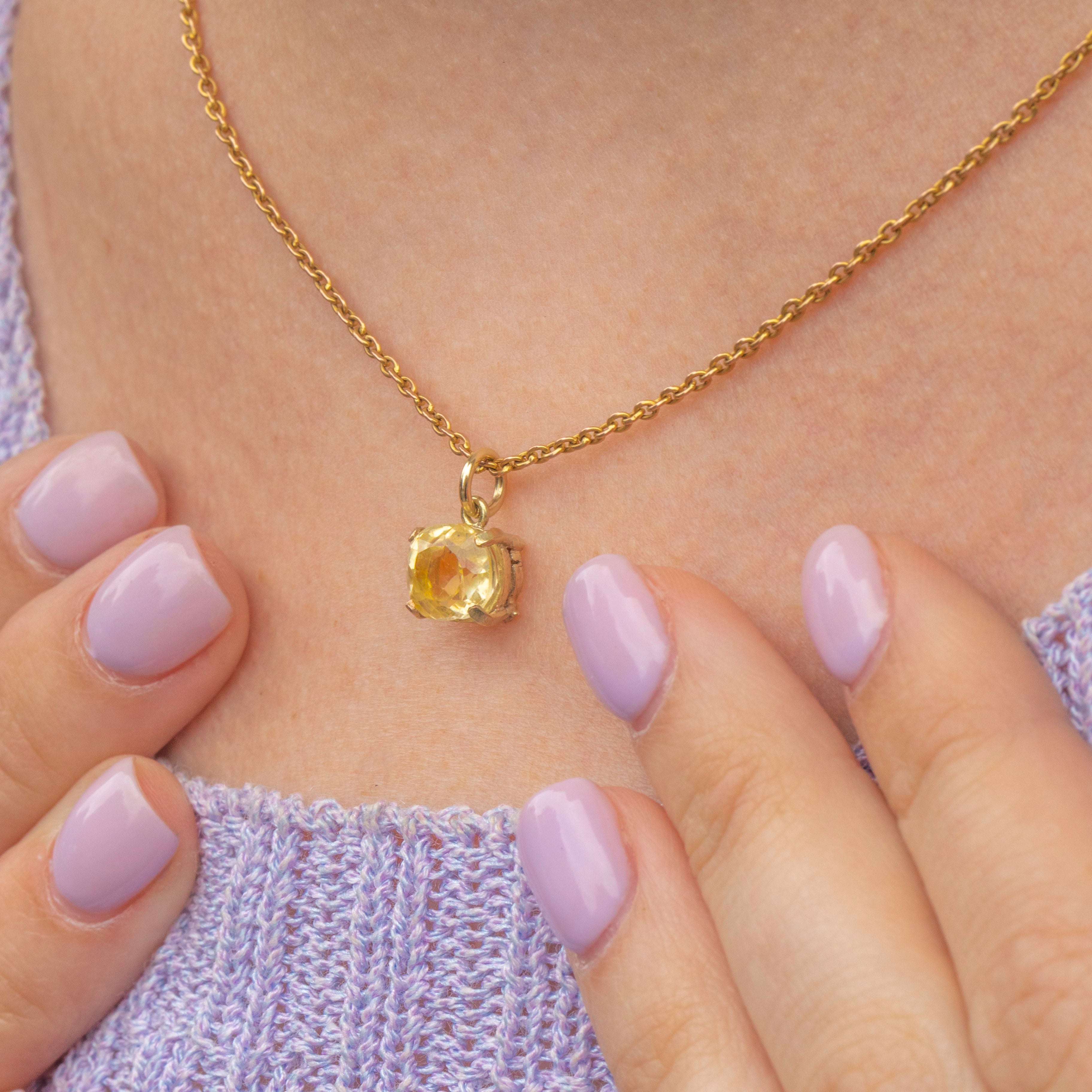 Akin to a lemon drop, this 9ct Gold yellow Sapphire round charm looks good enough to eat! Fabulously faceted, her pastel daffodil hues dance beneath the light, encased in honey-hued 9ct Gold for a radiant finish.