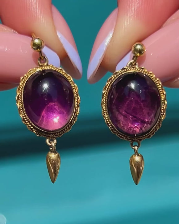These antique 15ct Gold Amethyst Paste cabochon earrings are a delightful pair to brighten up your collection!
