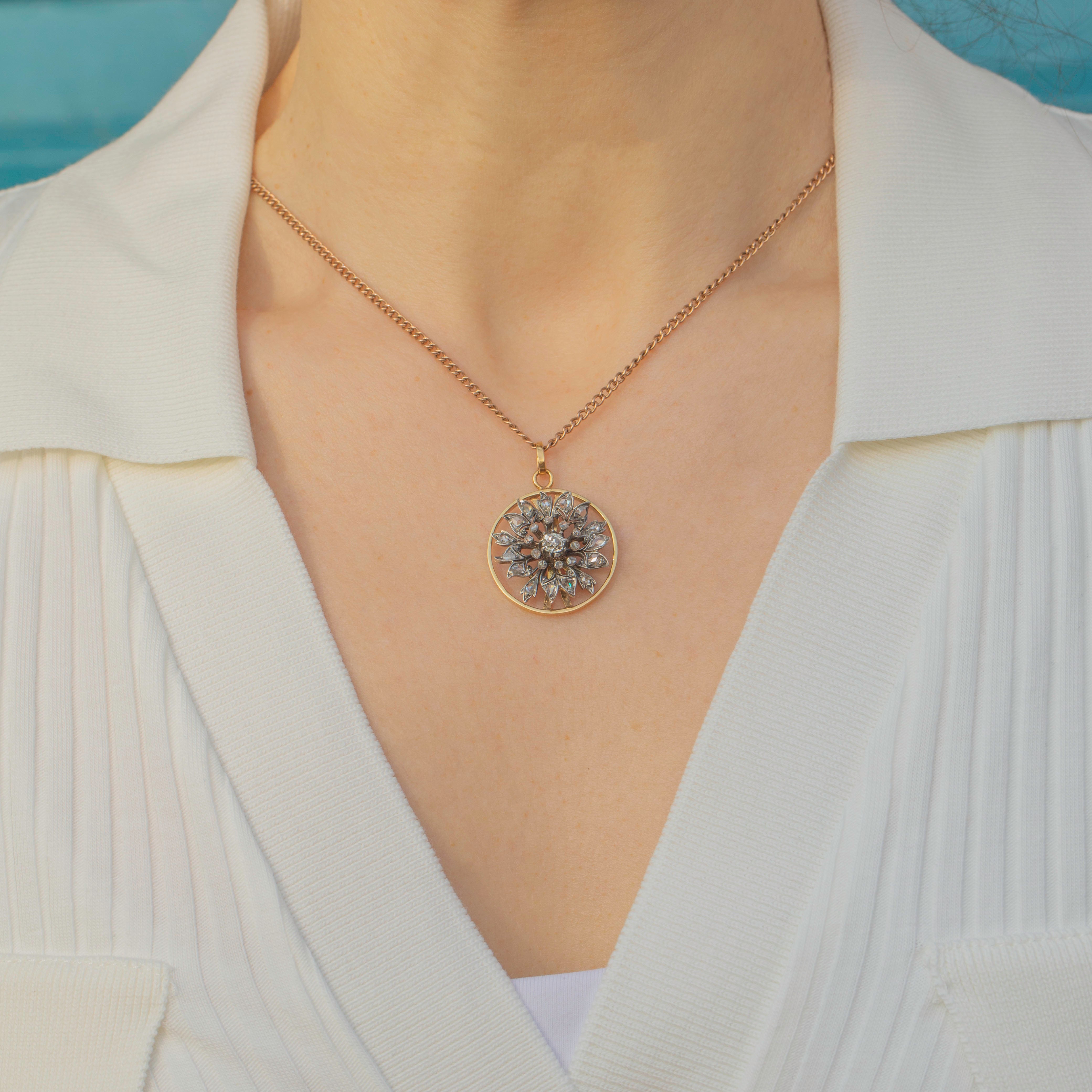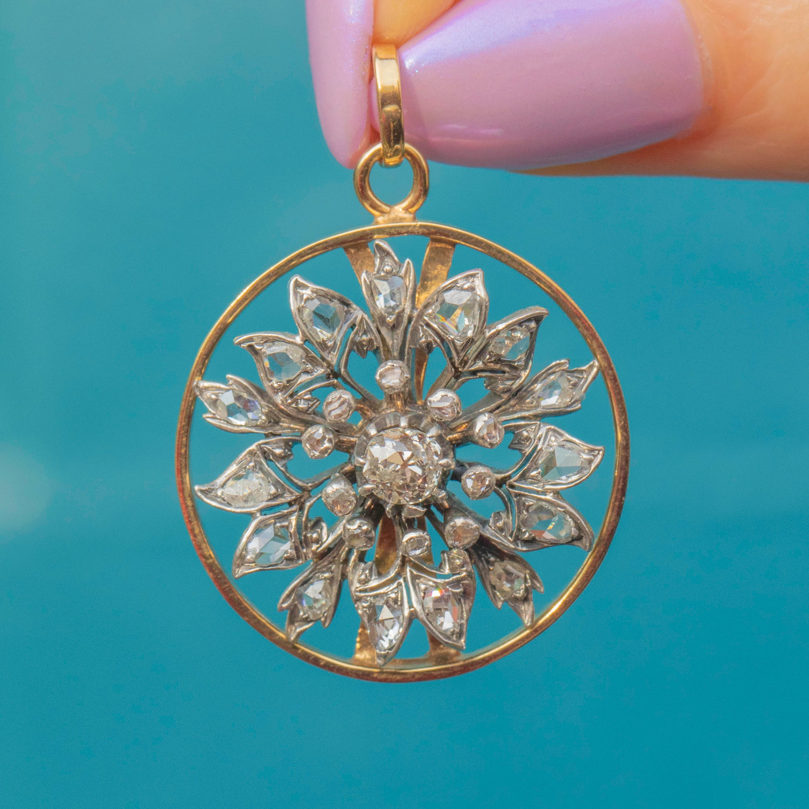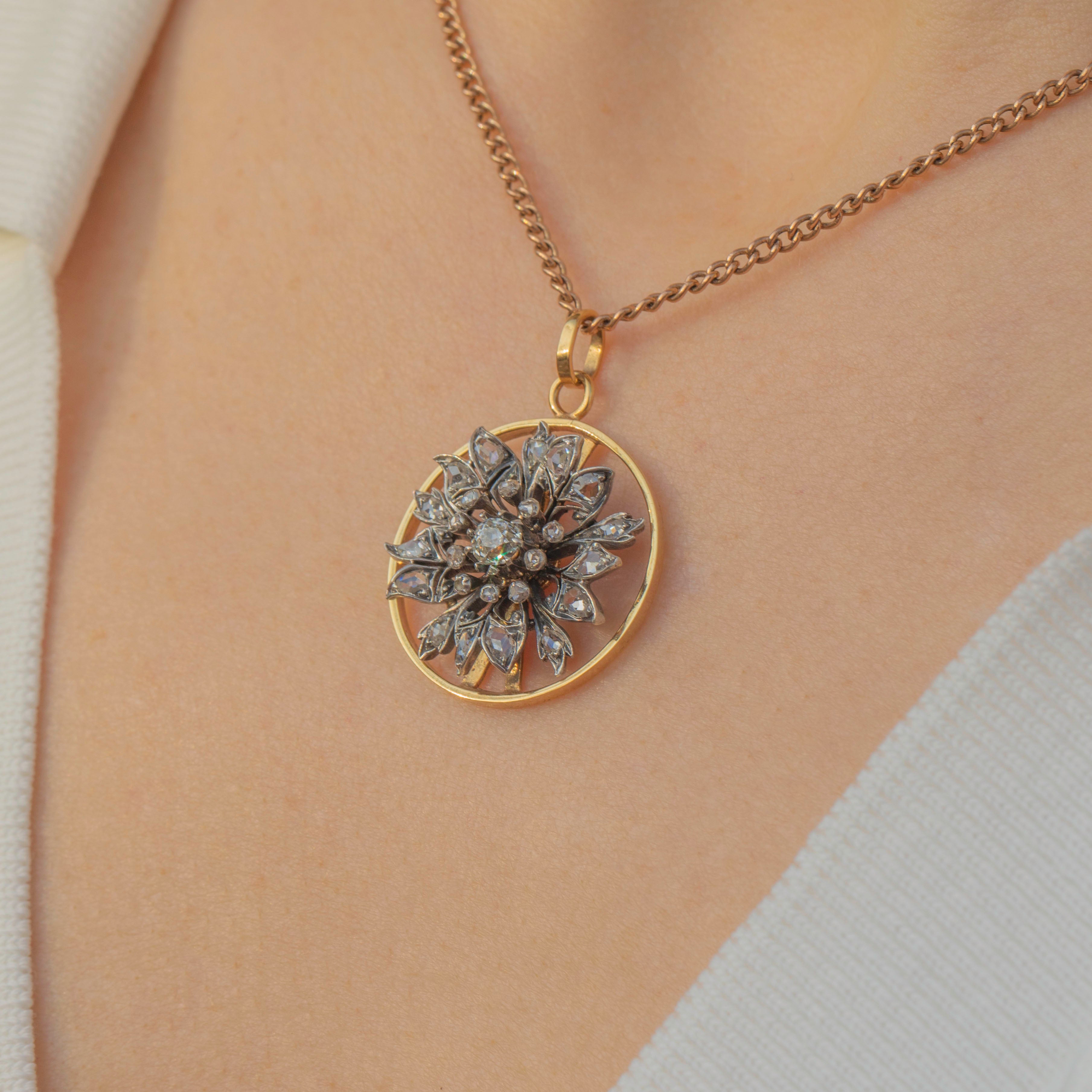 Antique 15ct Gold Diamond Flower Pendant, 0.85ct