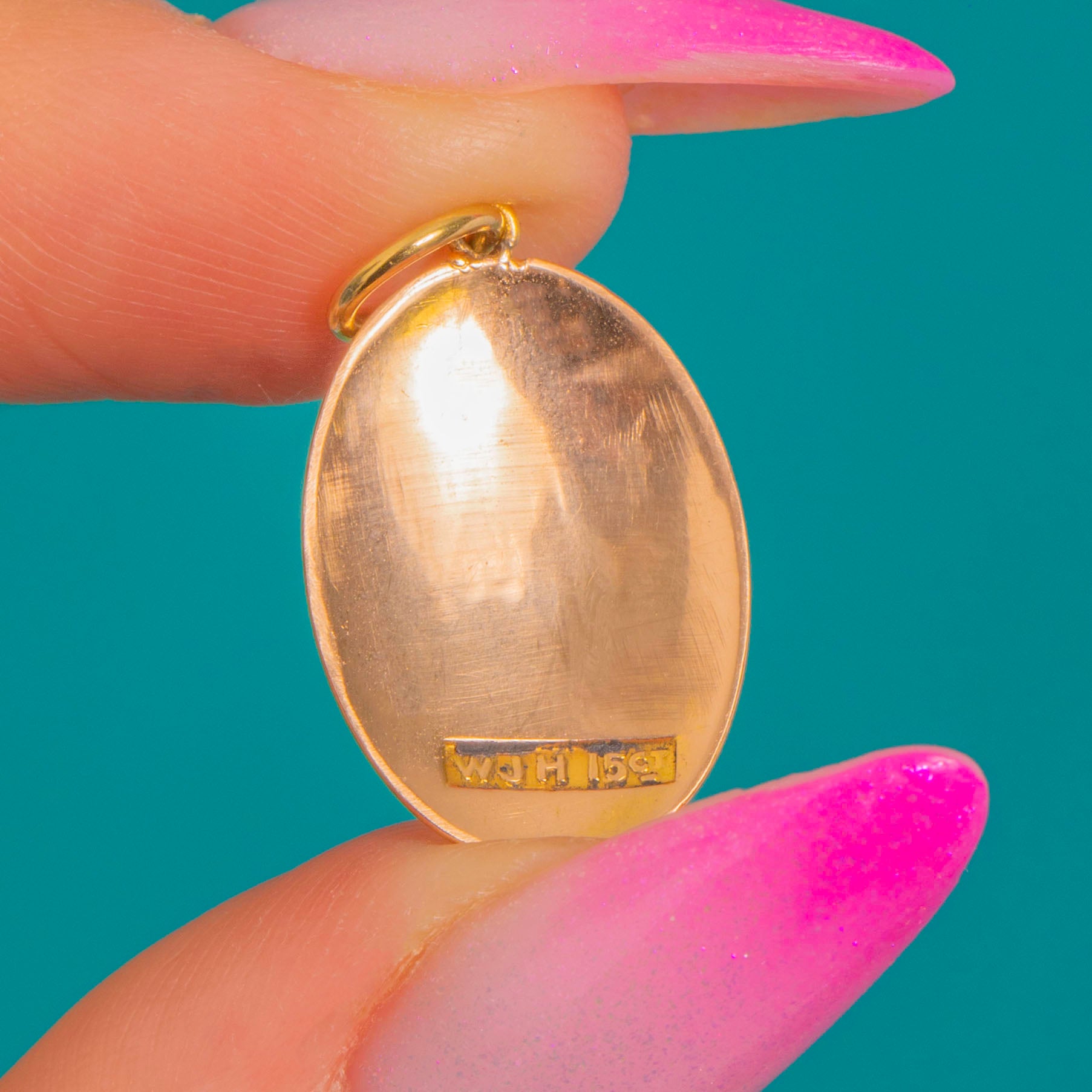 A luminous Victorian 15ct Gold domed disc charm with effortless, minimalist elegance. Its gently convex face is beautifully smooth and highly polished, catching the light with a refined glow.