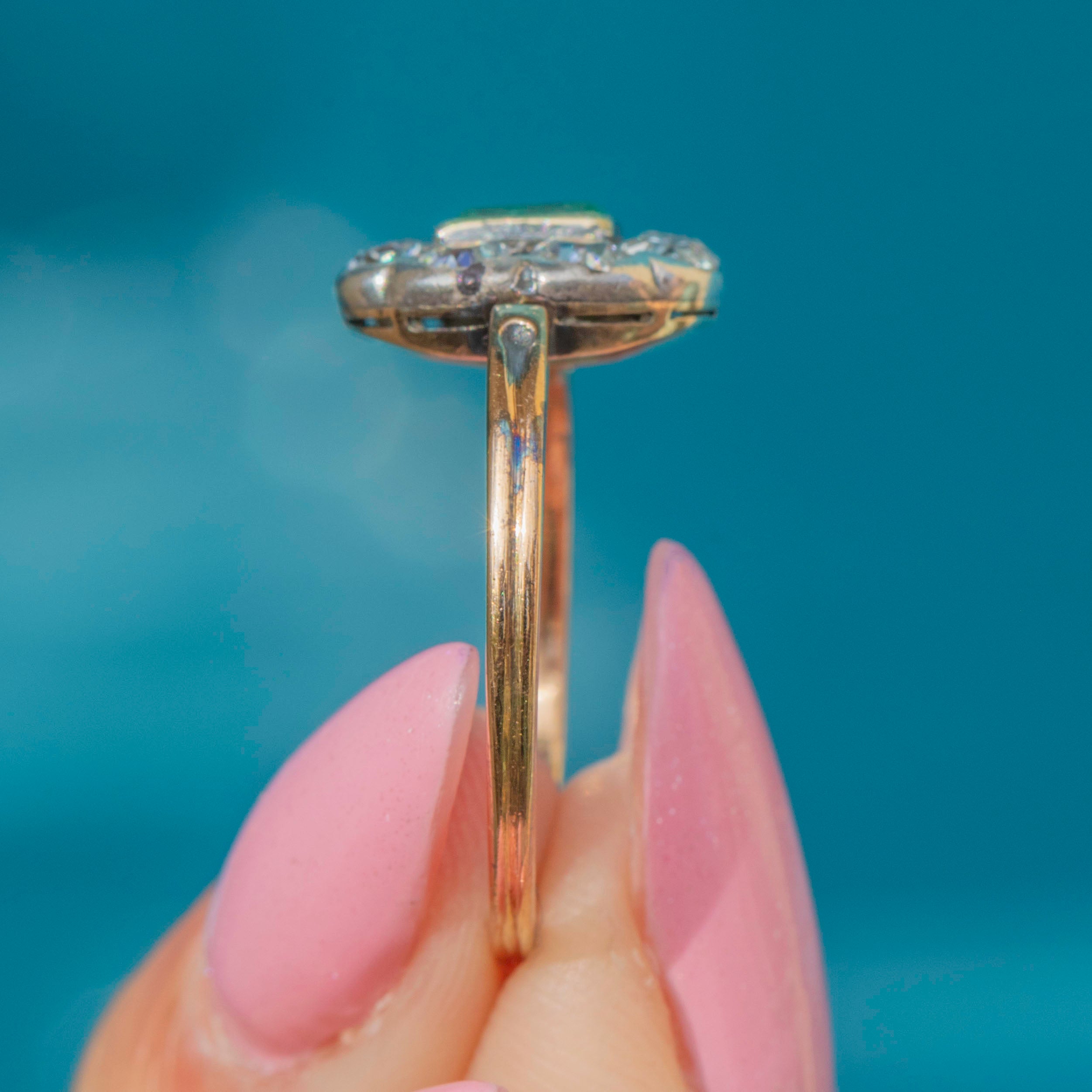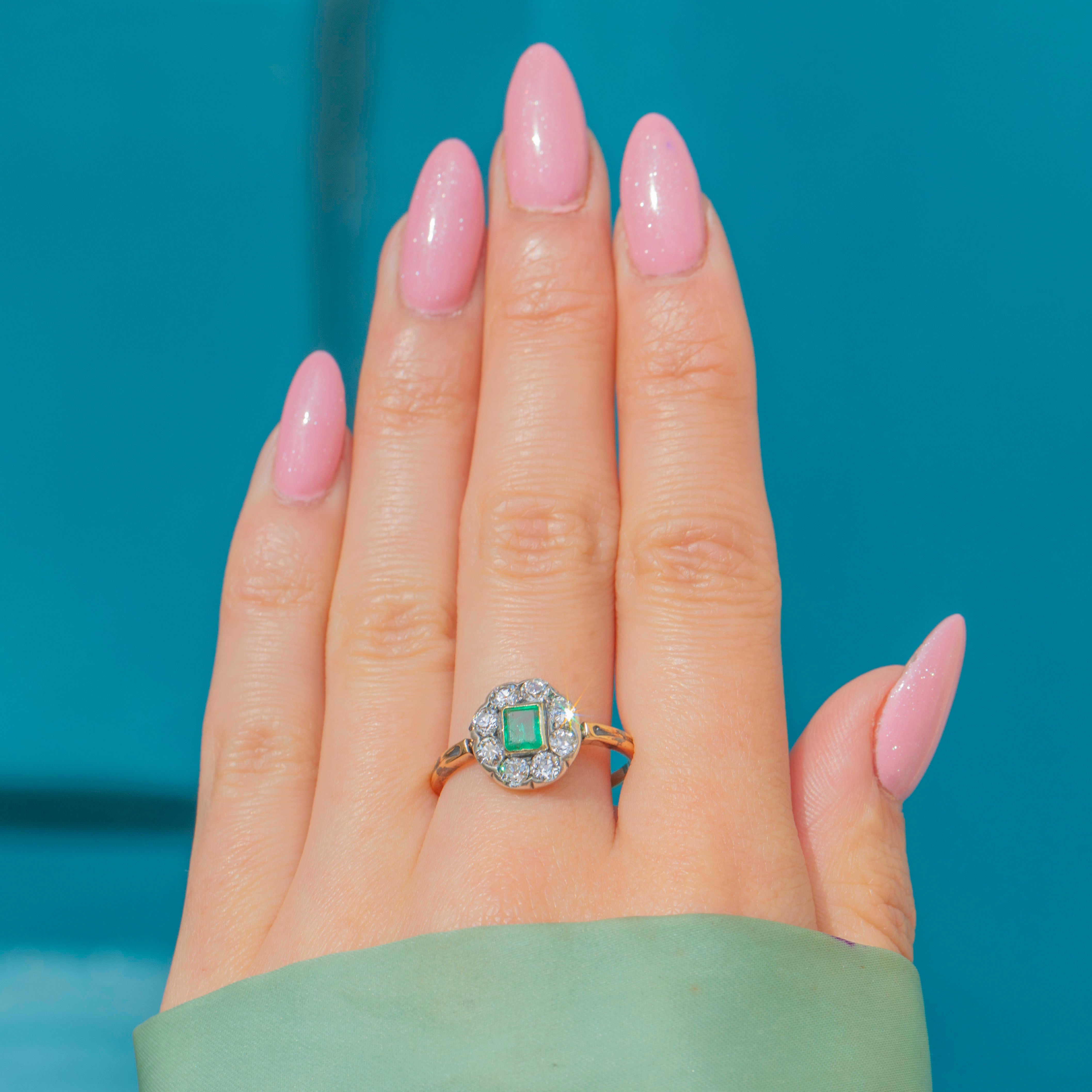 Antique 15ct Gold Emerald Diamond Cluster Ring, 0.65ct Emerald
