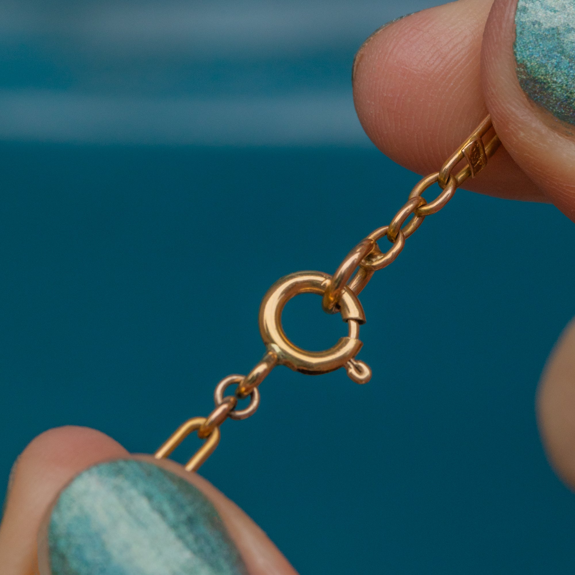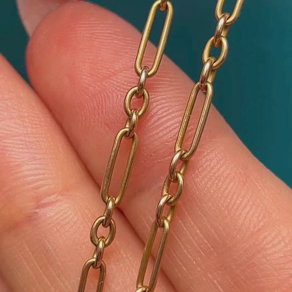 Let's take a moment to appreciate the sheer beauty of this antique 15ct Gold mini trombone link chain! Richly saturated 15ct Gold forms her slender trombone links, intertwined with three shimmering Pearls for an elegant finish.