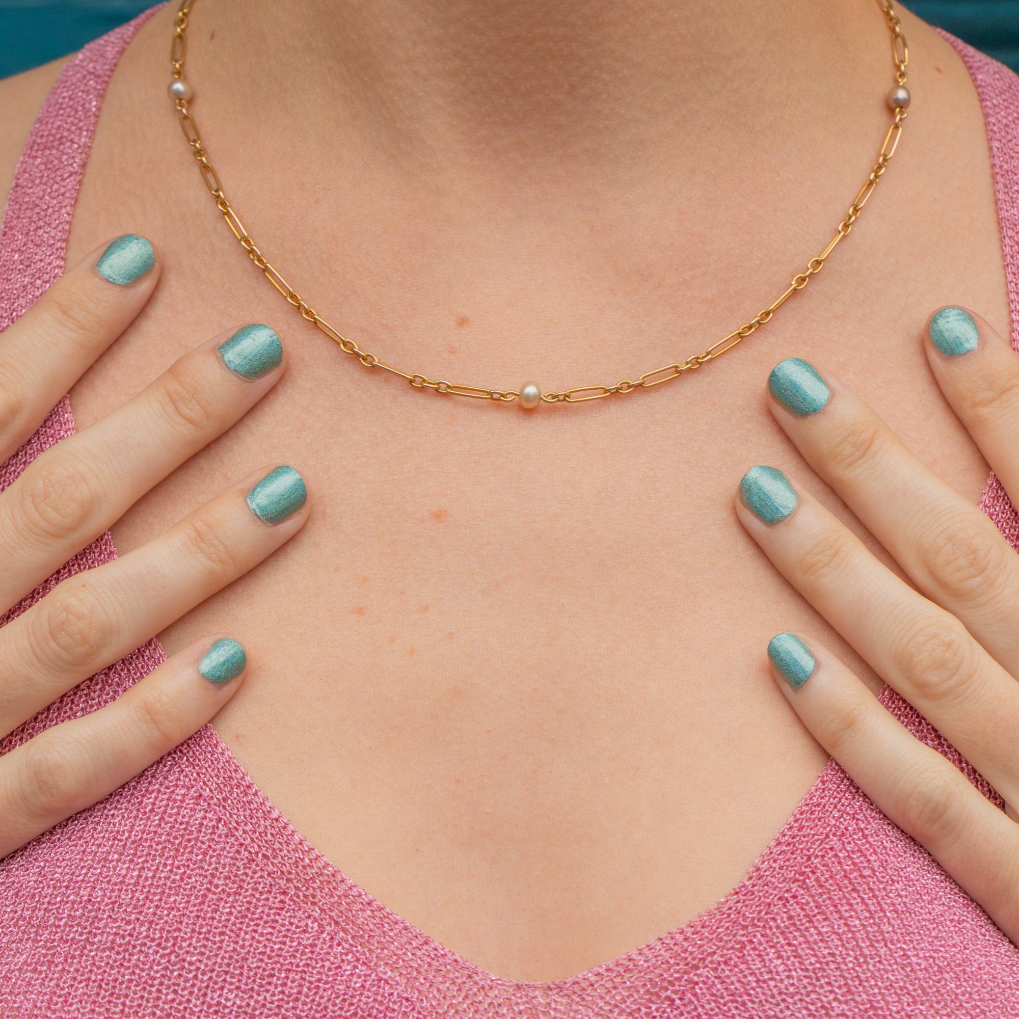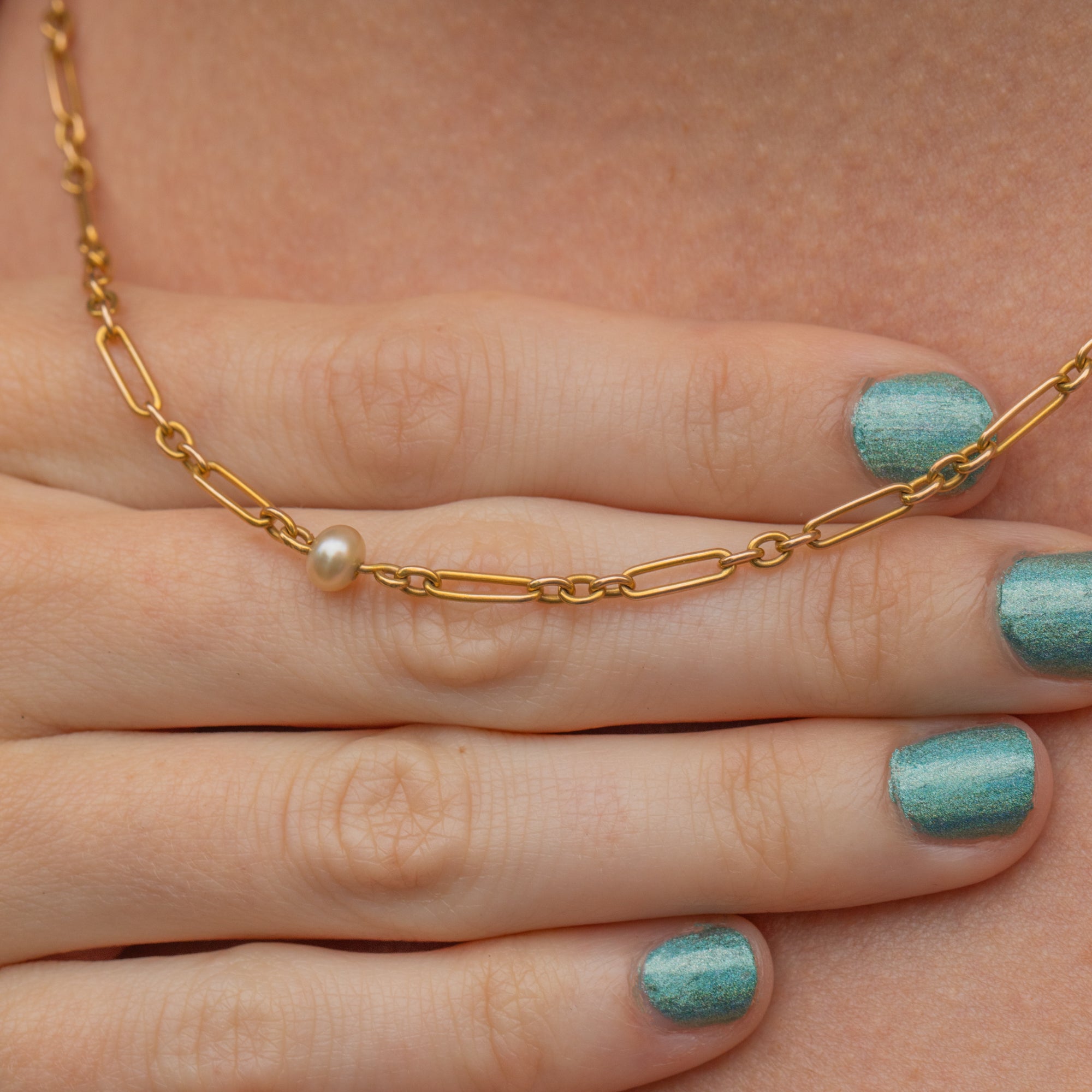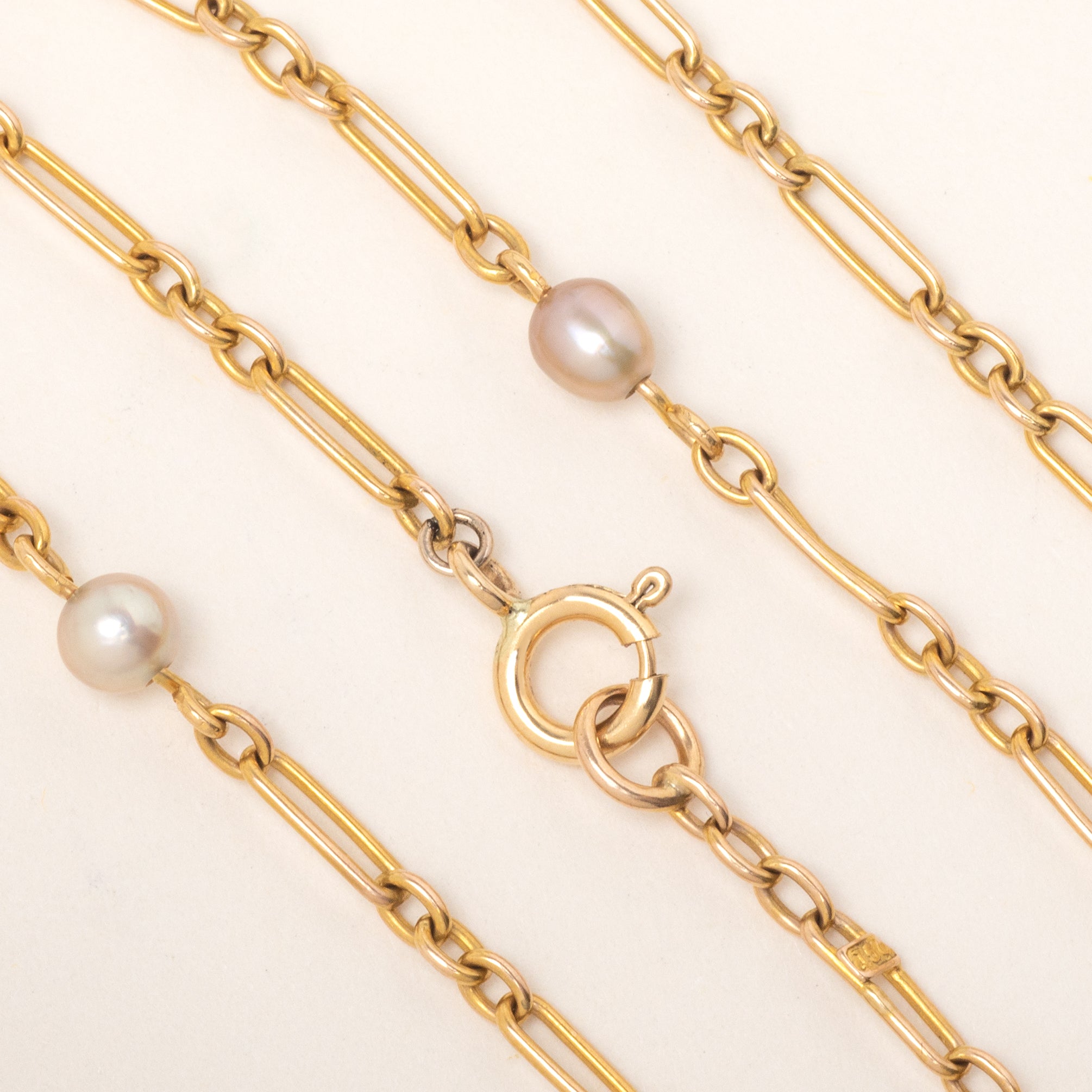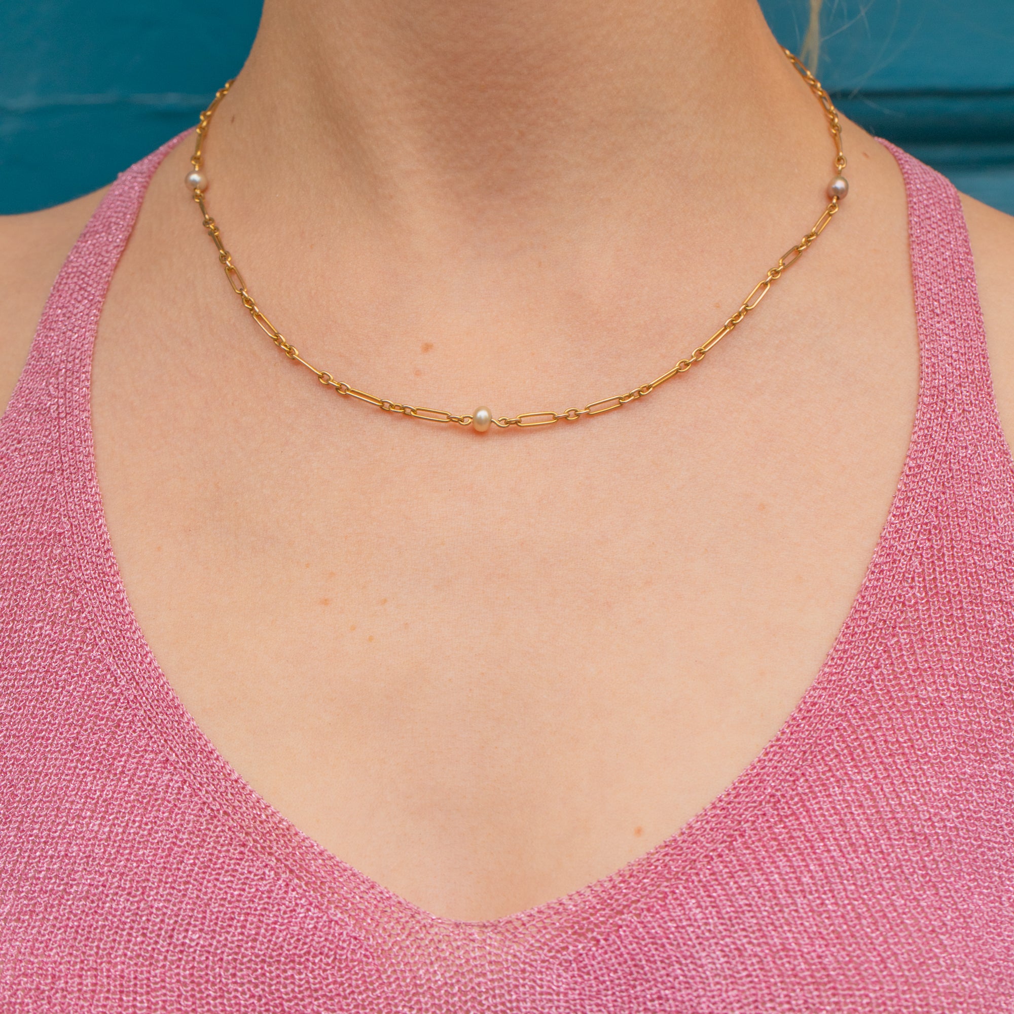 Antique 15ct Gold Mini Trombone Link Chain with Pearls, 17"