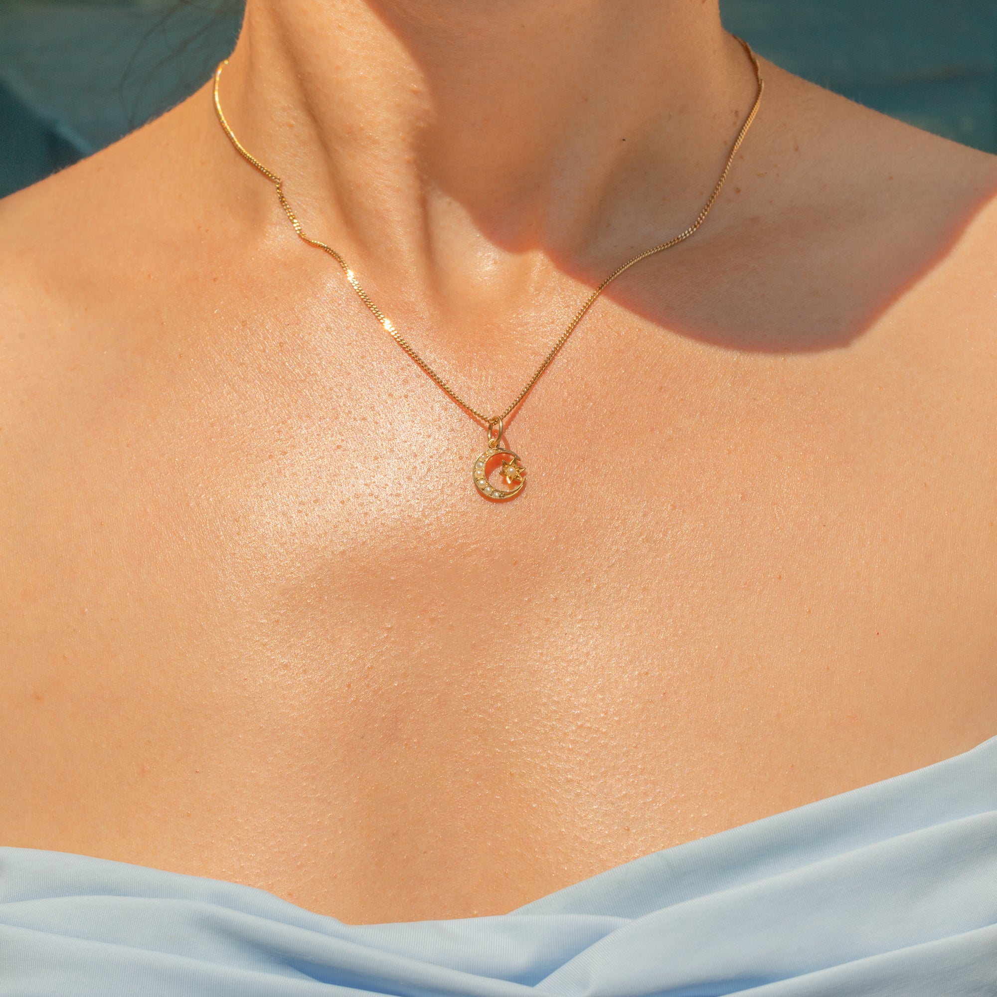 Antique 15ct Gold Pearl Crescent Moon & Star Charm