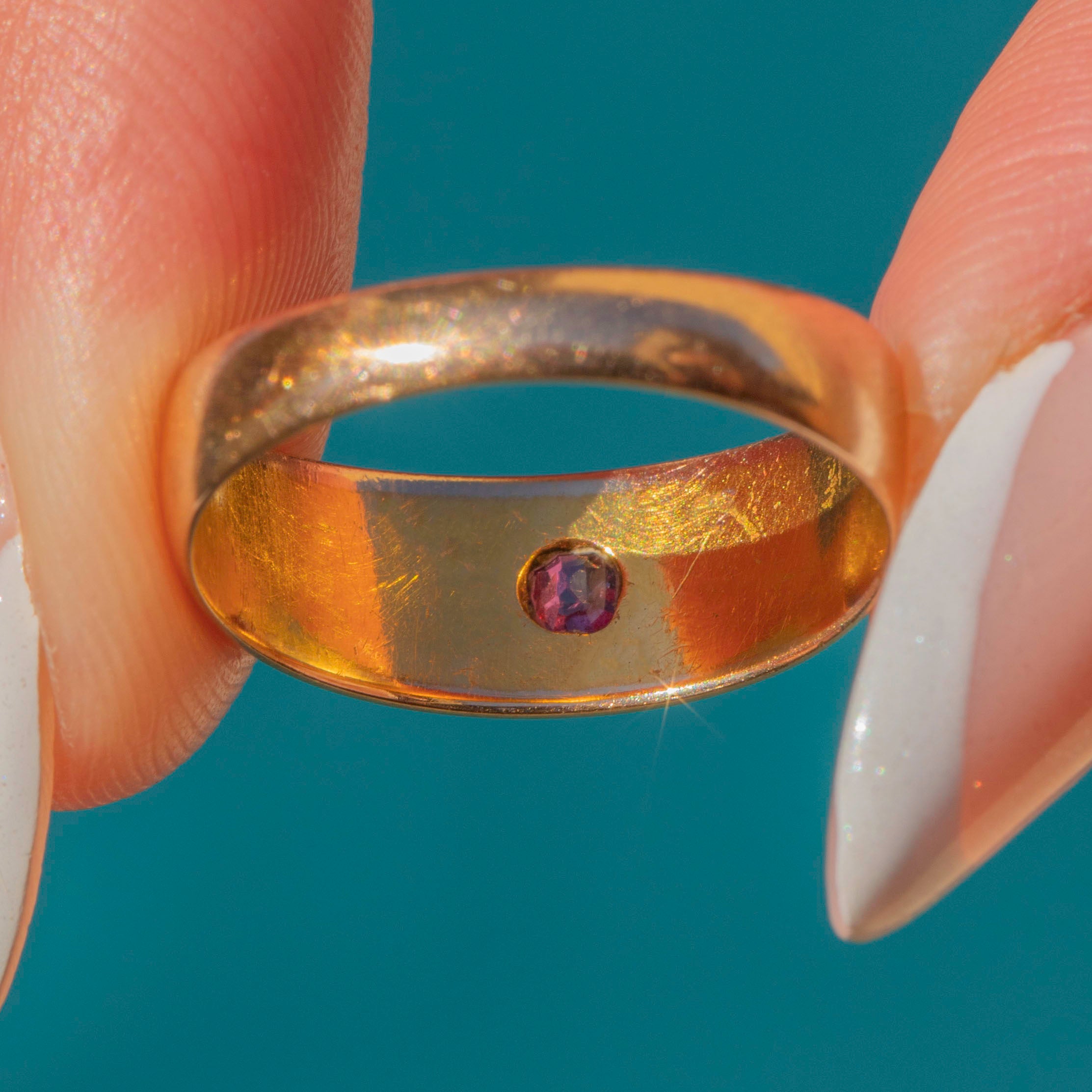 This antique 15ct Gold Ruby gypsy ring is a delight!
