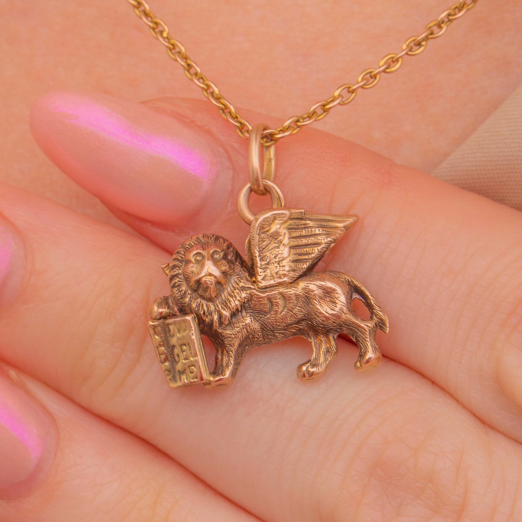 EXCELLENT: This antique 15ct Gold winged lion of Venice charm is in excellent condition. She is intricately detailed, with little signs of wear considering her age. With a securely soldered jump ring, she is in excellent condition!