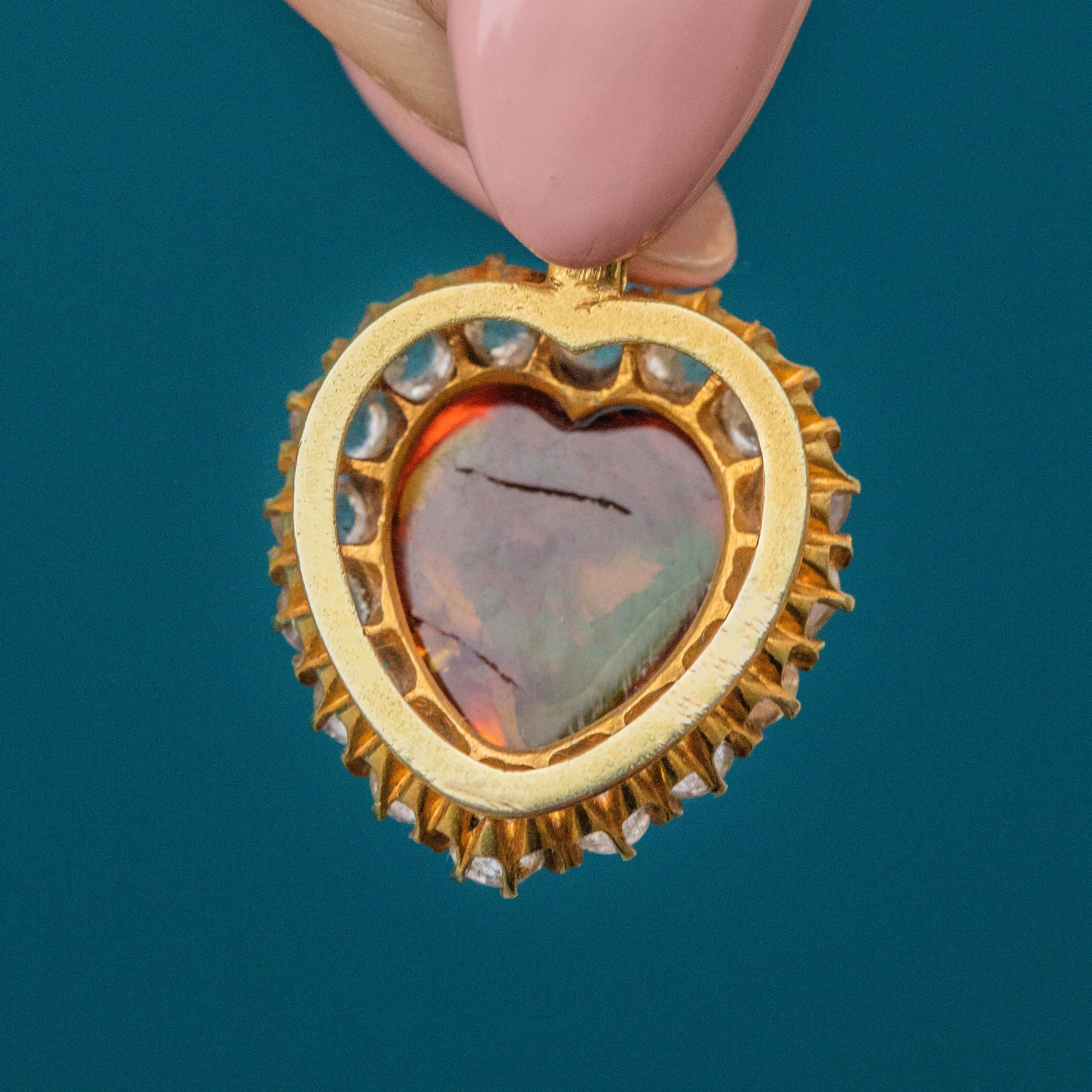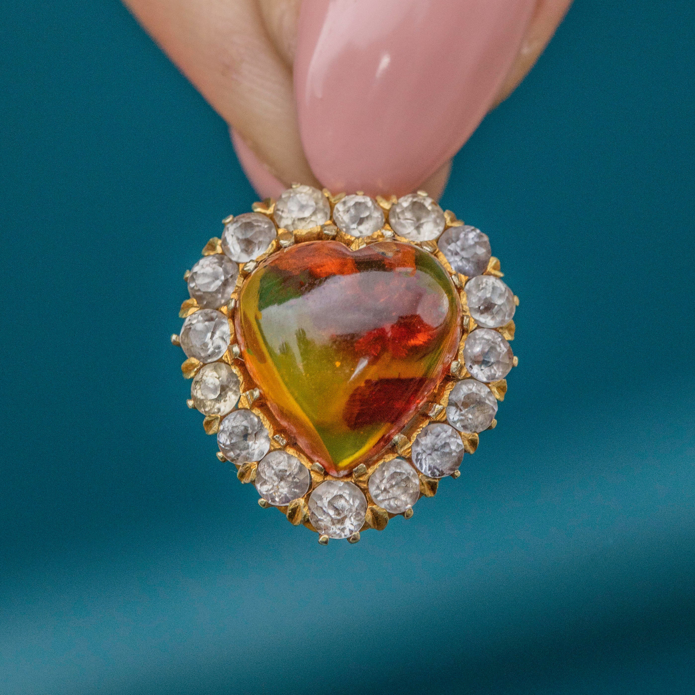 Antique 18ct Gold Amber & White Sapphire Heart Pendant
