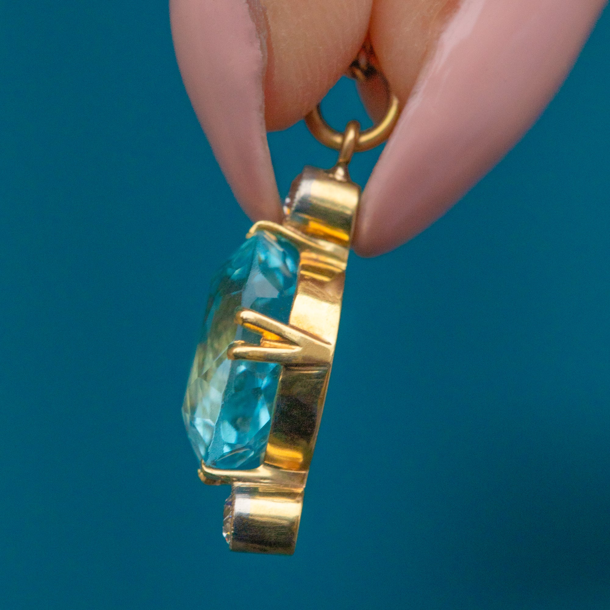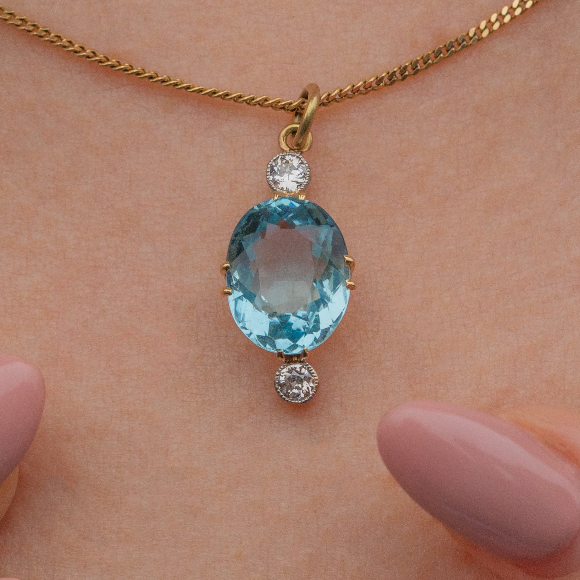 Antique 18ct Gold Aquamarine Diamond Pendant, 5.10ct