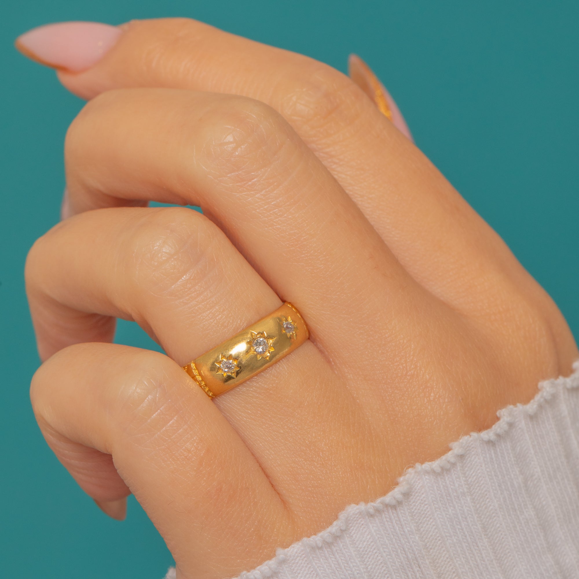 Antique 18ct Gold Diamond Star-Set Stacking Ring