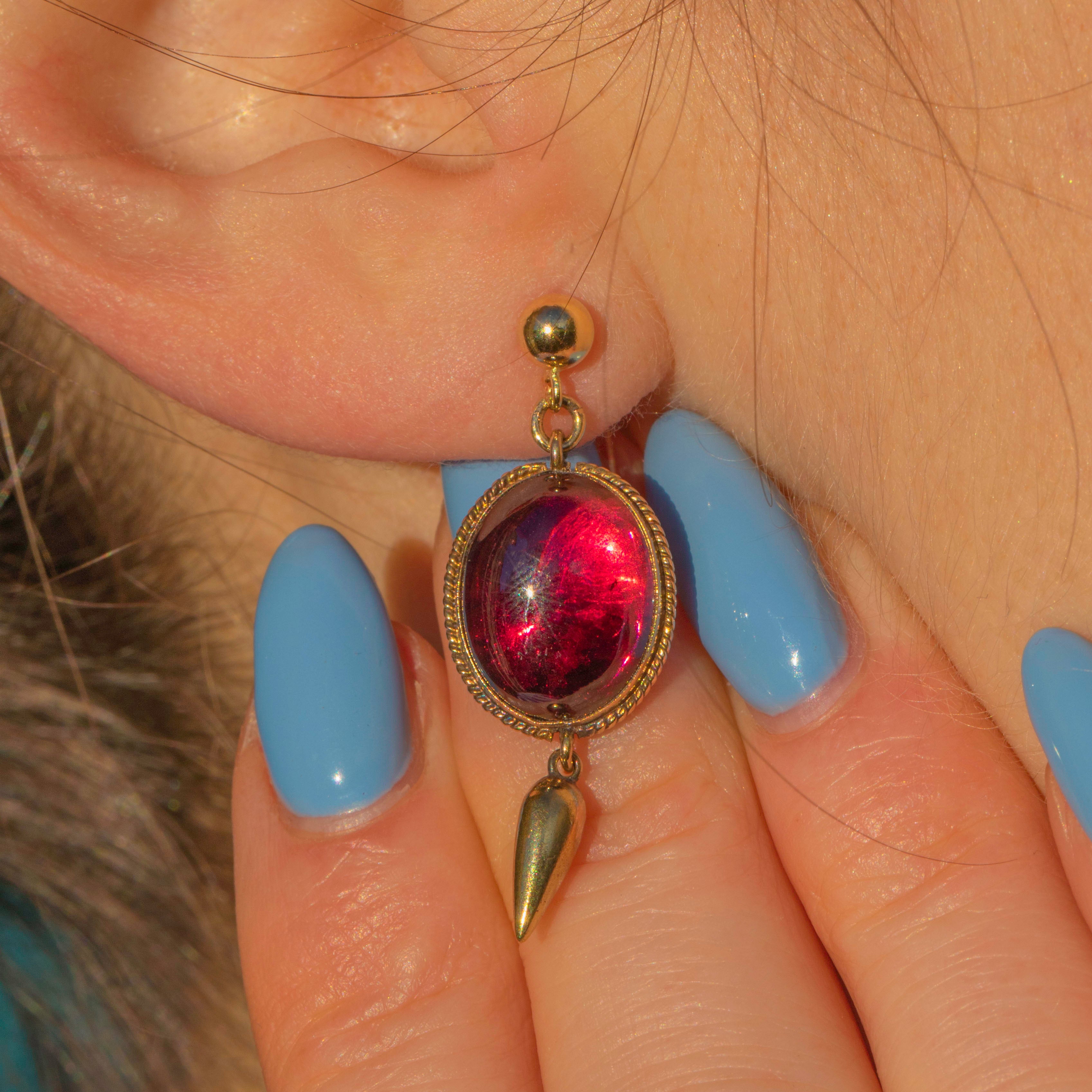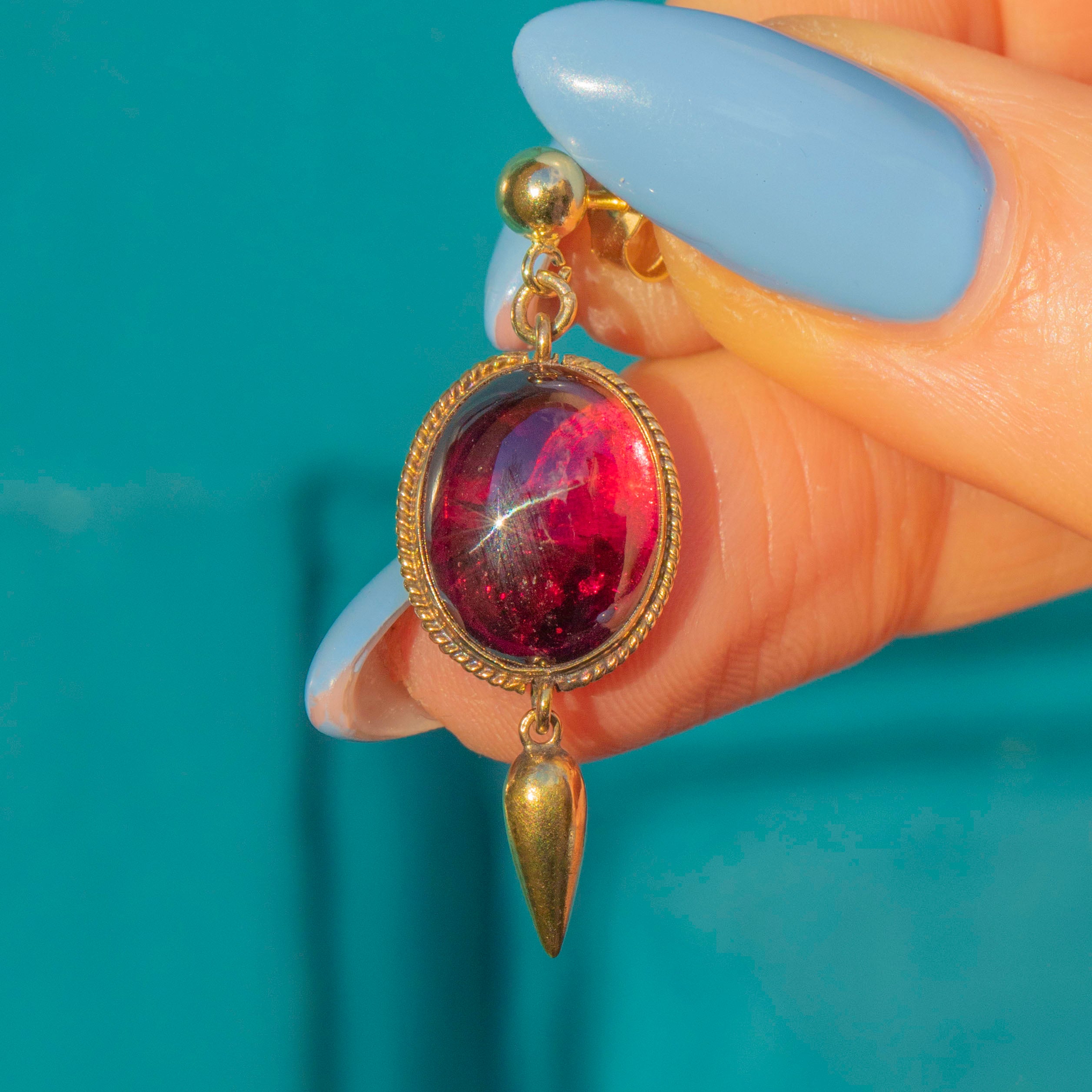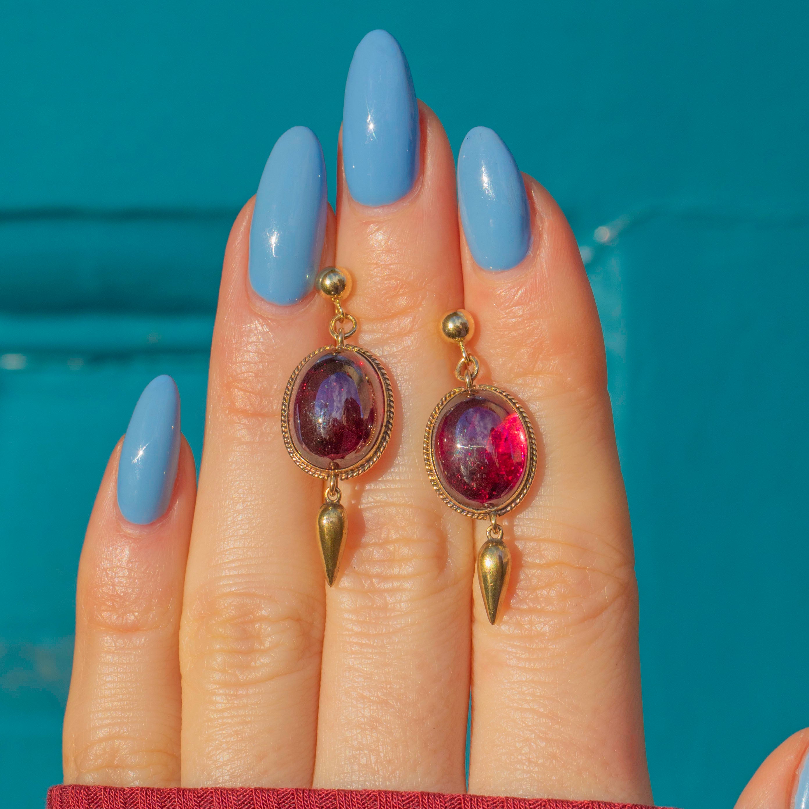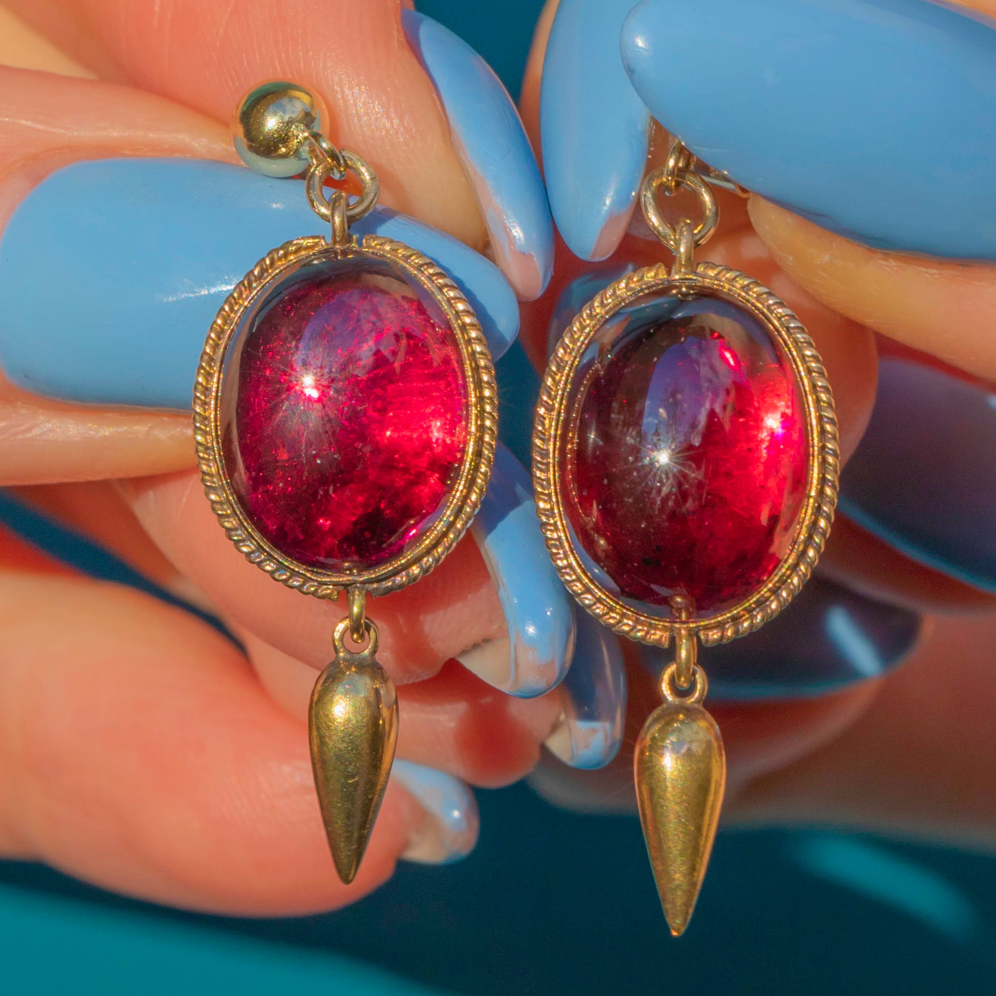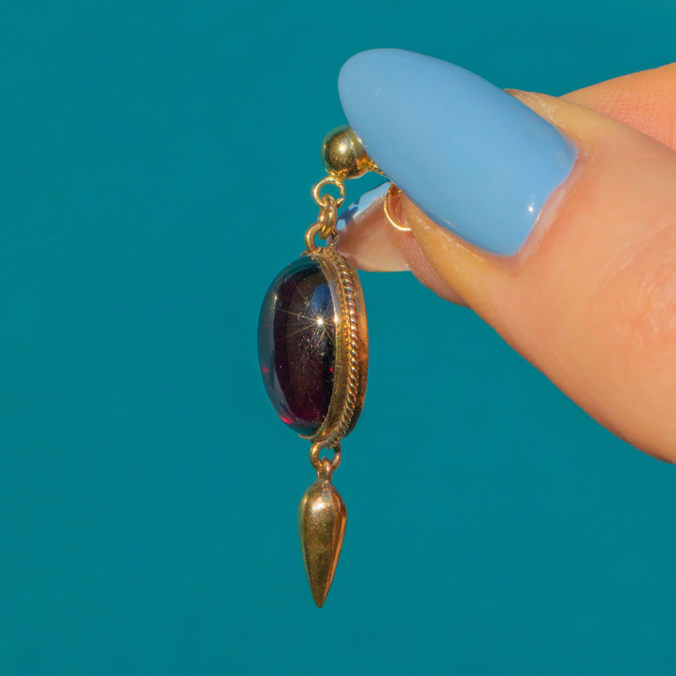 These antique 18ct Gold Garnet cabochon drop earrings are a stunning embodiment of Victorian elegance! The Garnet cabochons display deep, velvety hues that are utterly captivating and emit warm glimmers that dazzle effortlessly.