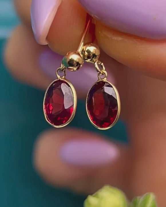 Indulge in the enchanting allure of these antique 18ct Gold Garnet earrings! Flawlessly preserved, these Victorian Garnet earrings are ready to add luxurious juicy cherry hues to your lobes.