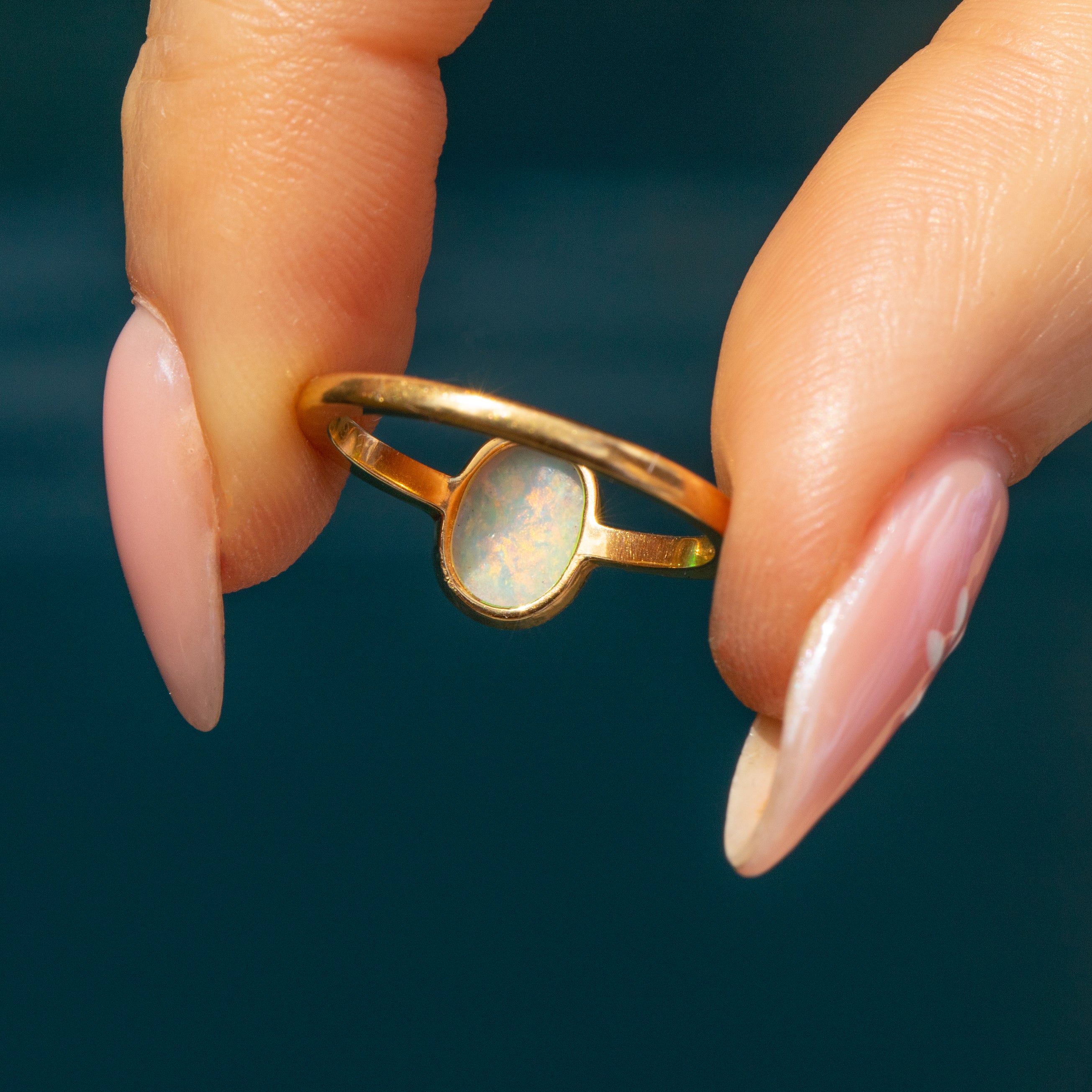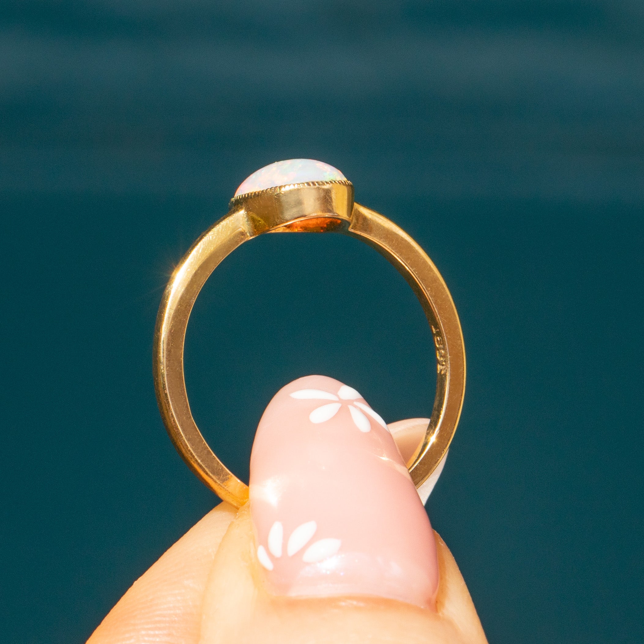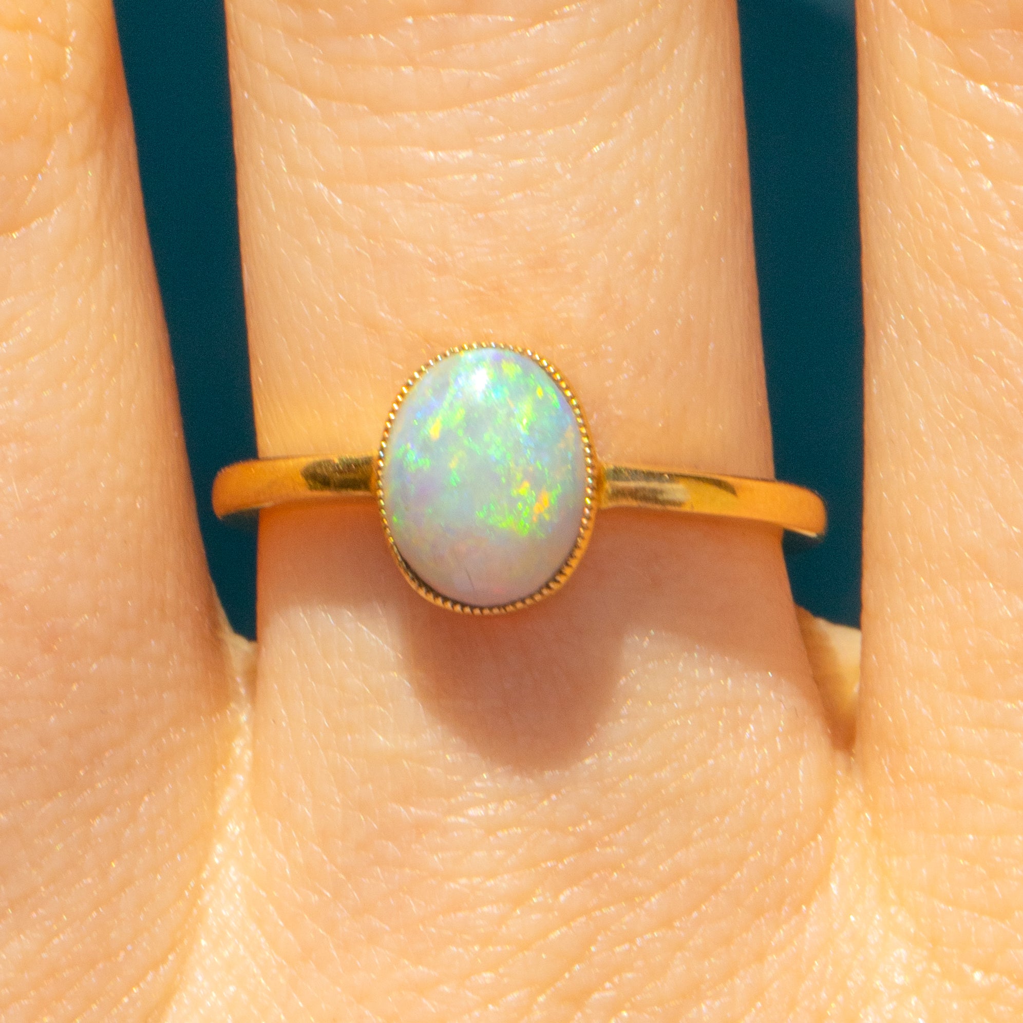 The 0.70ct Opal rests within a petite bezel setting, giving the piece a sleek and sophisticated finish. This pretty piece will go a long way in adding intrigue and beauty to your antique jewellery collection!