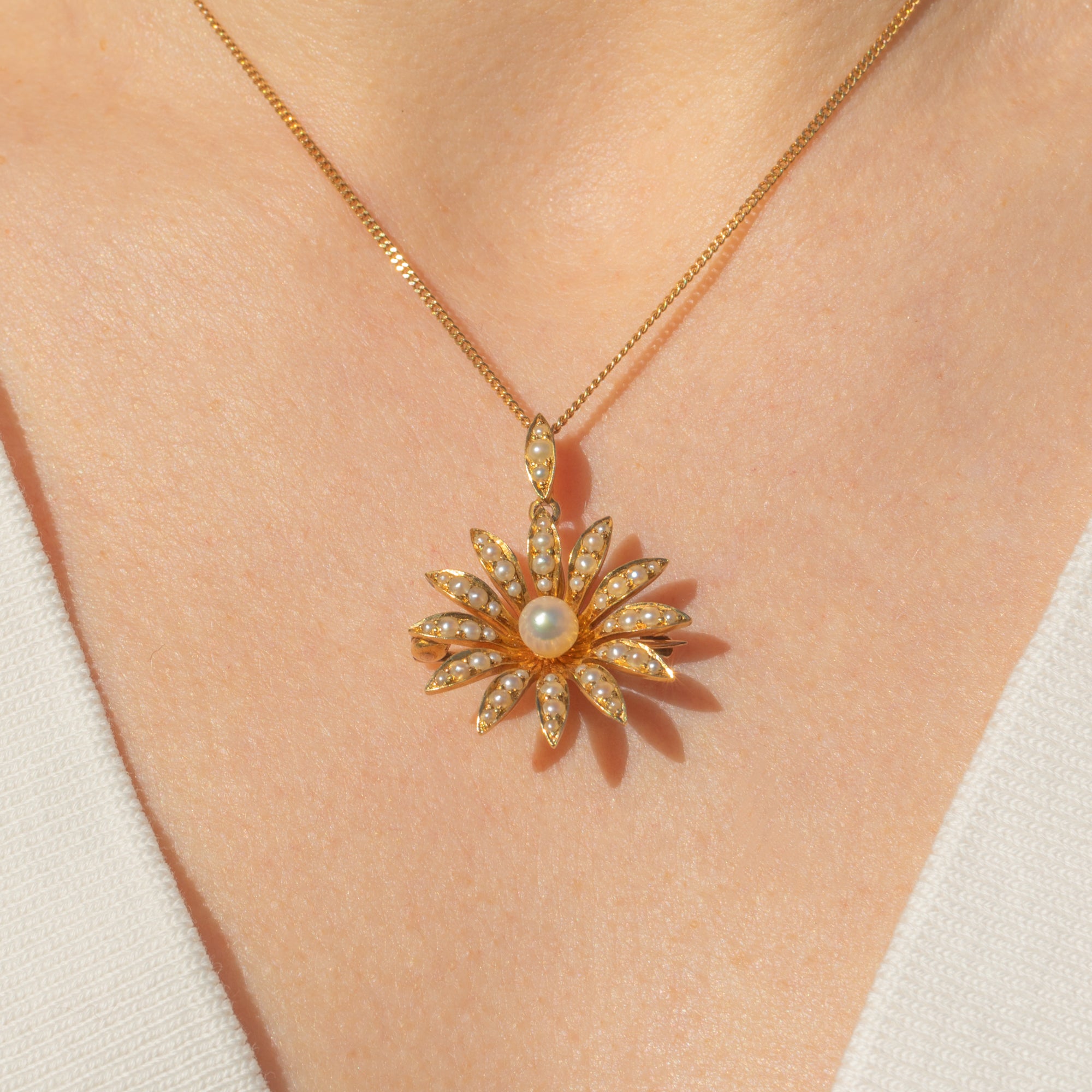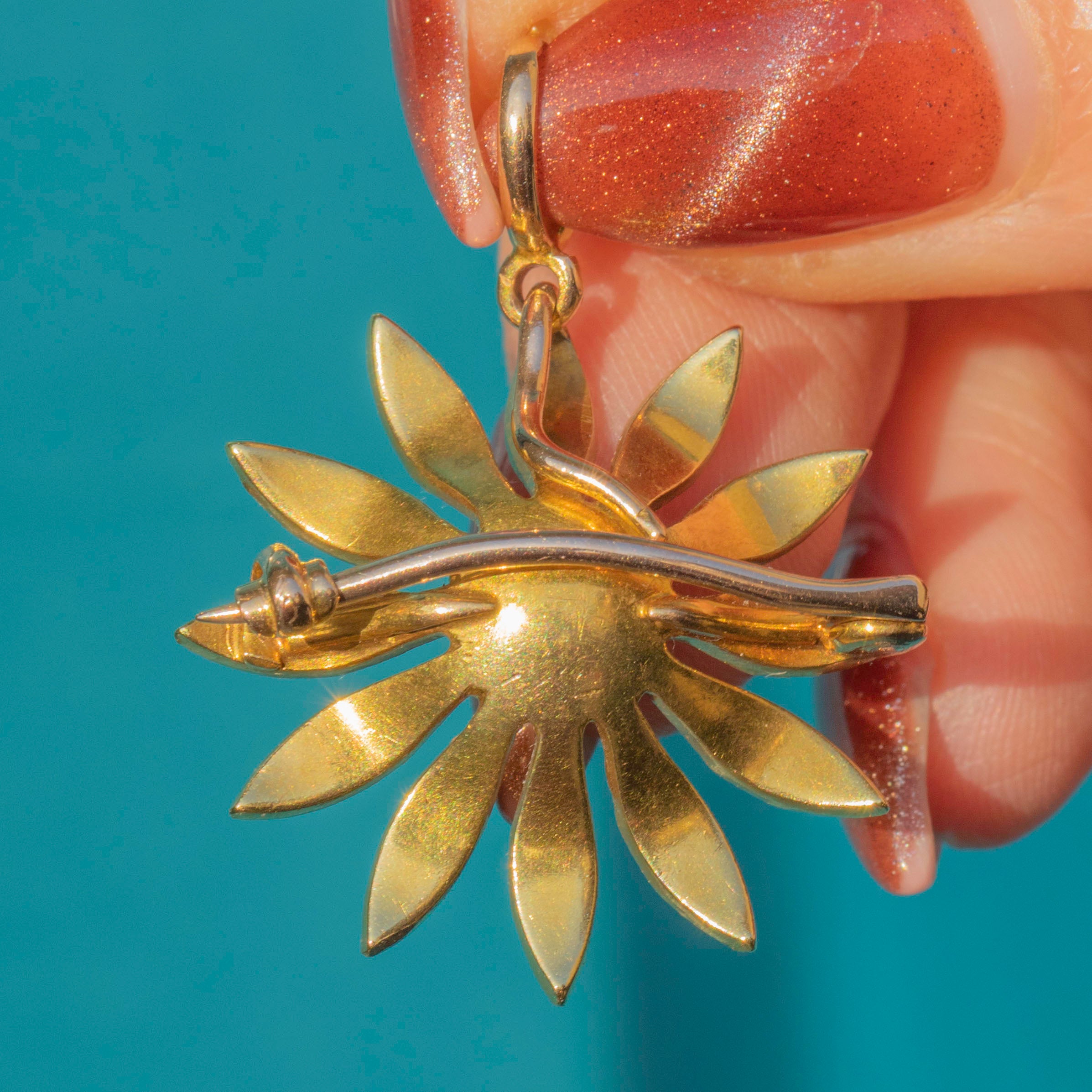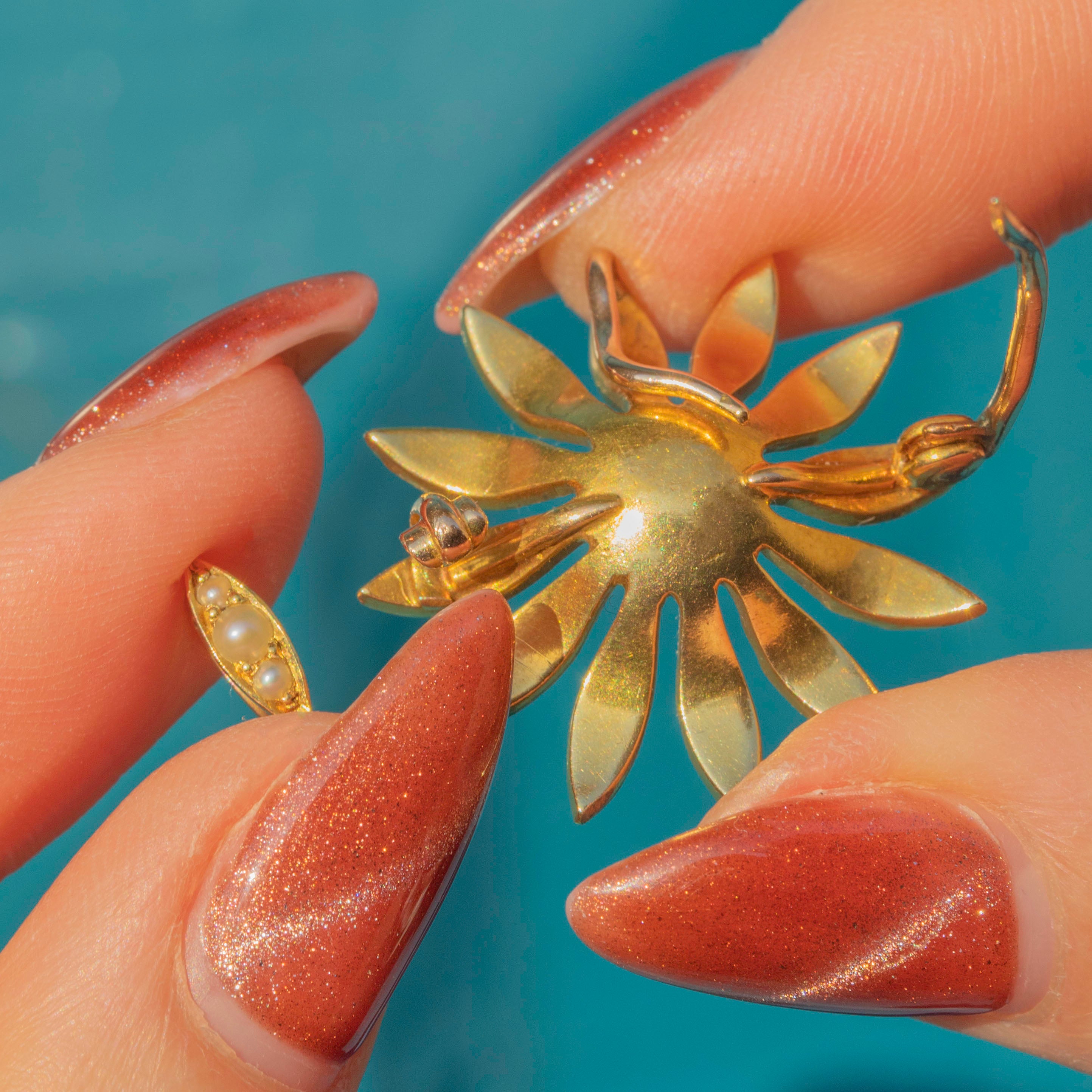 Antike 18ct Gold Perlen Gänseblümchen Blüten Anhänger, Broschenbefestigungen