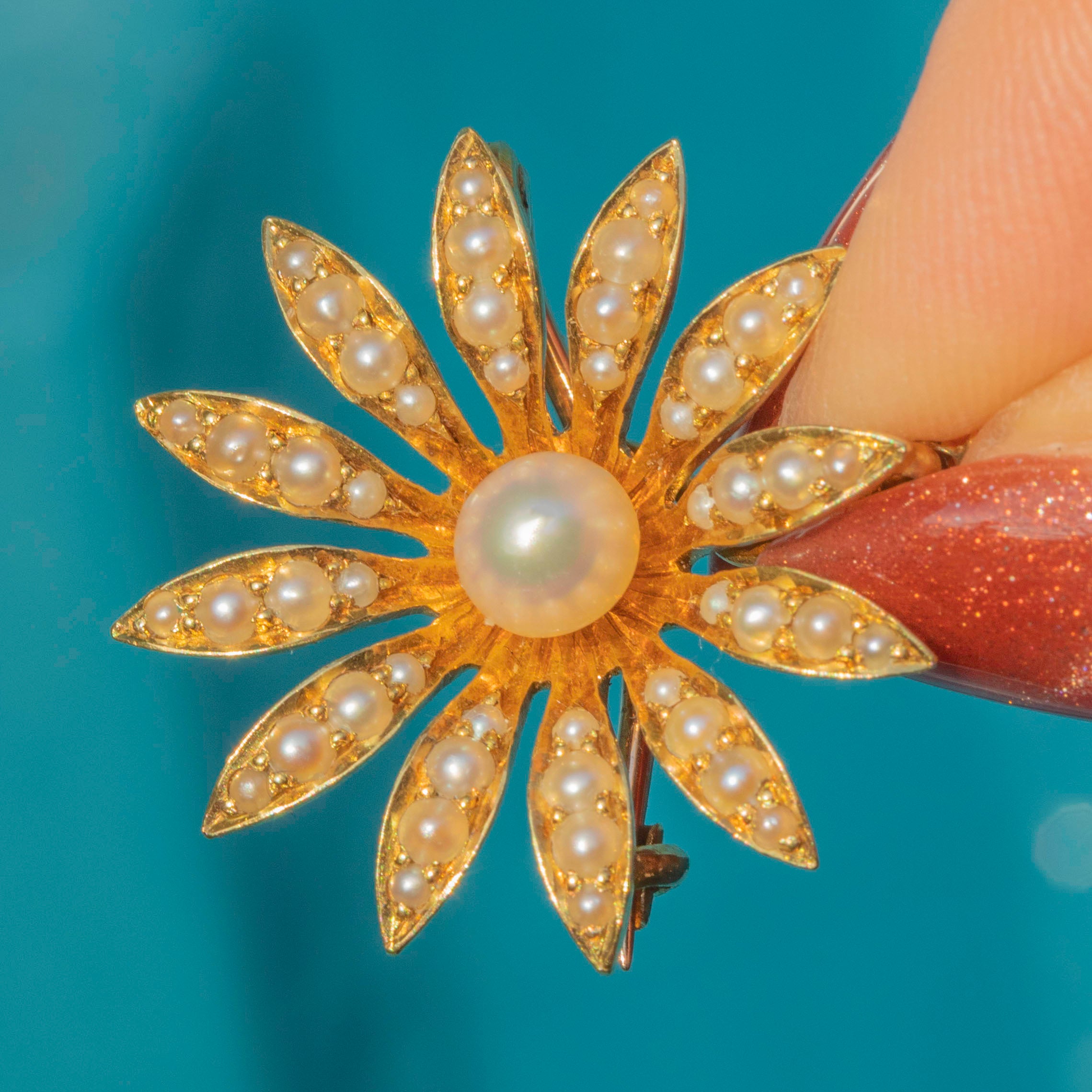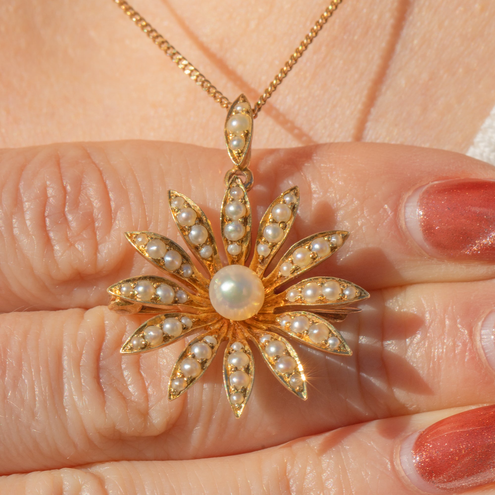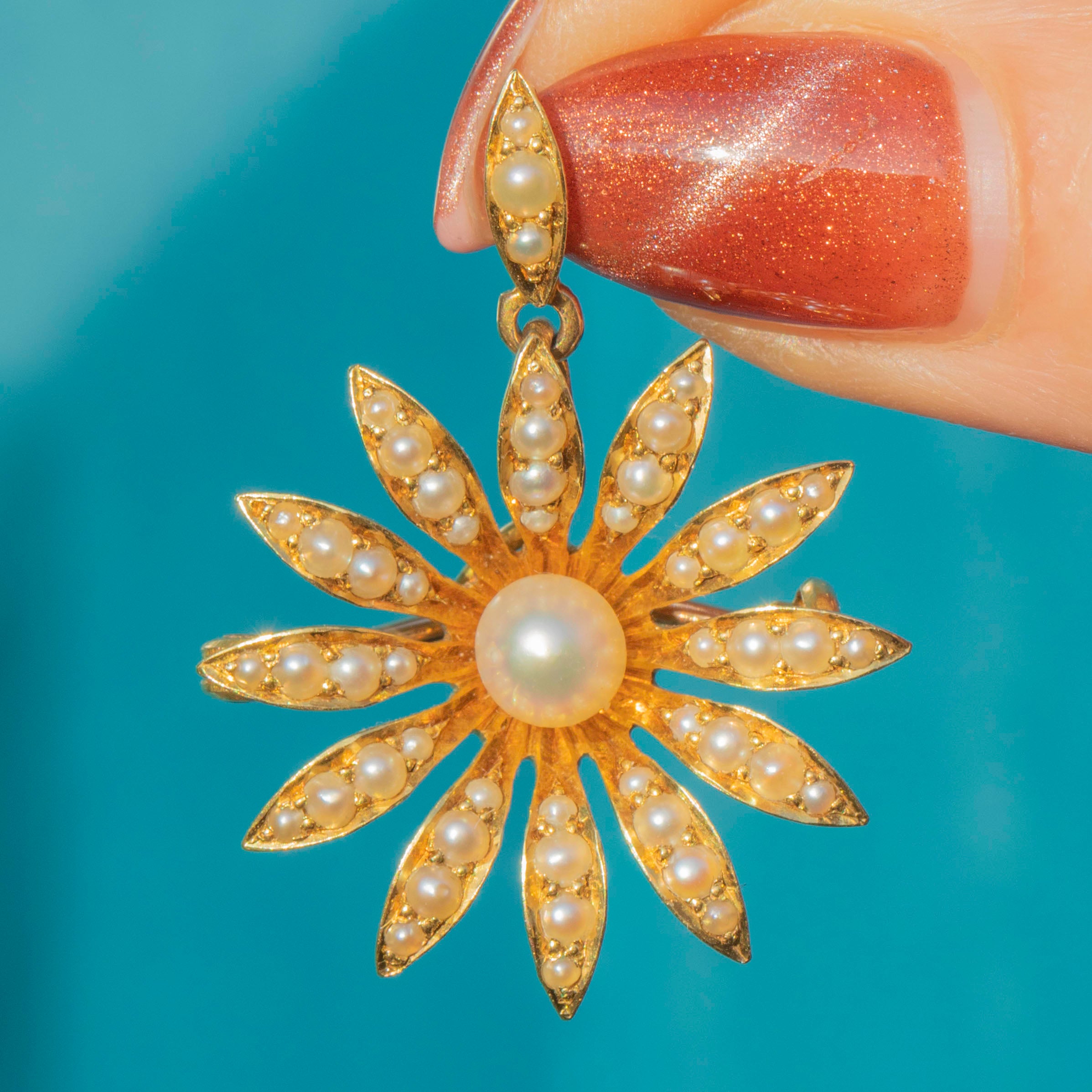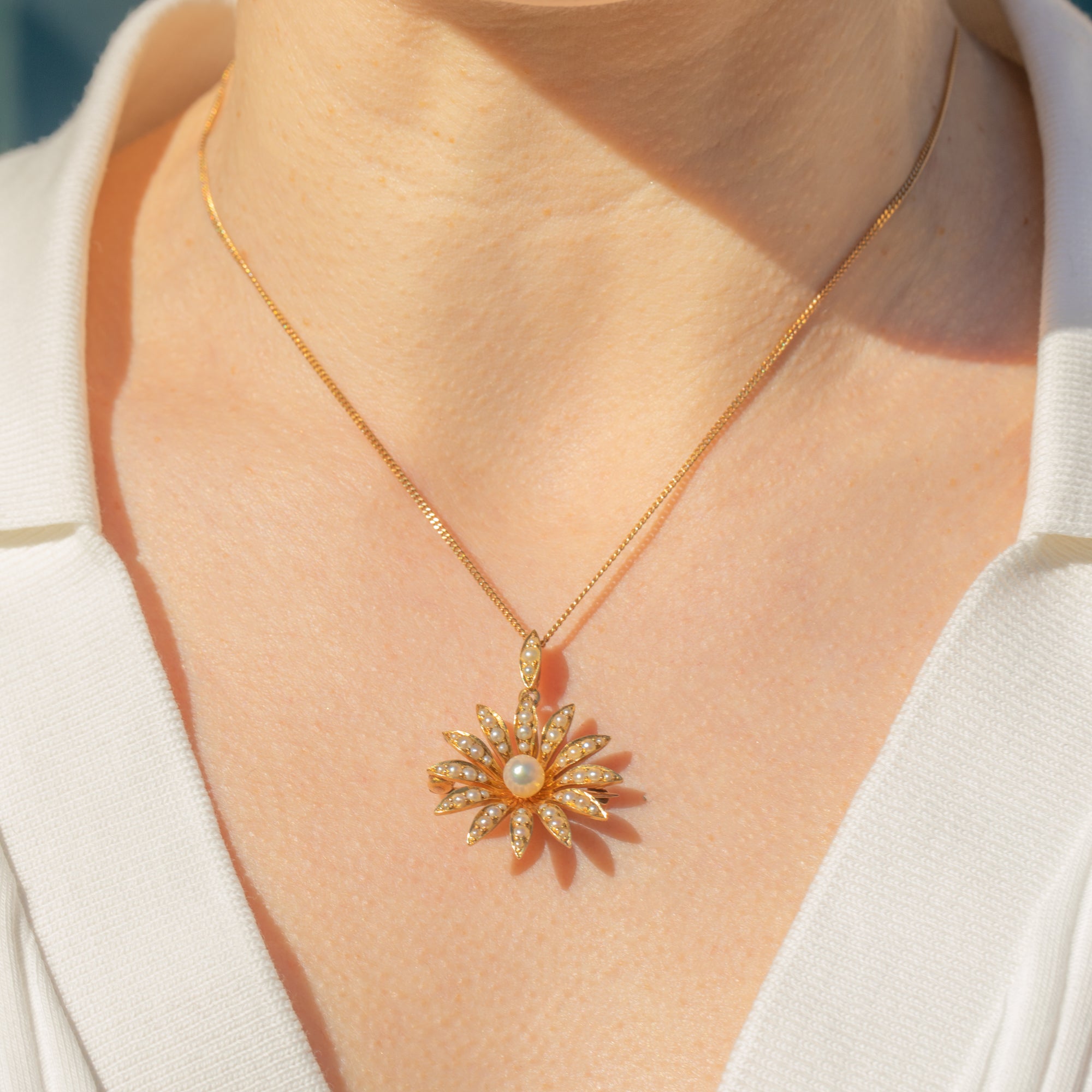 Antike 18ct Gold Perlen Gänseblümchen Blüten Anhänger, Broschenbefestigungen