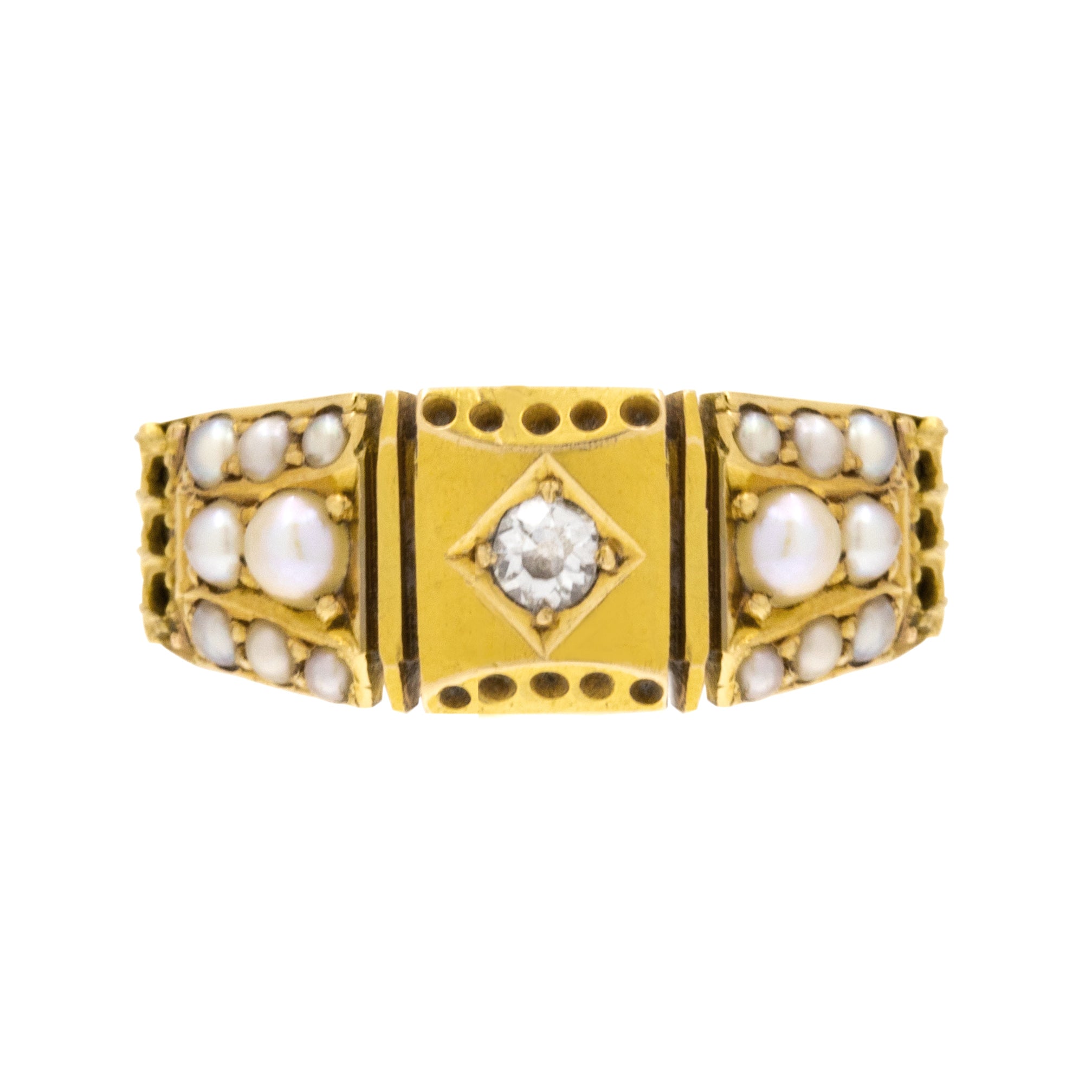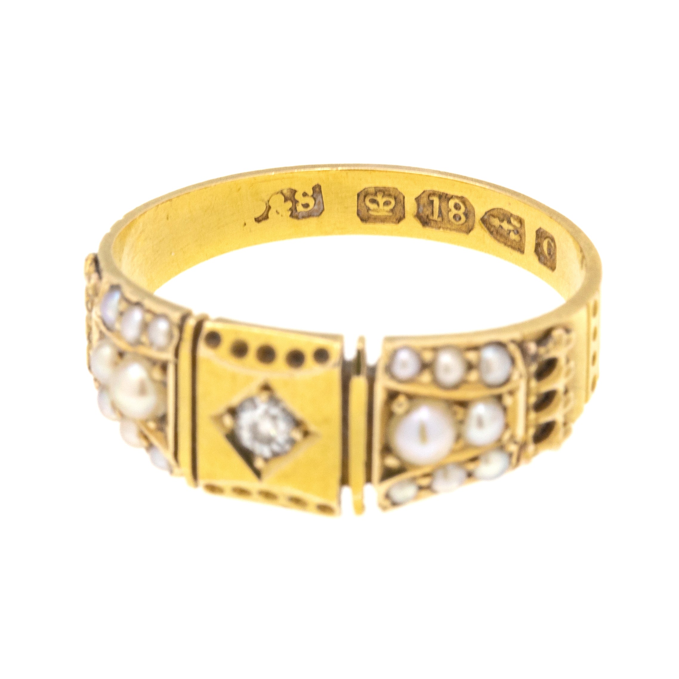 Antique 18ct Gold Pearl Diamond Ring, c.1886