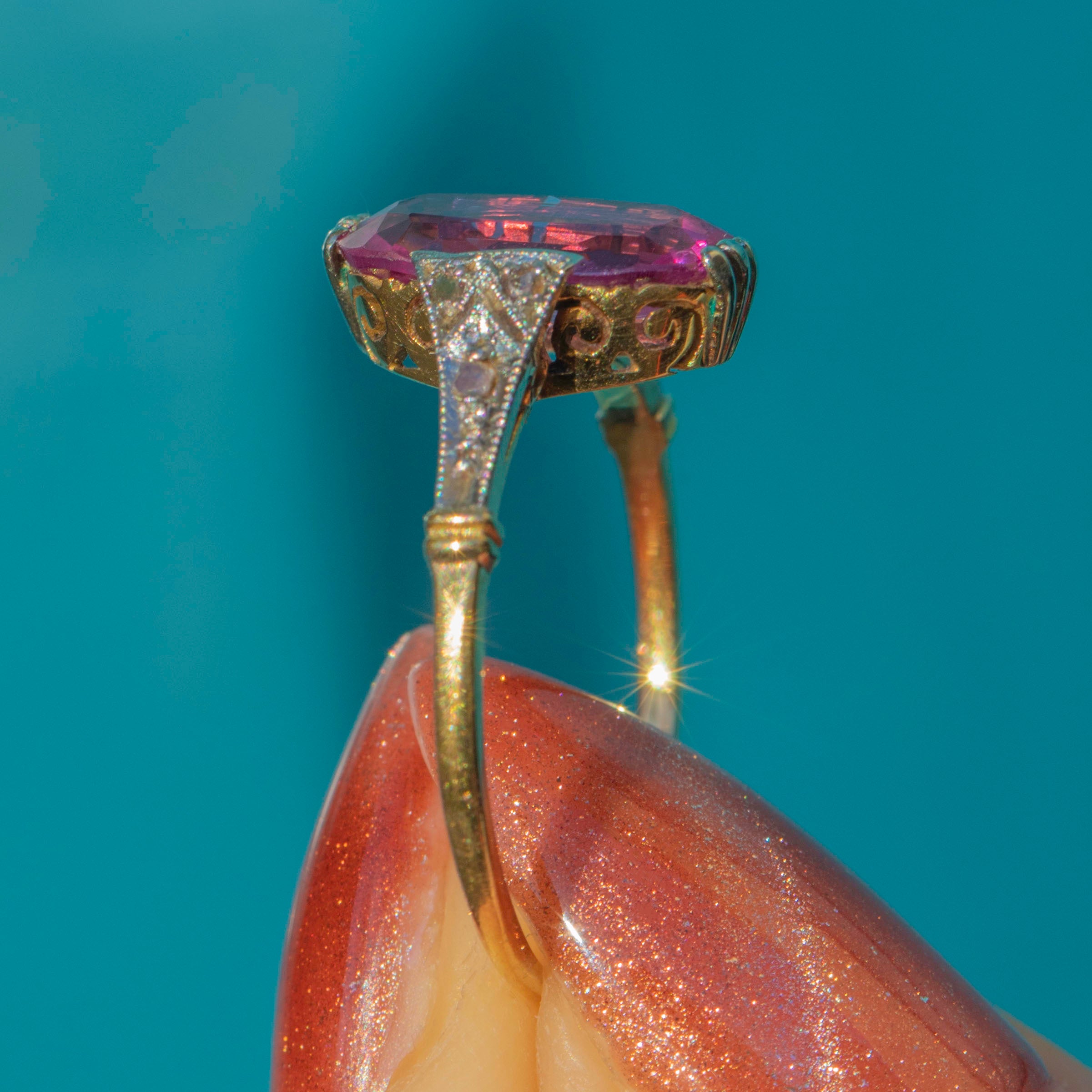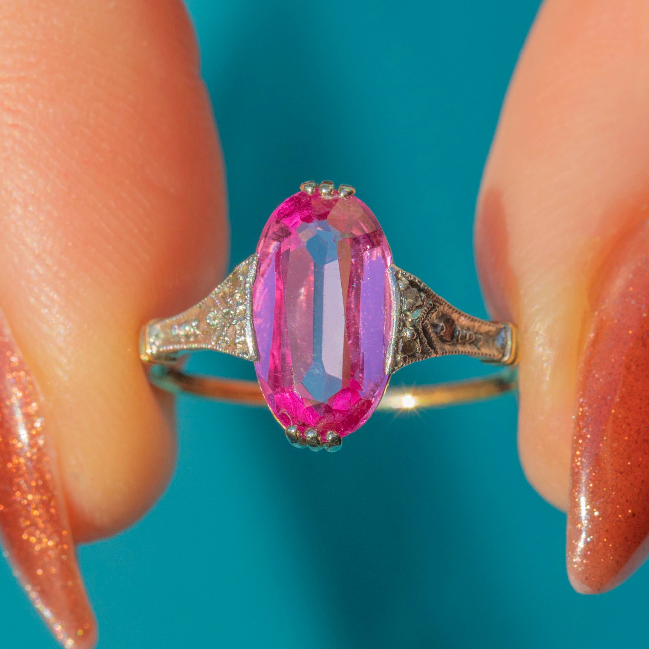 Antique 18ct Gold Pink Sapphire Ring 1.45ct, Diamond Shoulders