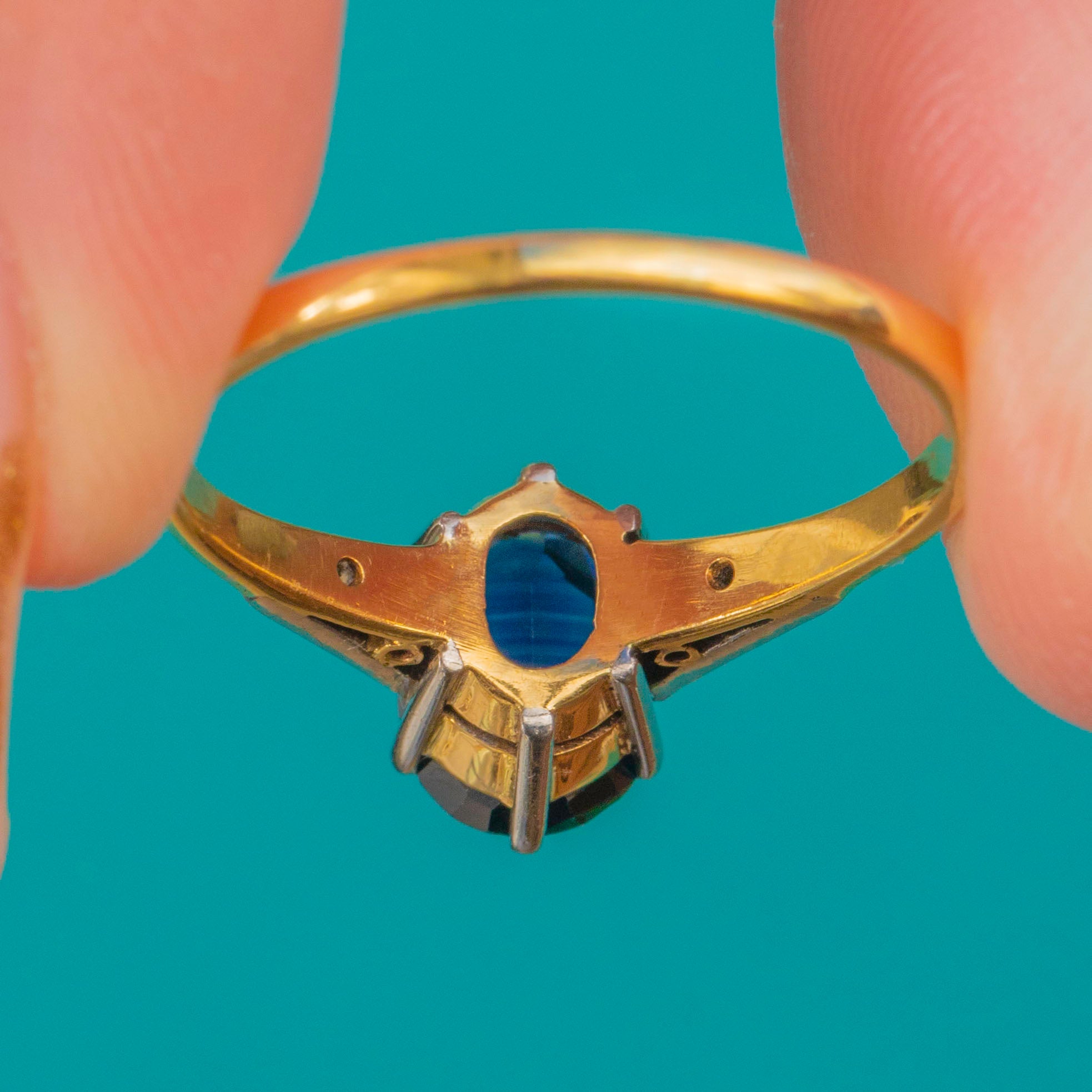 Antique 18ct Gold Platinum Natural Sapphire Ring, 1.50ct