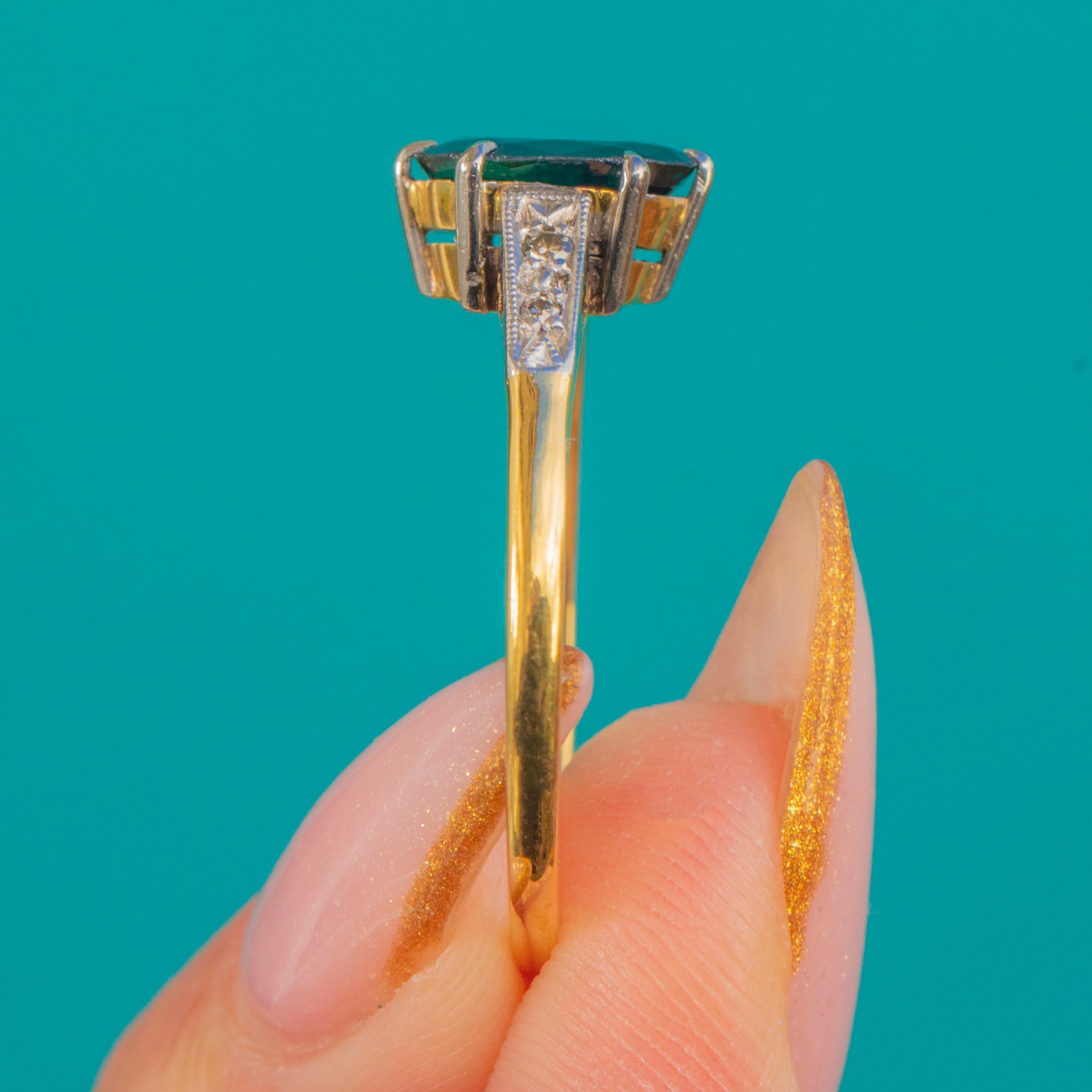 Hand-crafted in 18ct Gold with Platinum, this is a classic Deco design—elegant, architectural, and effortlessly refined. The Sapphire’s depth of colour and clarity make it a true statement gem, while the Diamonds provide crisp, bright contrast. A luxurious and timeless ring with wonderful finger presence.