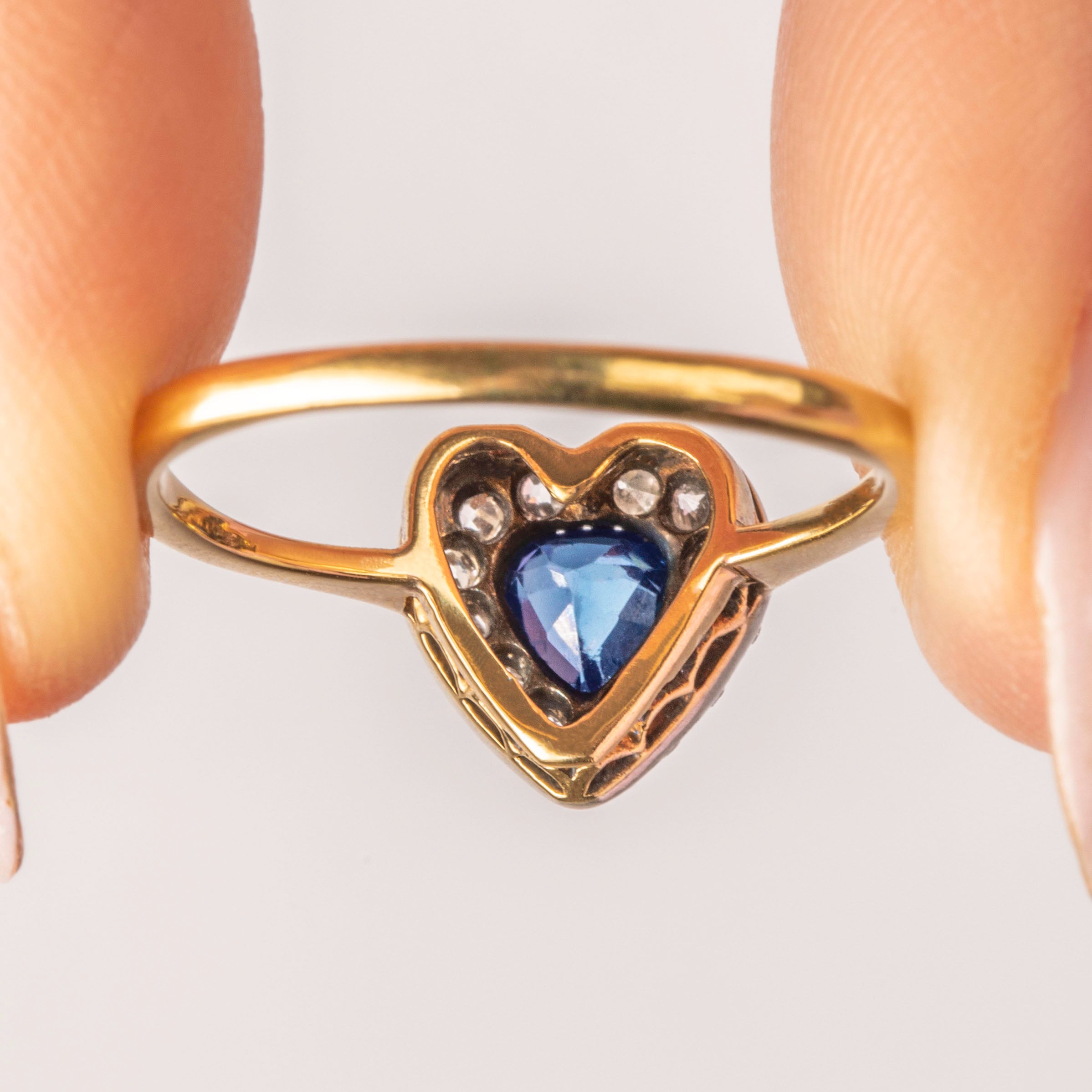 Antique 18ct Gold Sapphire Diamond Heart Ring, 0.30ct Sapphire