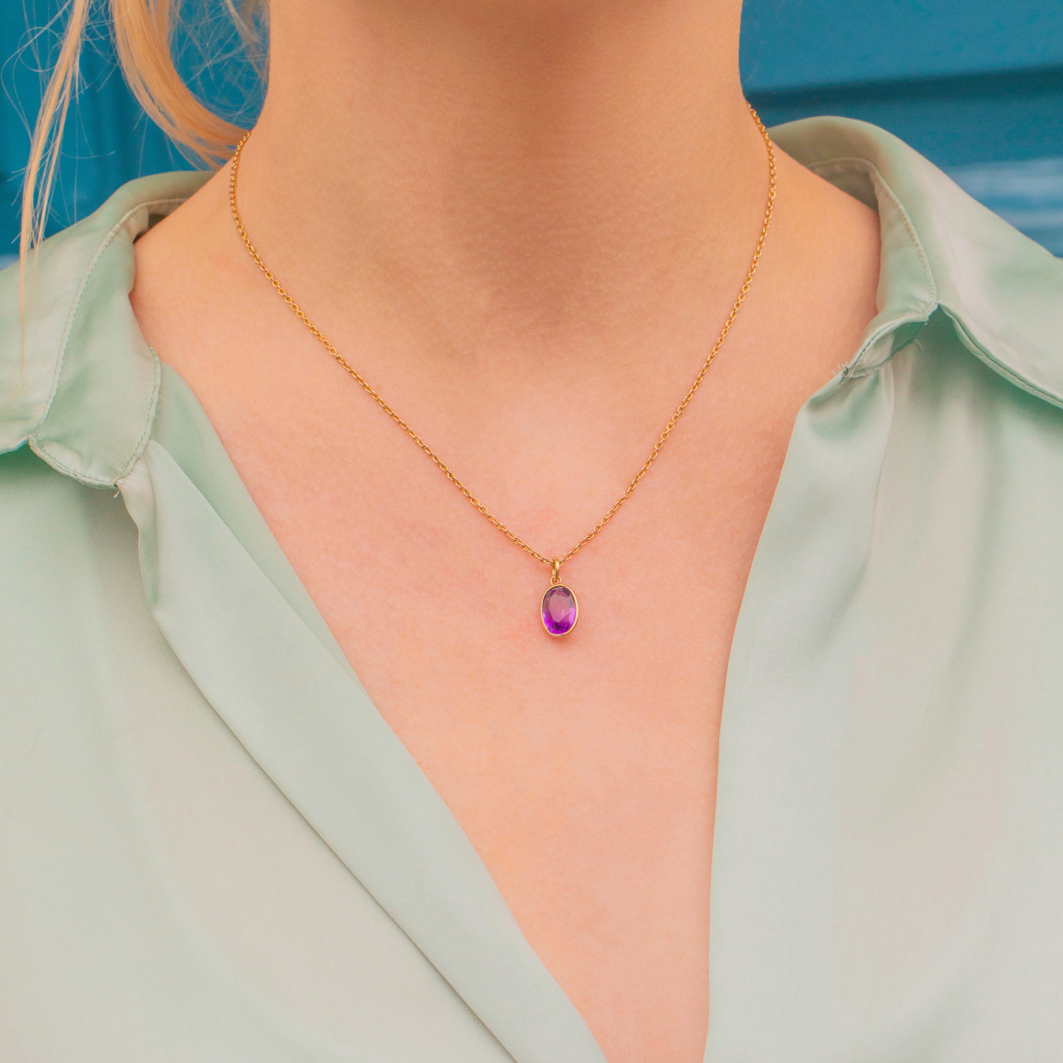 This pretty charm has a lilac-hued beauty at its centre, with hints of lavender pouring out from every facet. She sits securely within her 9ct Gold bezel setting, with the warmth of the buttery Gold effortlessly complimenting the rich hues of the Amethyst.