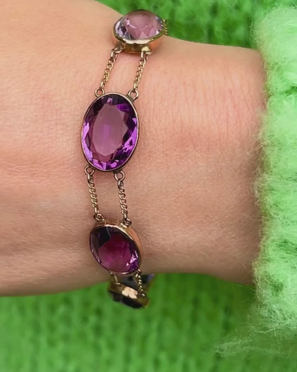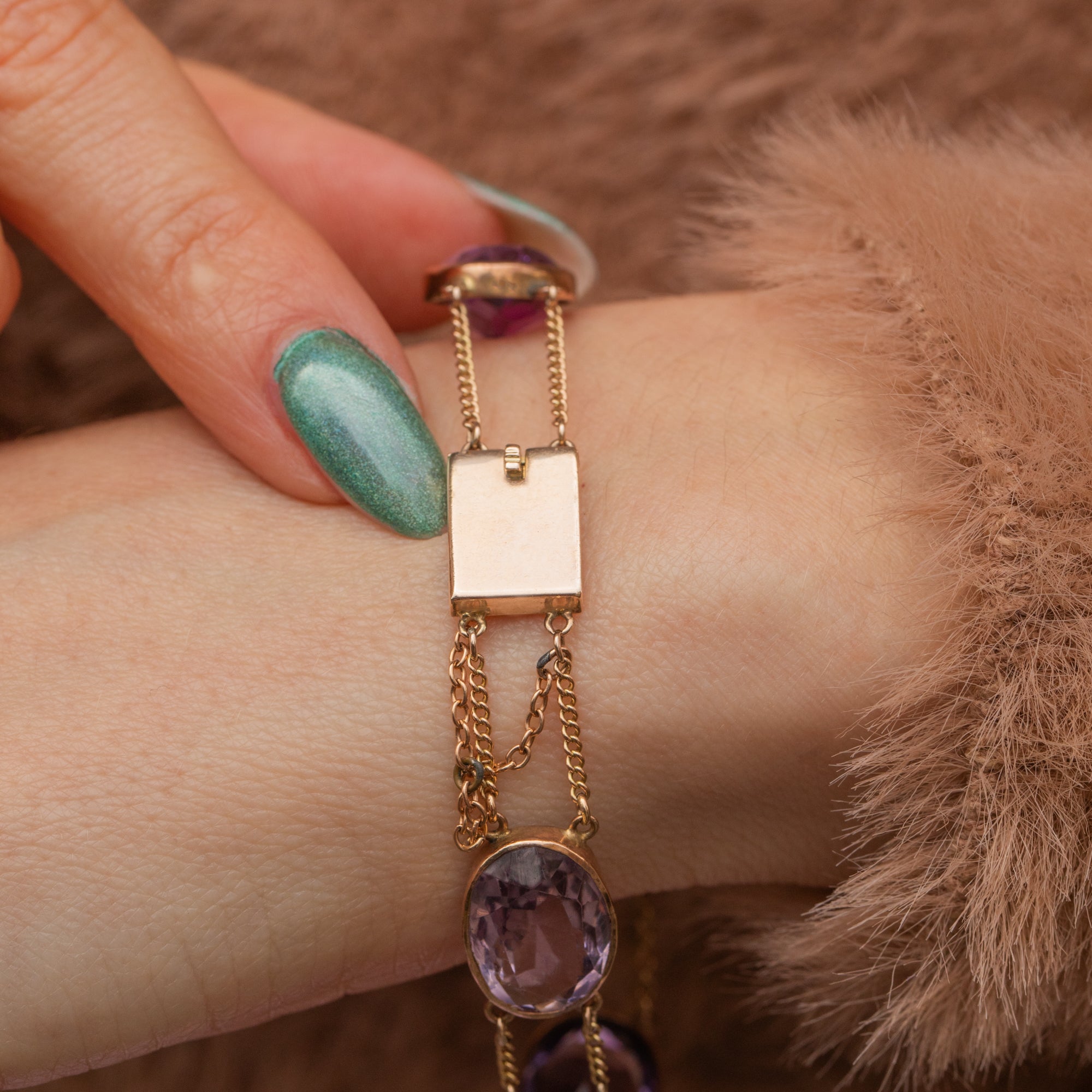 Fit for royalty, this antique 9ct Gold Amethyst bracelet is home to six vibrant oval-cut Amethysts with a total spread of 28.00ct!