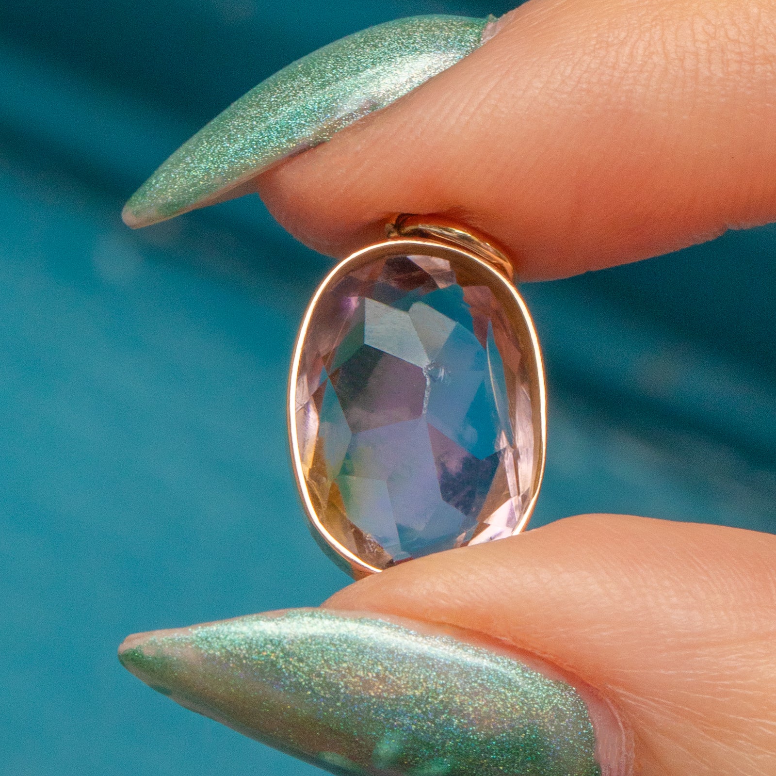 We can smell the lavender just by looking at this antique 9ct Gold Amethyst pendant! Lilac hues dance between her fabulously faceted form, perfect for bringing a soft pop of colour to any attire.