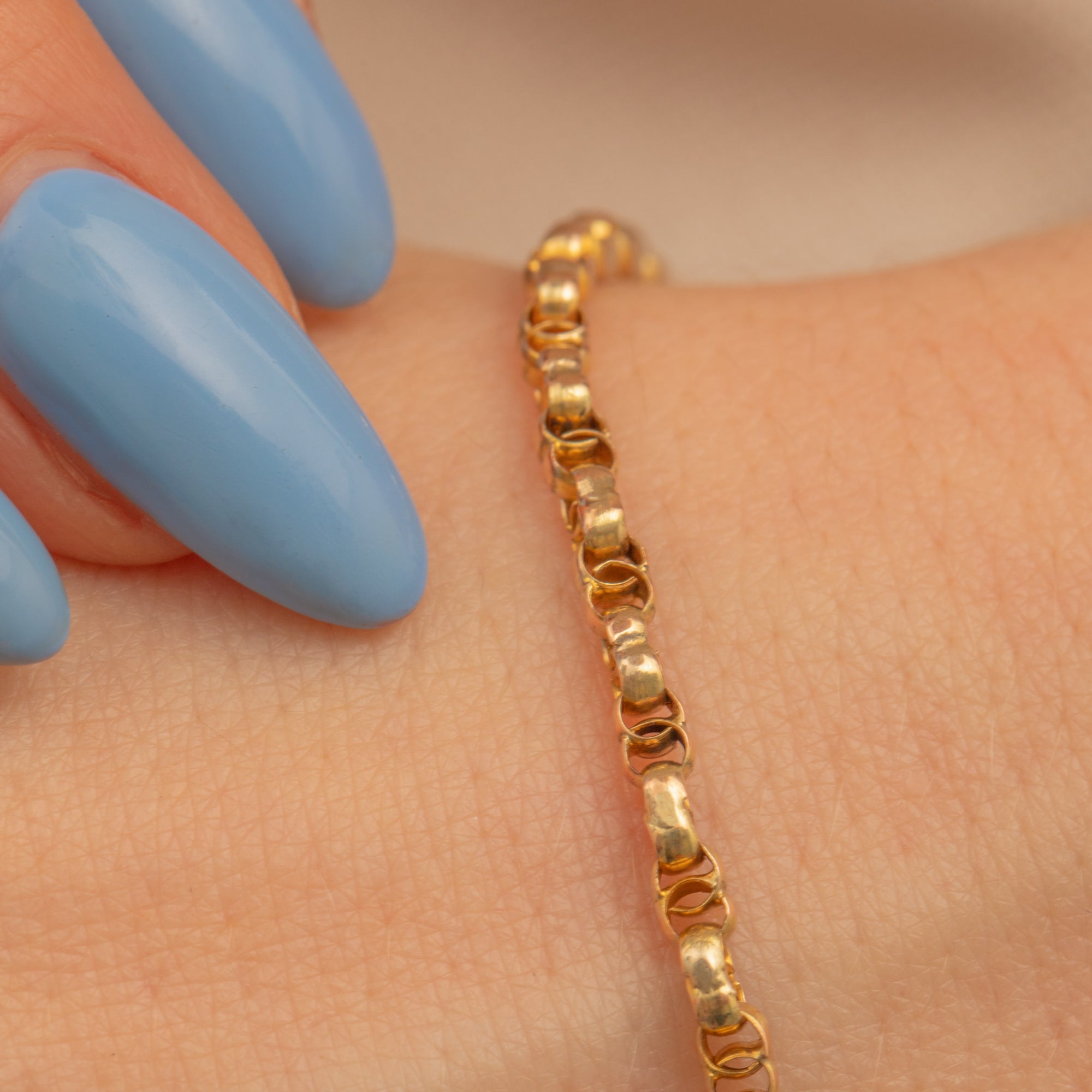 Composed of 2.3g of sumptuous solid 9ct Gold, this petite Victorian bracelet is dainty and sophisticated with uniquely formed belcher links for a decorative finish. She will certainly inject some classic Victorian charm into your everyday outfits!