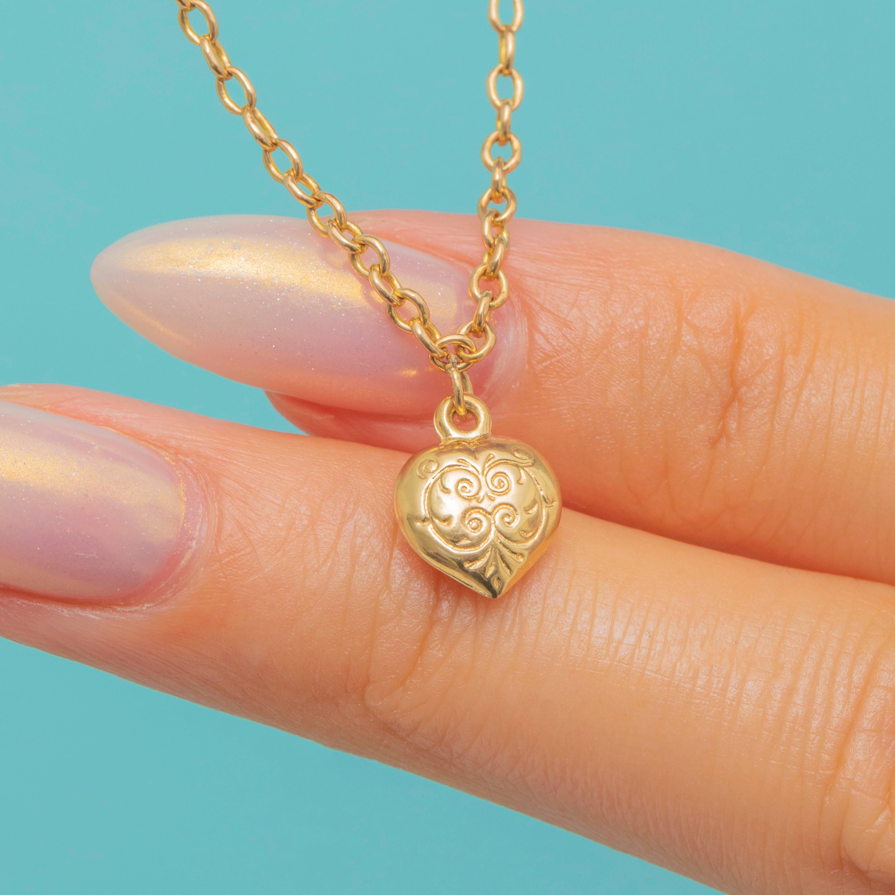 Crafted in 9ct Gold, the heart charm is finely engraved and retains a soft, polished finish. The bracelet’s petite size and elegant design make it a sweet and wearable antique jewel.