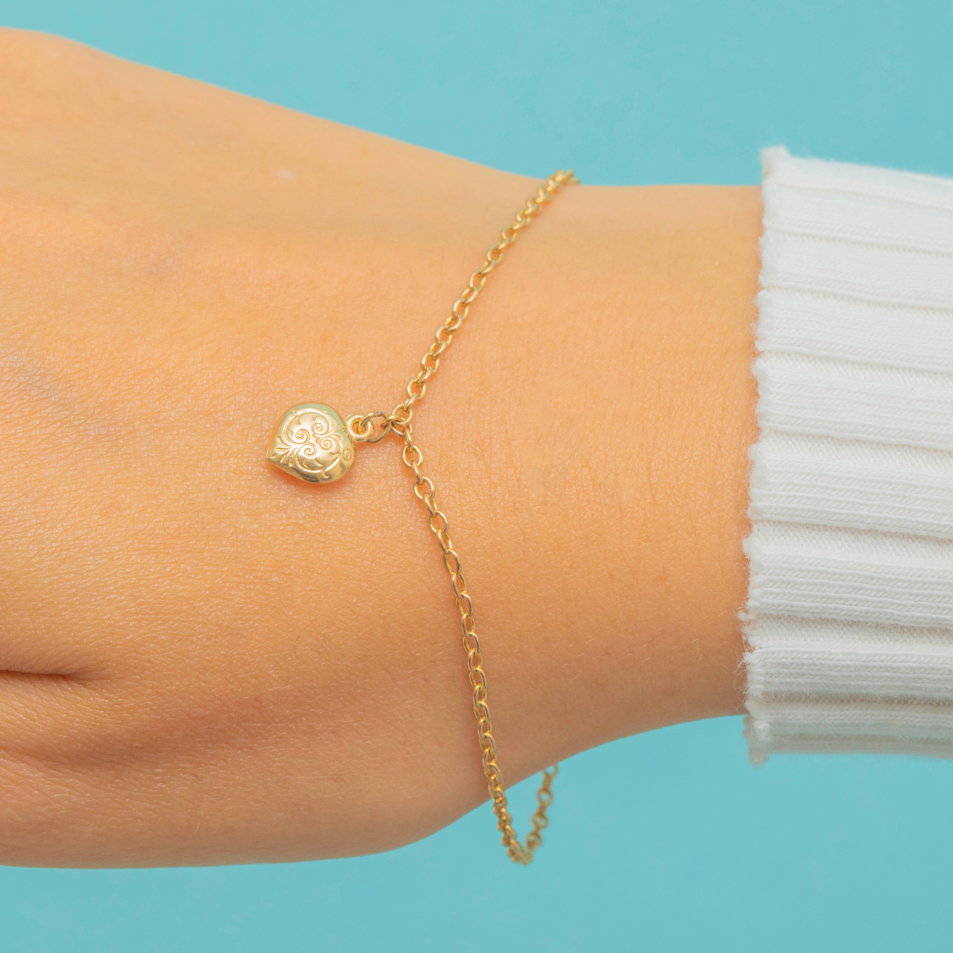 Antique 9ct Gold Bracelet with Engraved Heart Charm