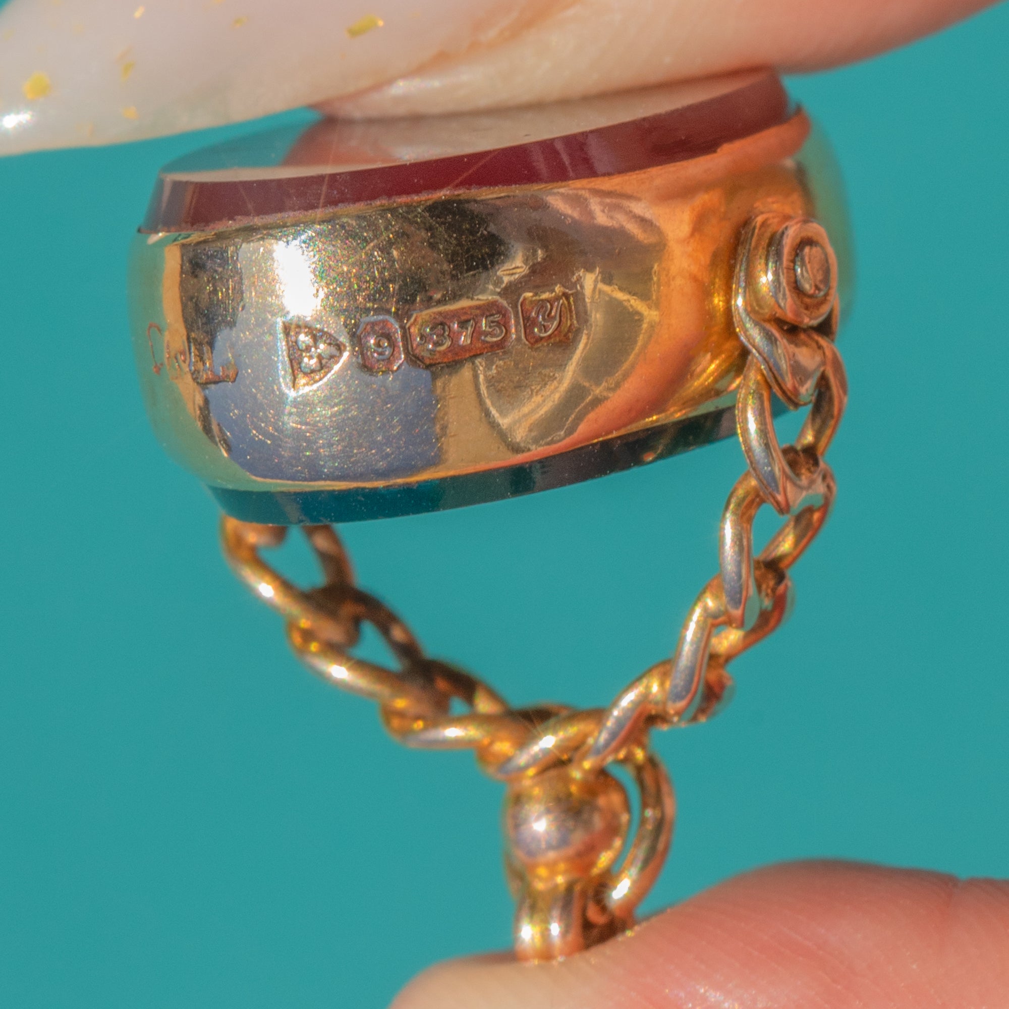 MATERIALS: Tests as 9ct Gold, Carnelian, Bloodstone.
