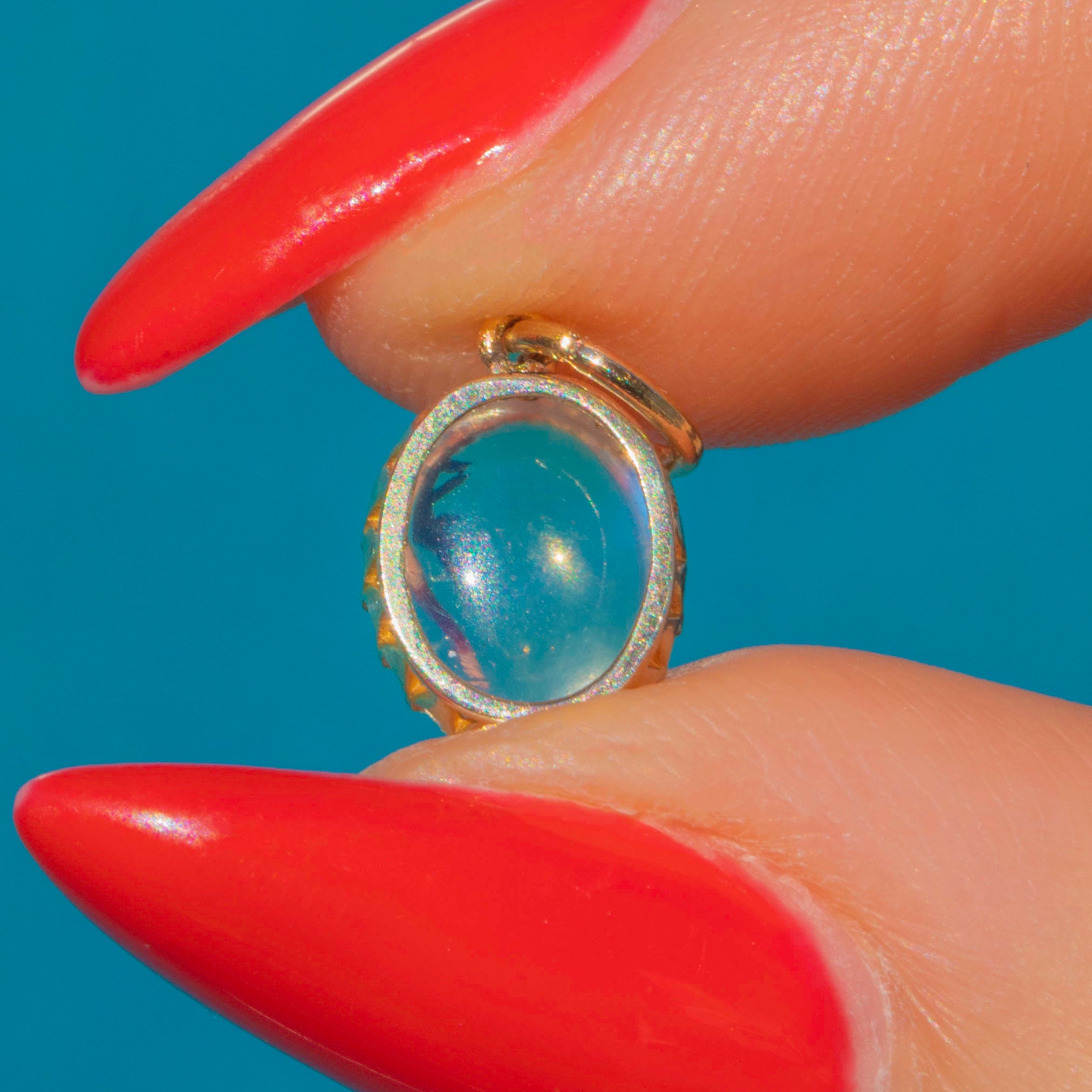 Petite and beautifully made, this charm is the perfect size to wear on a bracelet or suspended from a fine antique chain. Its timeless glow and symbolism of intuition and protection make it a meaningful addition to any collection.