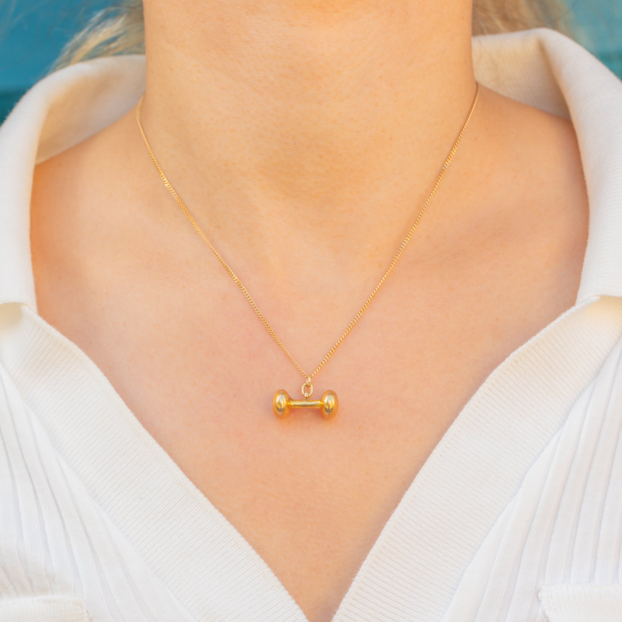 This antique Victorian T-bar charm has a wonderfully chubby, compact design. Crafted in 9ct Gold, the bar is slightly rounded, giving it a bold and tactile feel despite its petite size. Perfect for styling on a bracelet or charm necklace, this timeless design evokes the classic Victorian Albert chains it once accompanied.