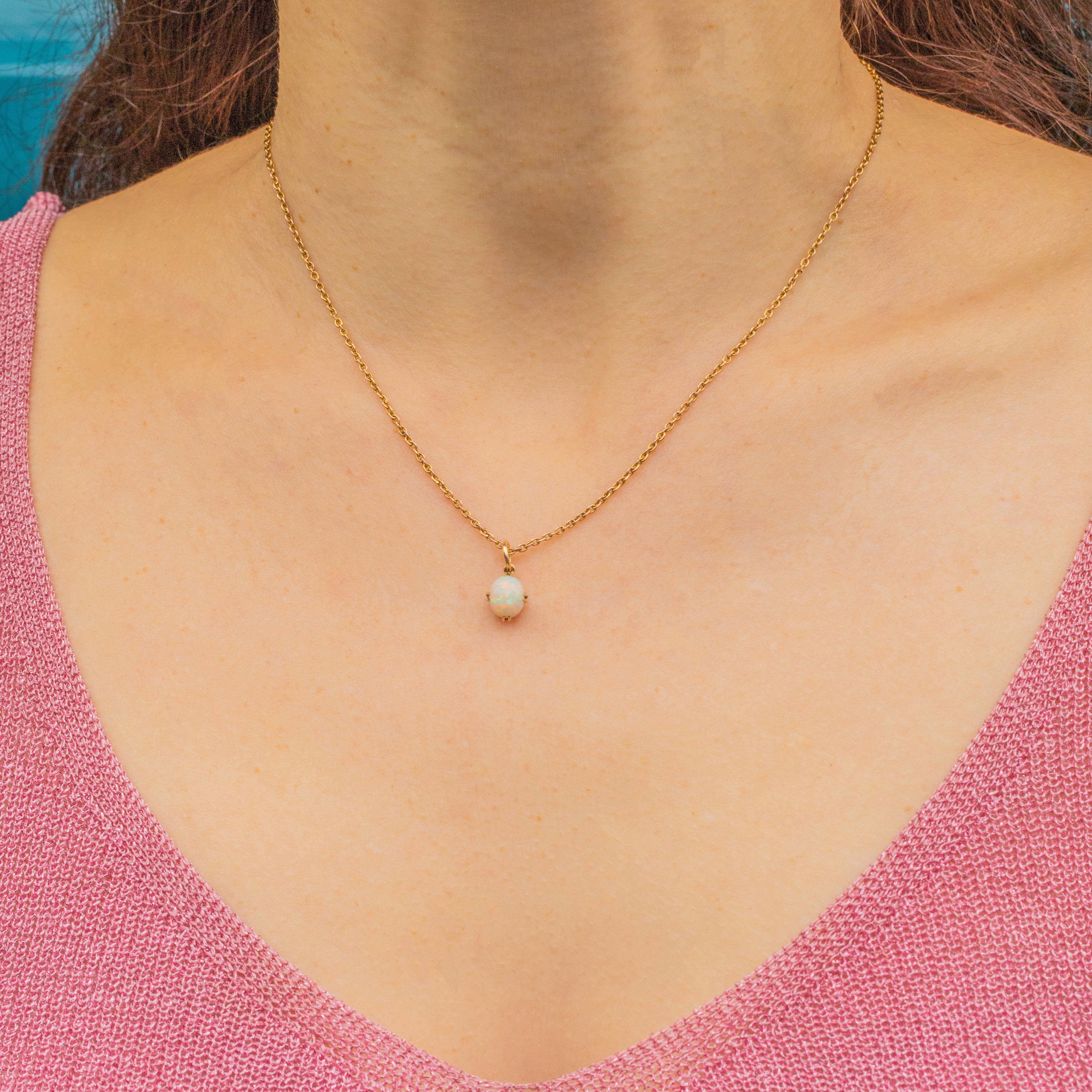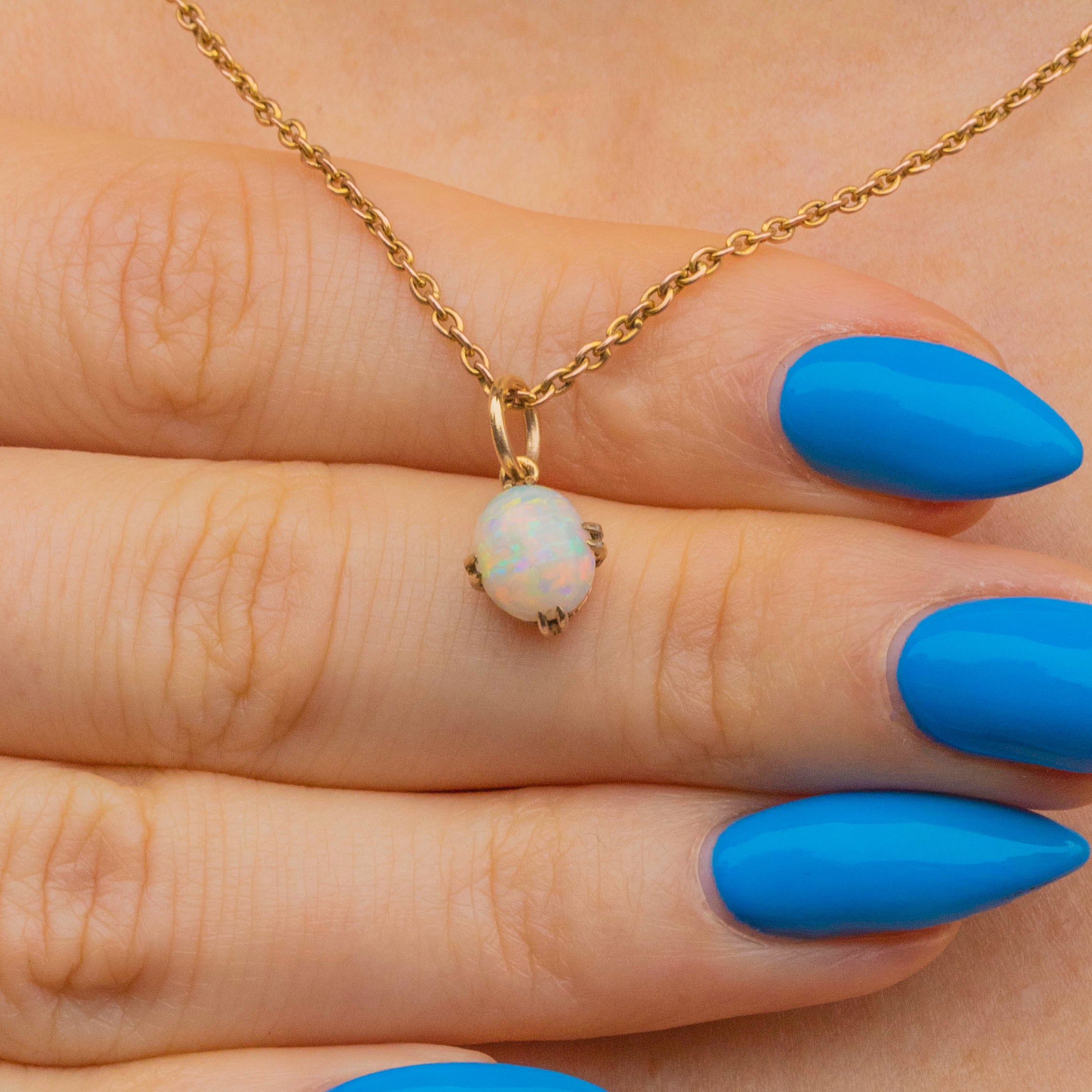 Suspended from a fine chain, this Victorian confetti Opal charm is the perfect versatile piece to add to your collection!