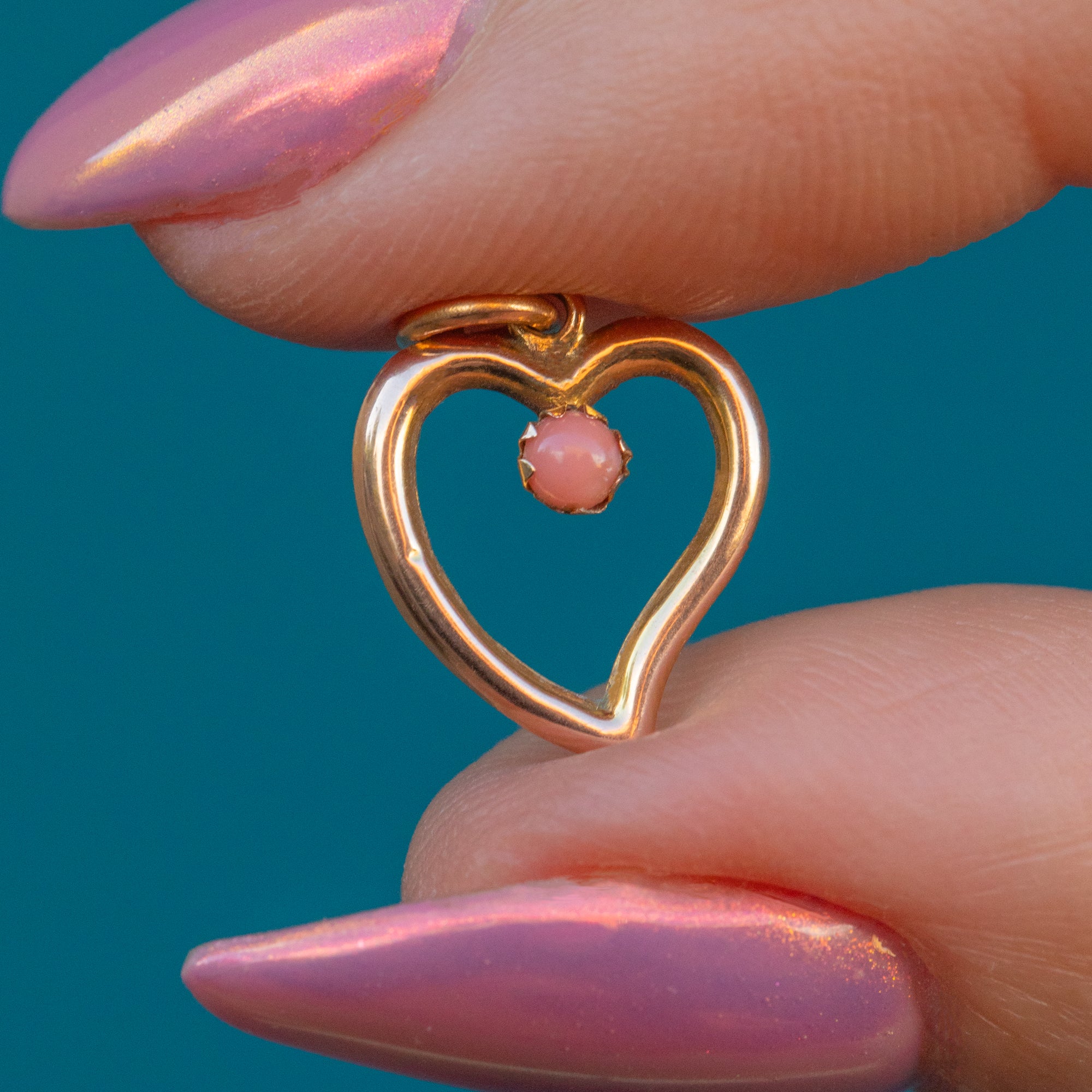 This exquisite antique 9ct Gold Coral witches heart charm is a rare and enchanting piece!