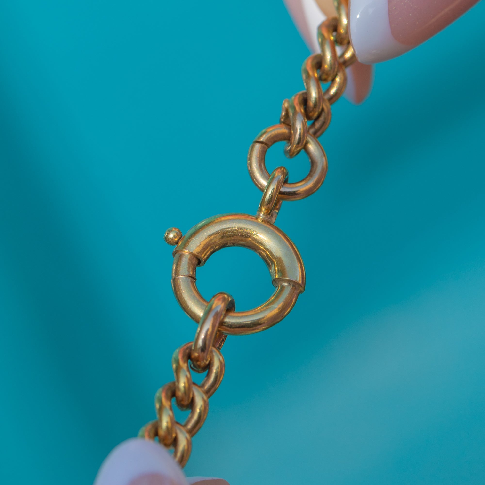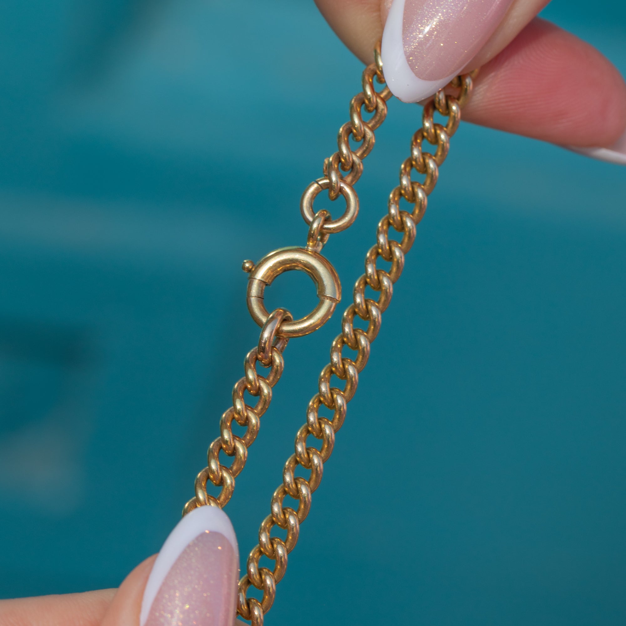 This antique 9ct Gold curb link chain is just what your collection has been missing! Crafted with 25 grams of delicious solid 9ct buttery Gold, this piece is an elegant antique chain for your collection.