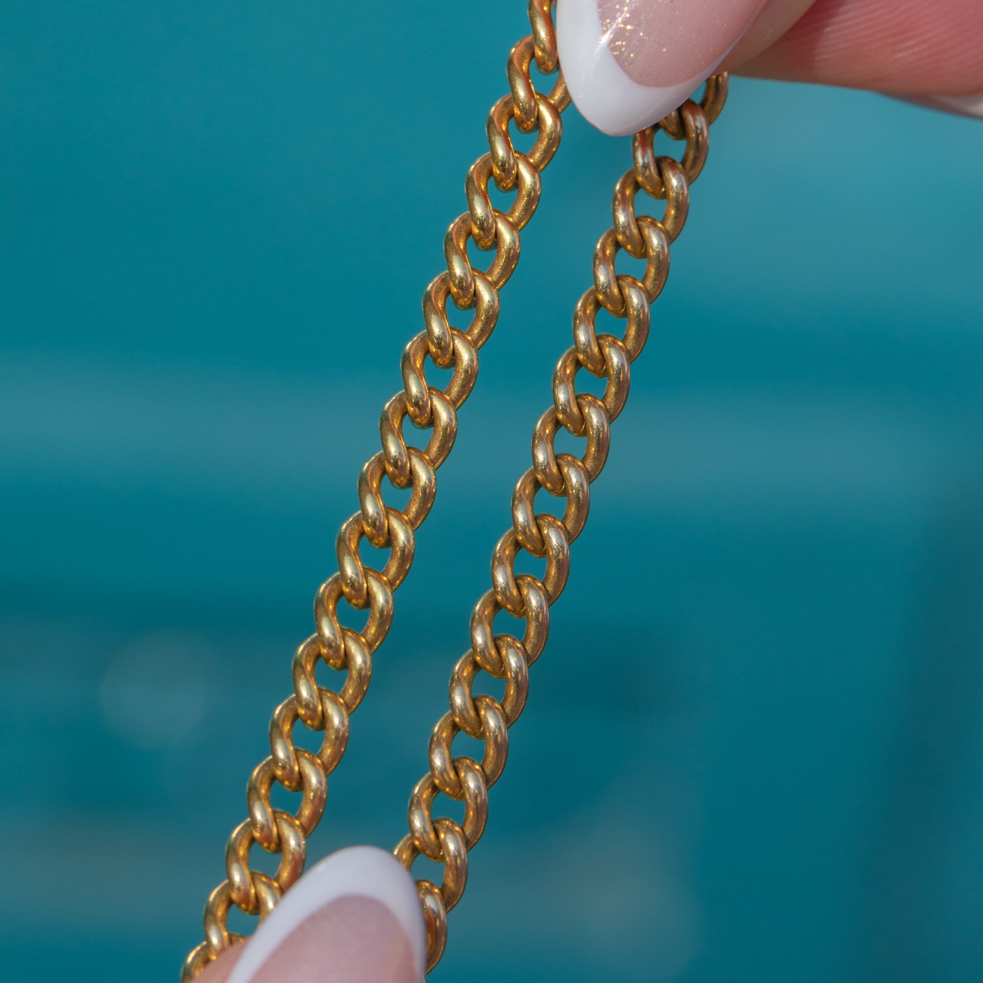 EXCELLENT: This antique 9ct Gold curb link chain is in stunning condition throughout. All of the links are securely connected, and both the antique dog clip and bolt ring is in perfect working order.