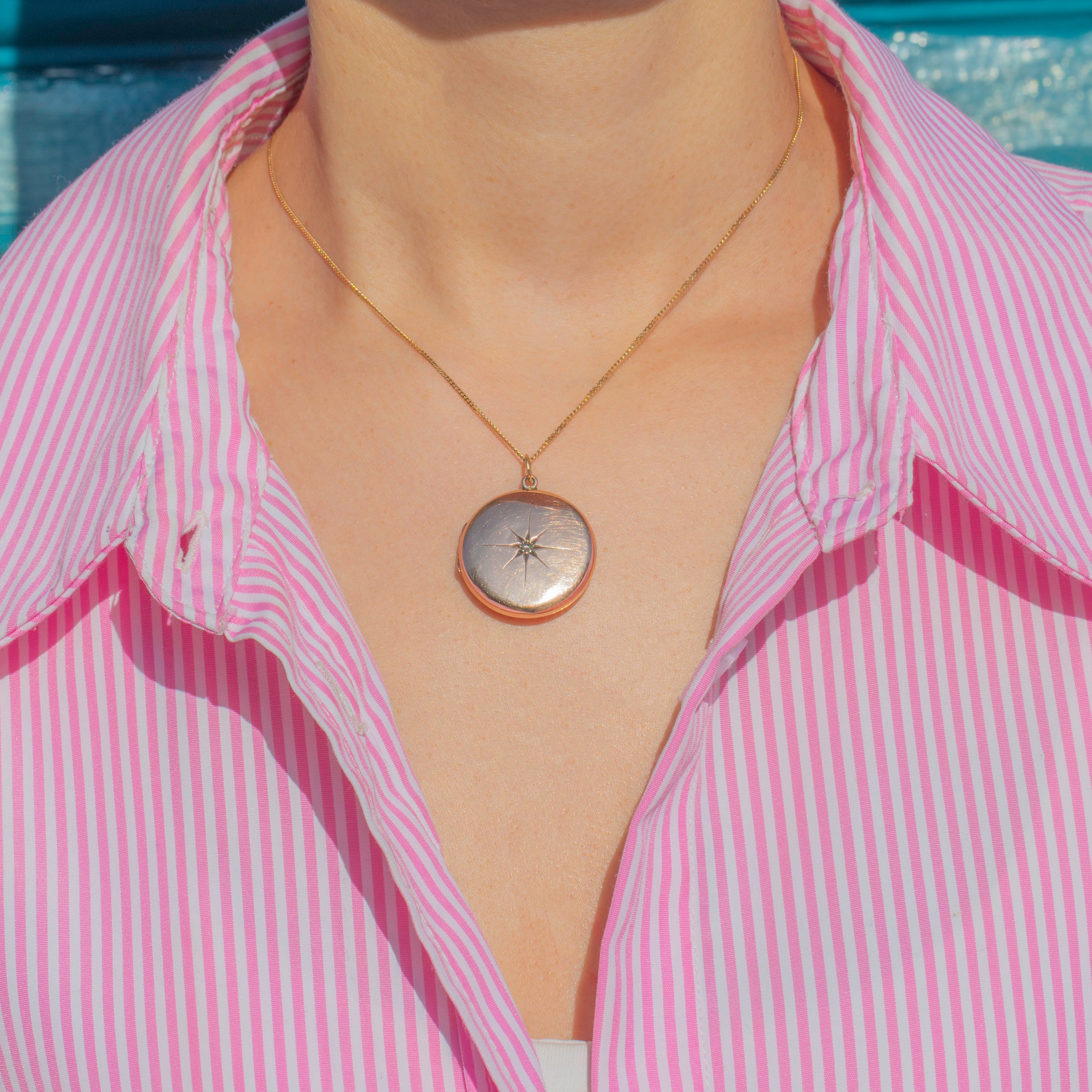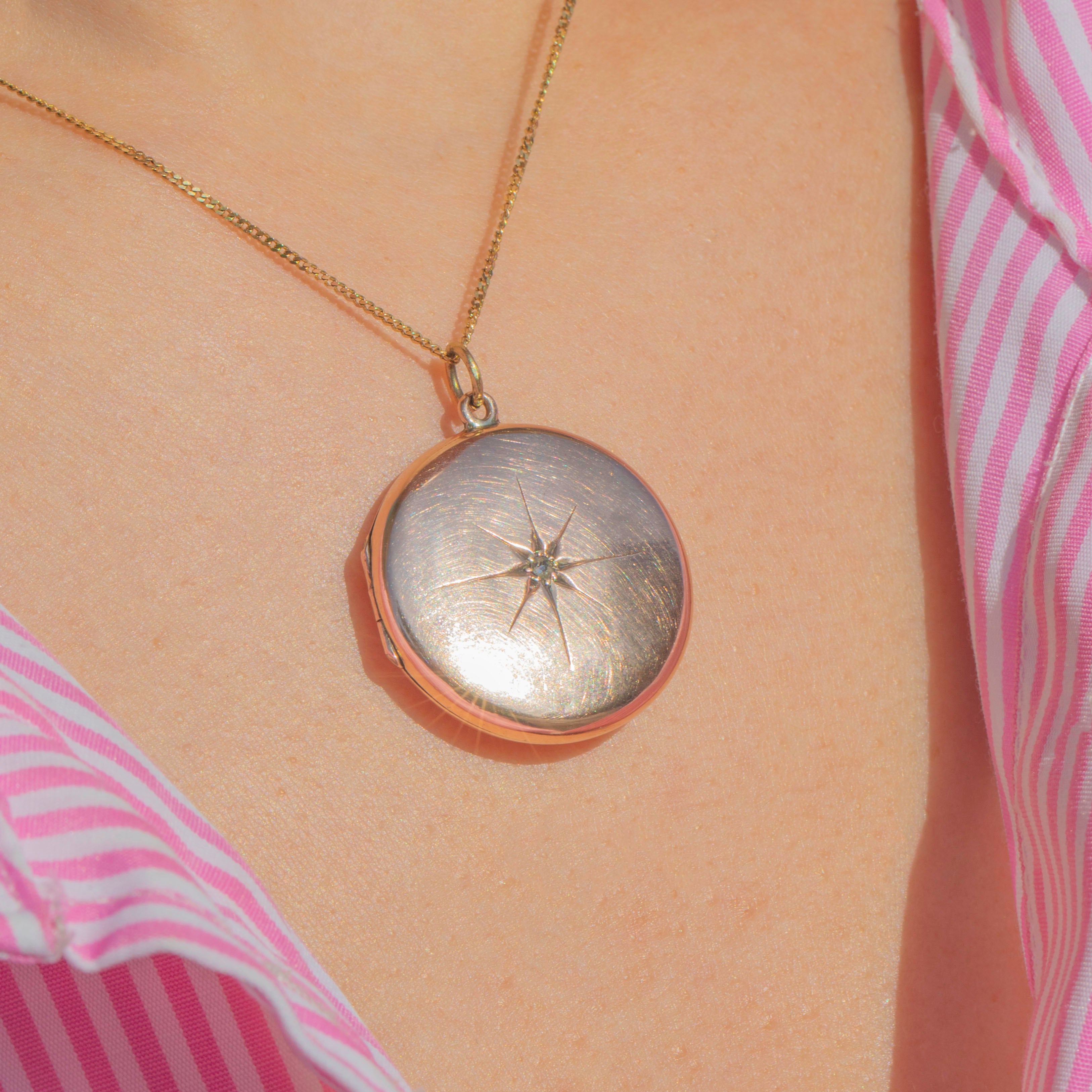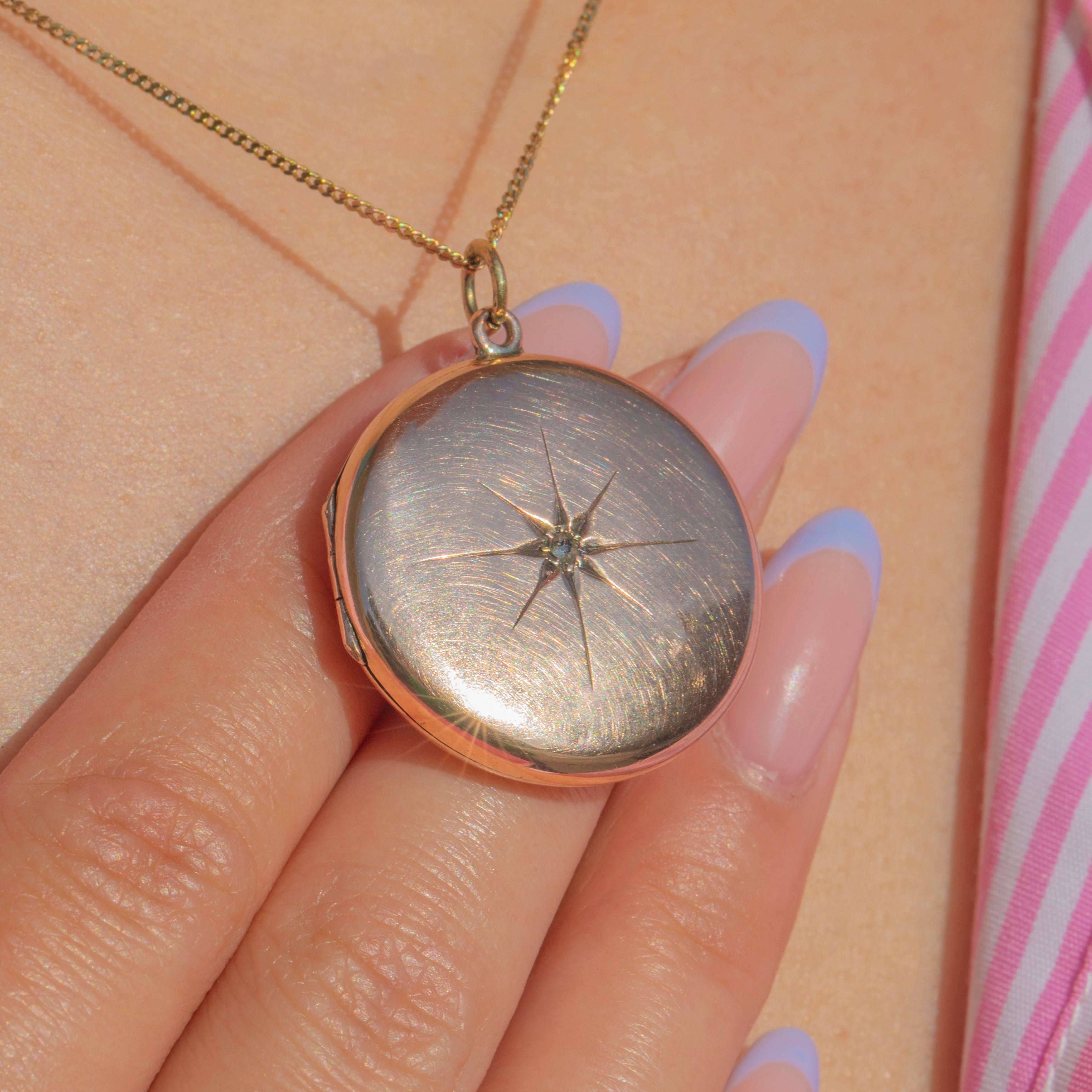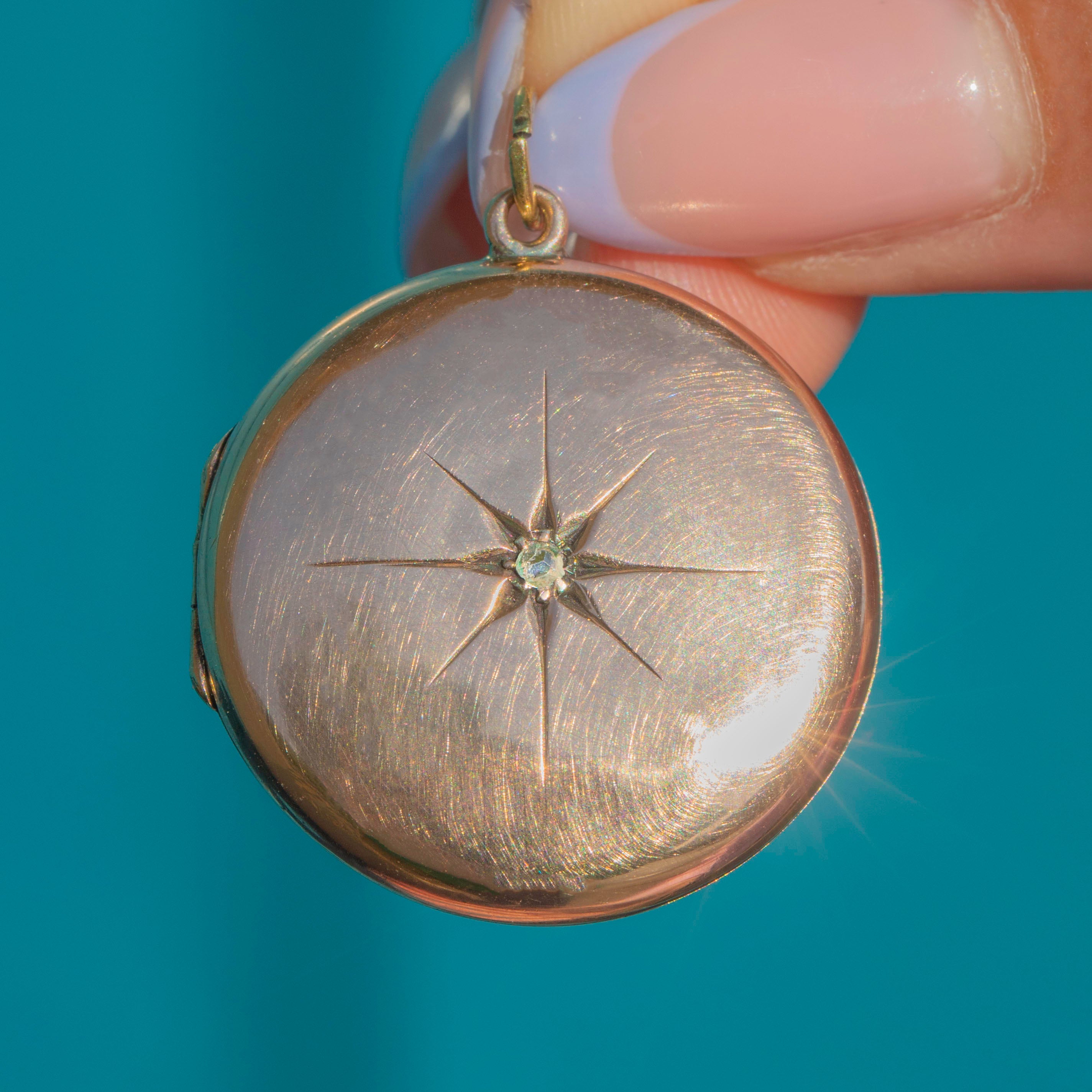This antique 9ct Gold Diamond star-set locket radiates celestial charm!