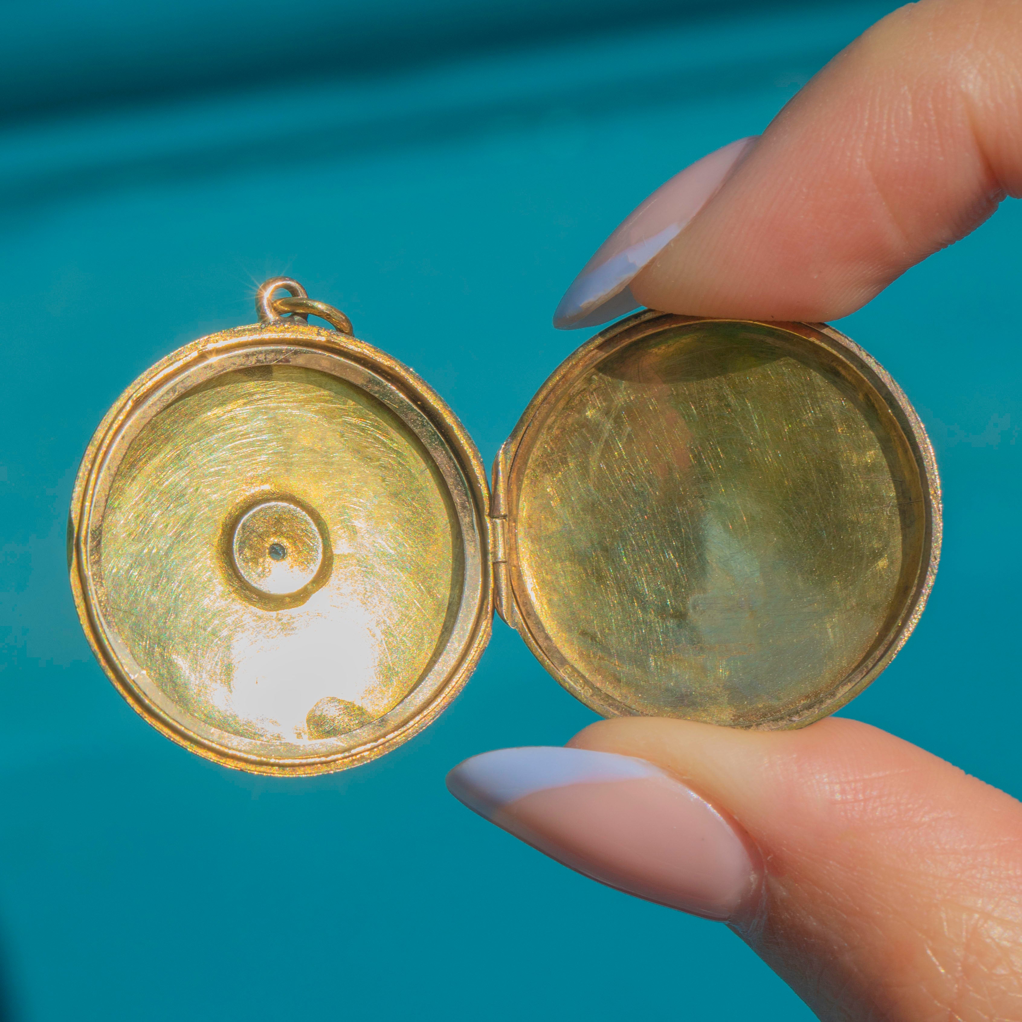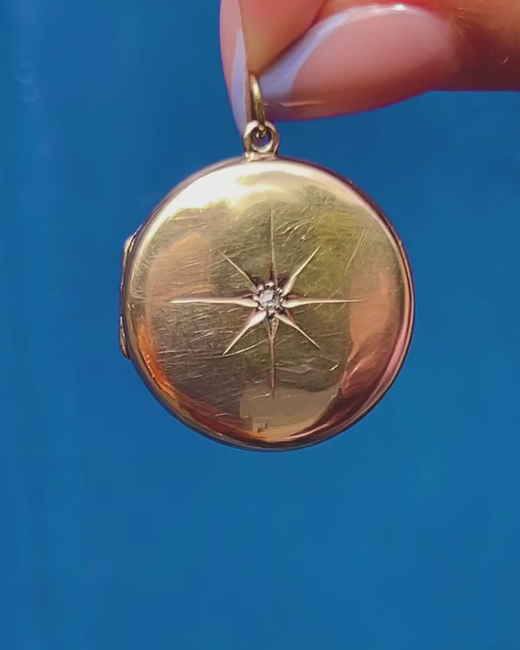 Antique 9ct Gold Diamond Star-Set Round Locket