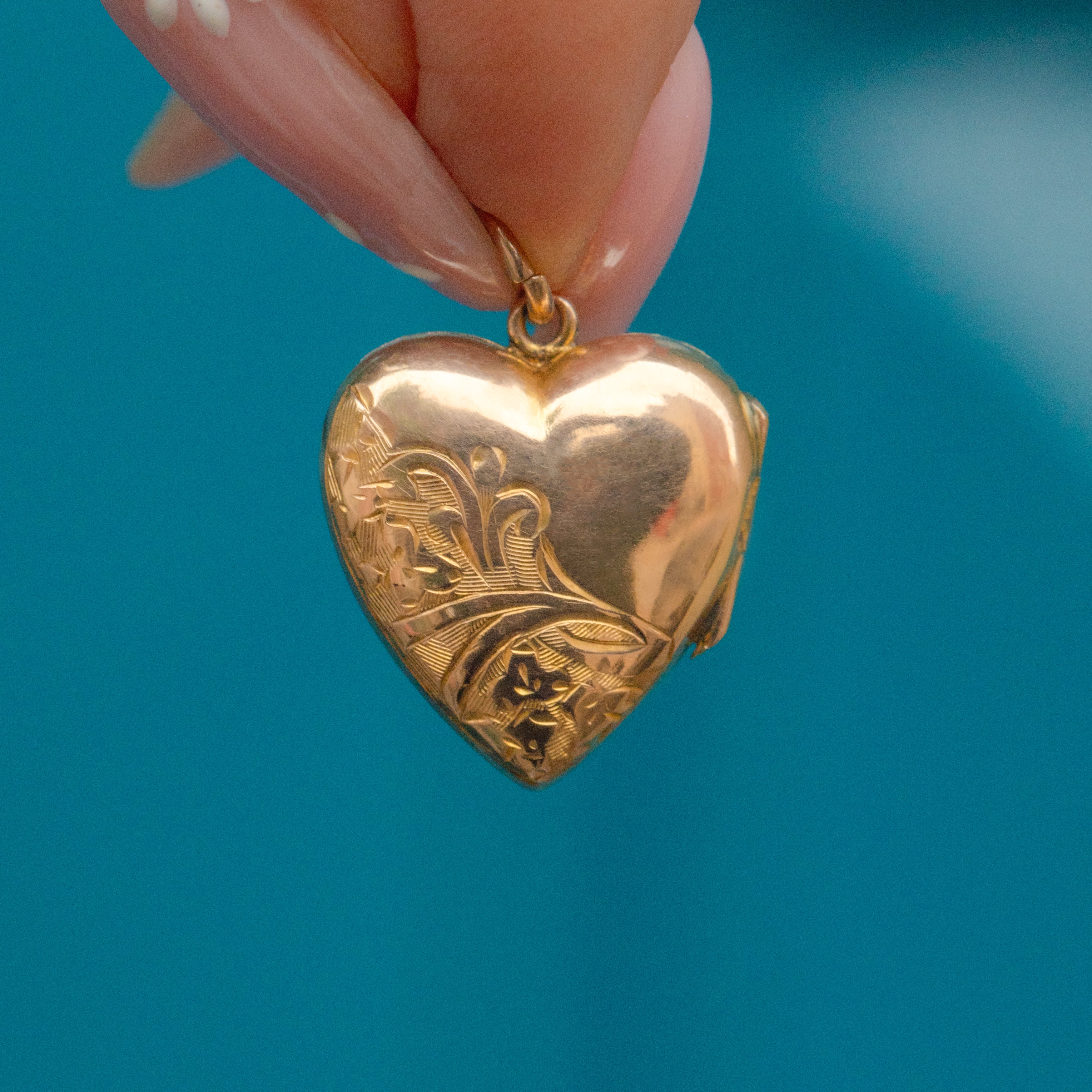 This antique 9ct Gold engraved heart locket is the epitome of romantic design. With a perfectly plump heart and intricately engraved details, this piece has everything you could want from a Victorian locket!