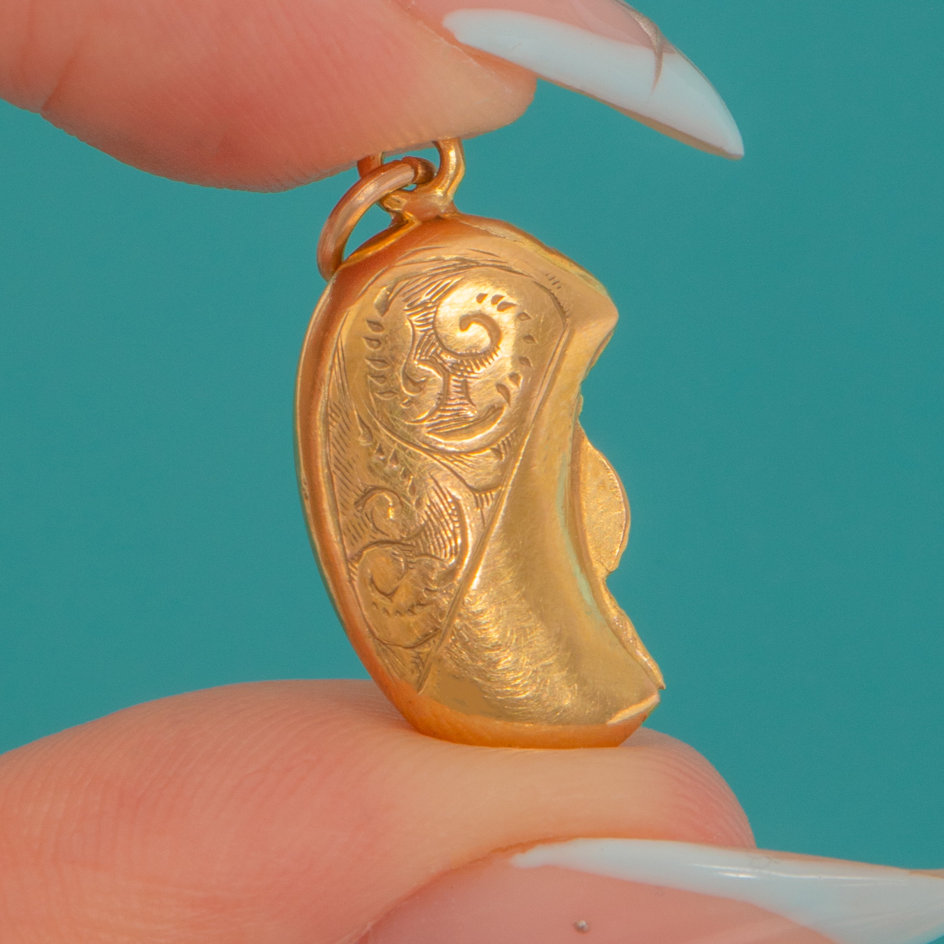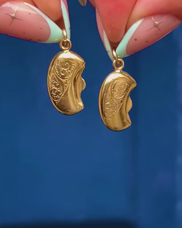 Antique 9ct Gold Engraved Lucky Bean Charm c.1907