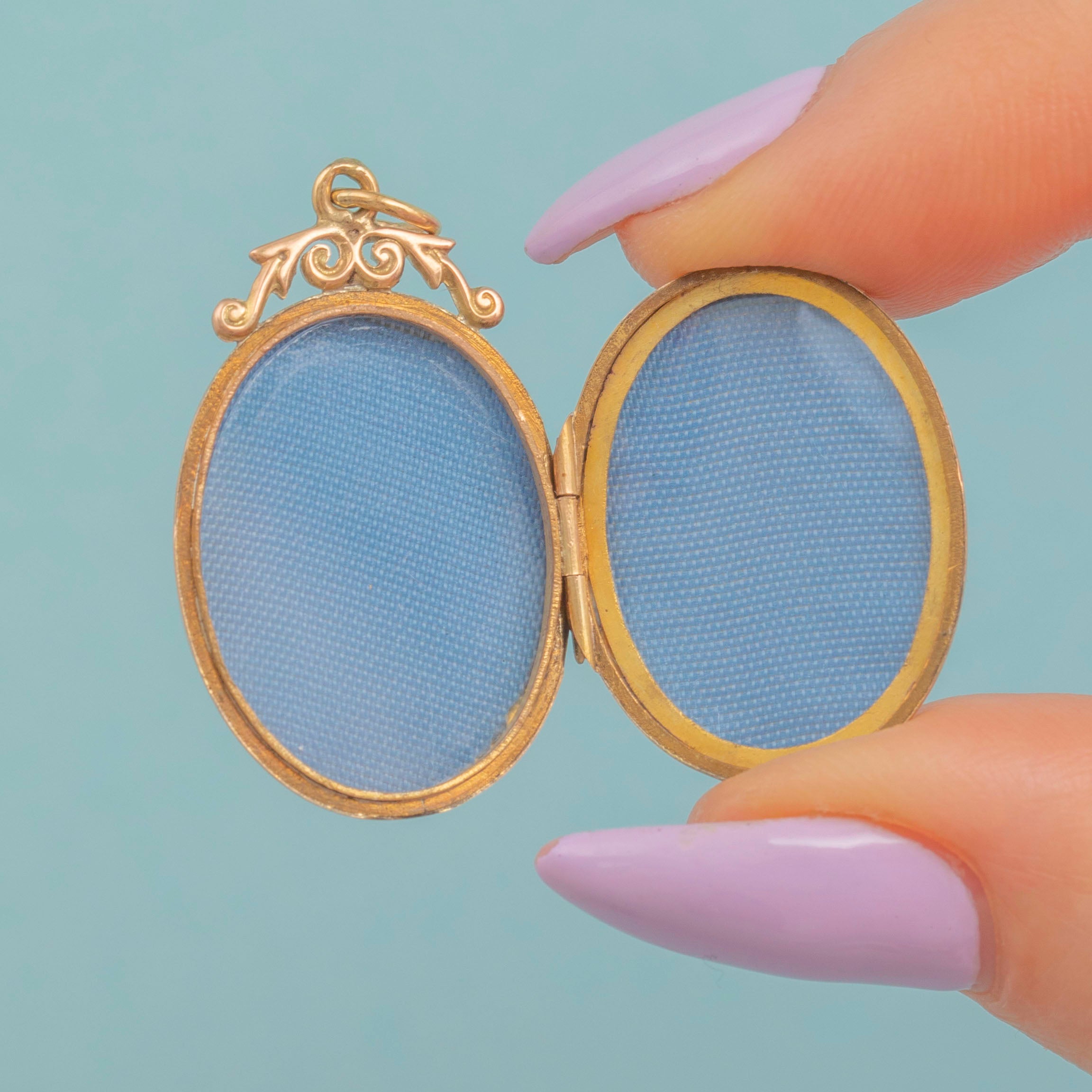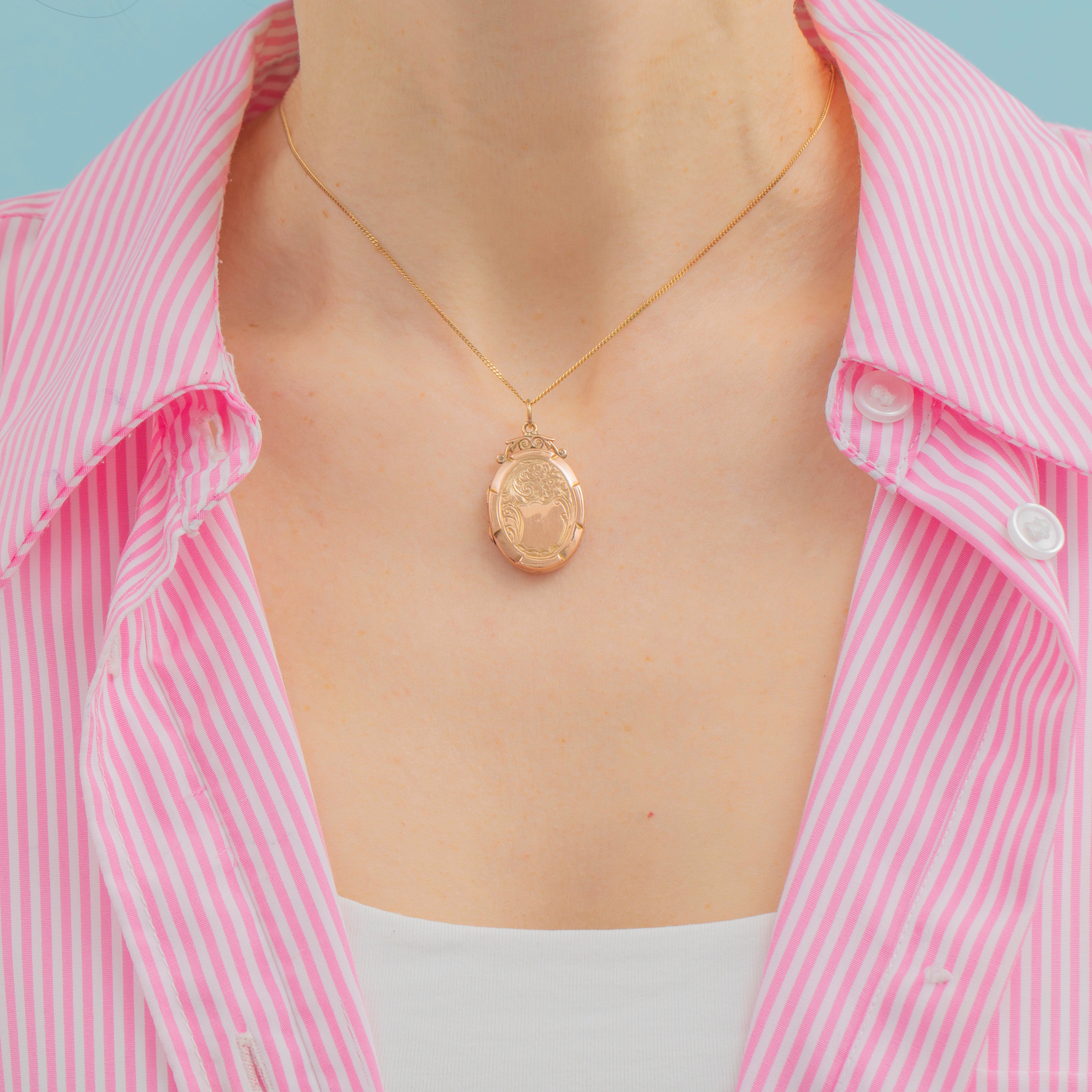 The blank cartouche on the front allows for a personal engraving to be added, and upon opening this antique locket you will find a new abode for two precious photographs, making this piece a wonderful sentimental gift choice!
