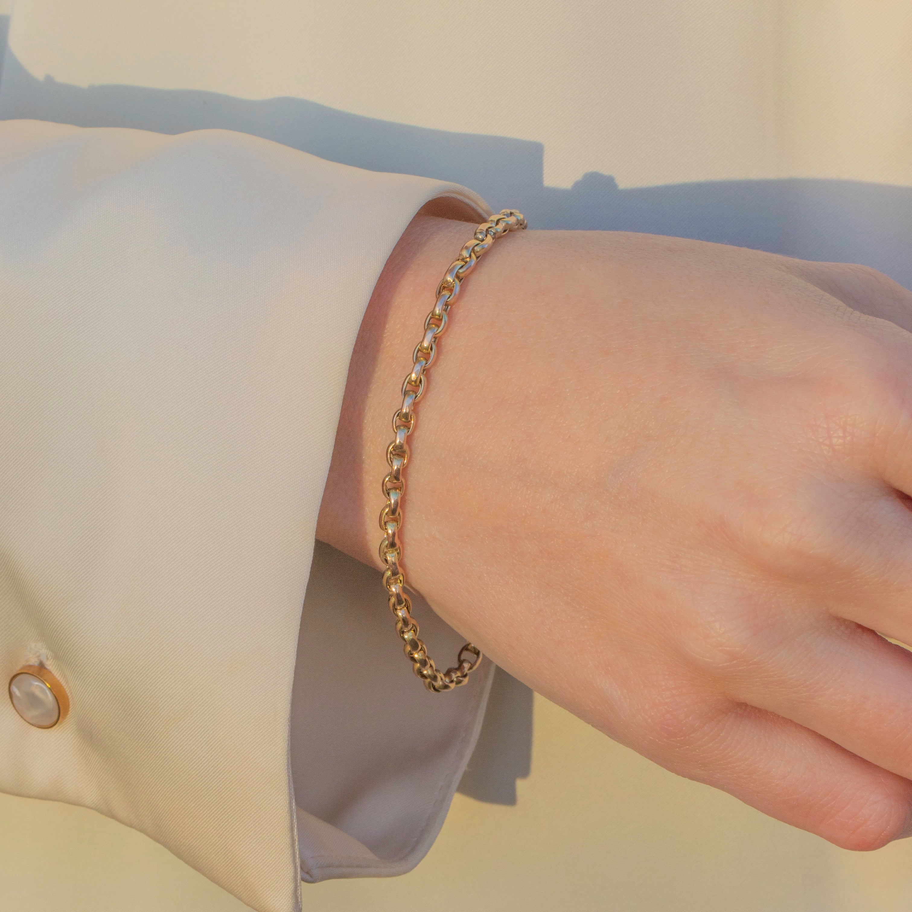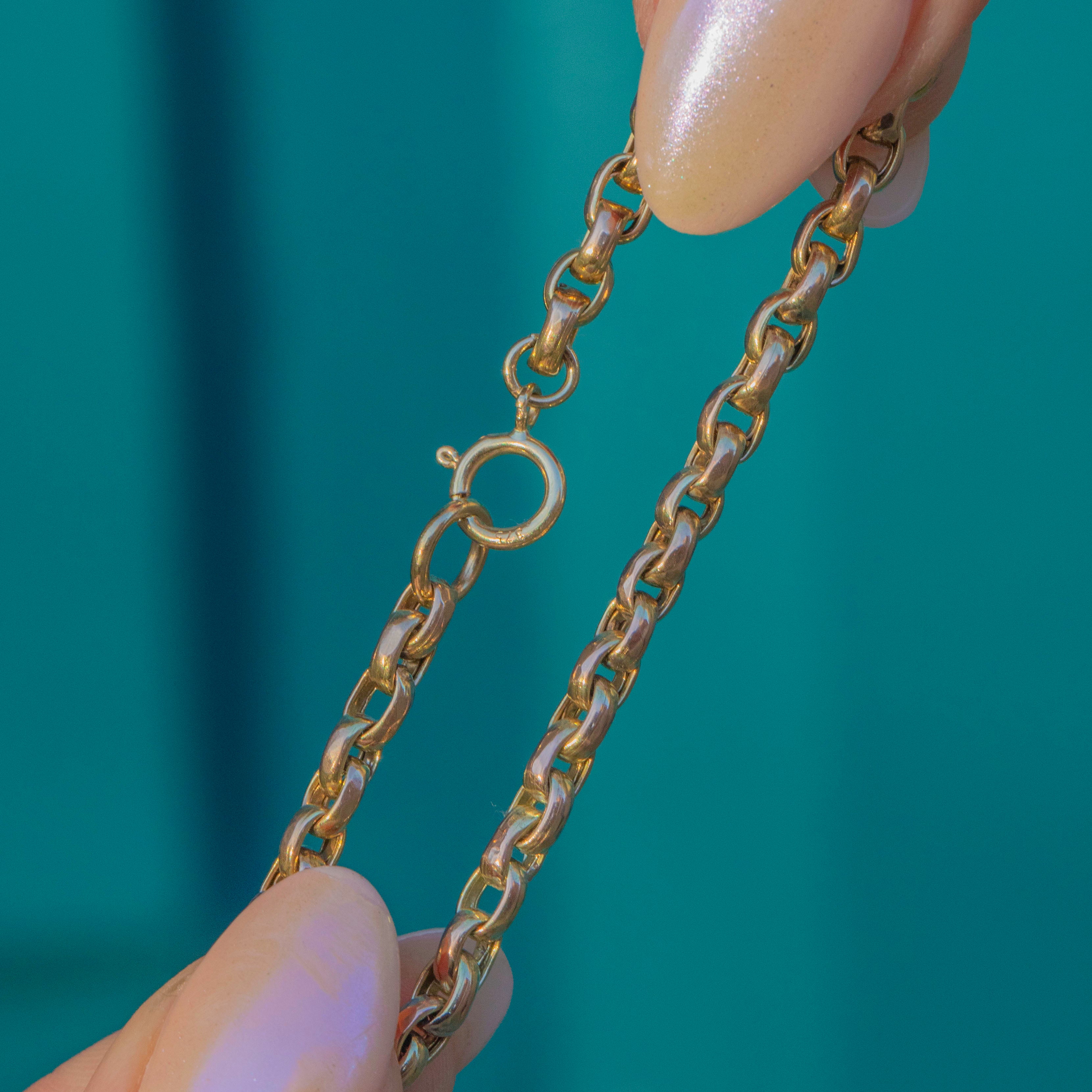 EXCELLENT. This antique 9ct Gold faceted belcher bracelet is in wonderful condition. Her jump-rings are large and the bolt ring fastens securely so you can wear her with confidence. Adorn your wrist with this gorgeous Gold treat!