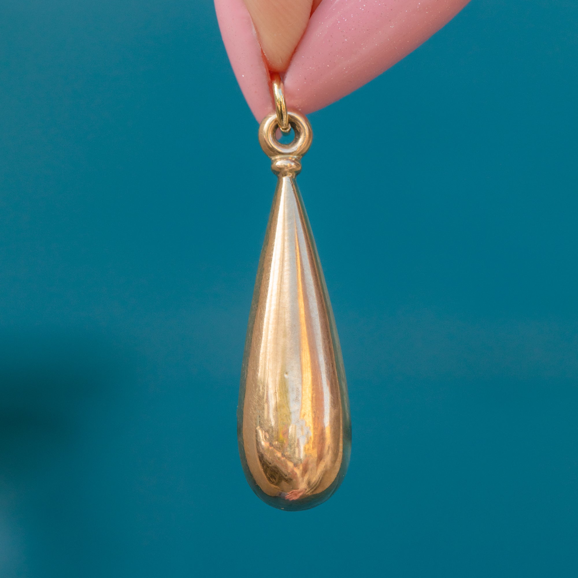 EXCELLENT: This antique 9ct Gold floral torpedo drop pendant remains in excellent condition. The Gold has a warm, rosy glow with a bright, lustrous finish. There is some minor wear, mostly toward the reverse side, which does not detract from the overall beauty of the piece. Timeless and full of character, this pendant is sure to delight for years to come!