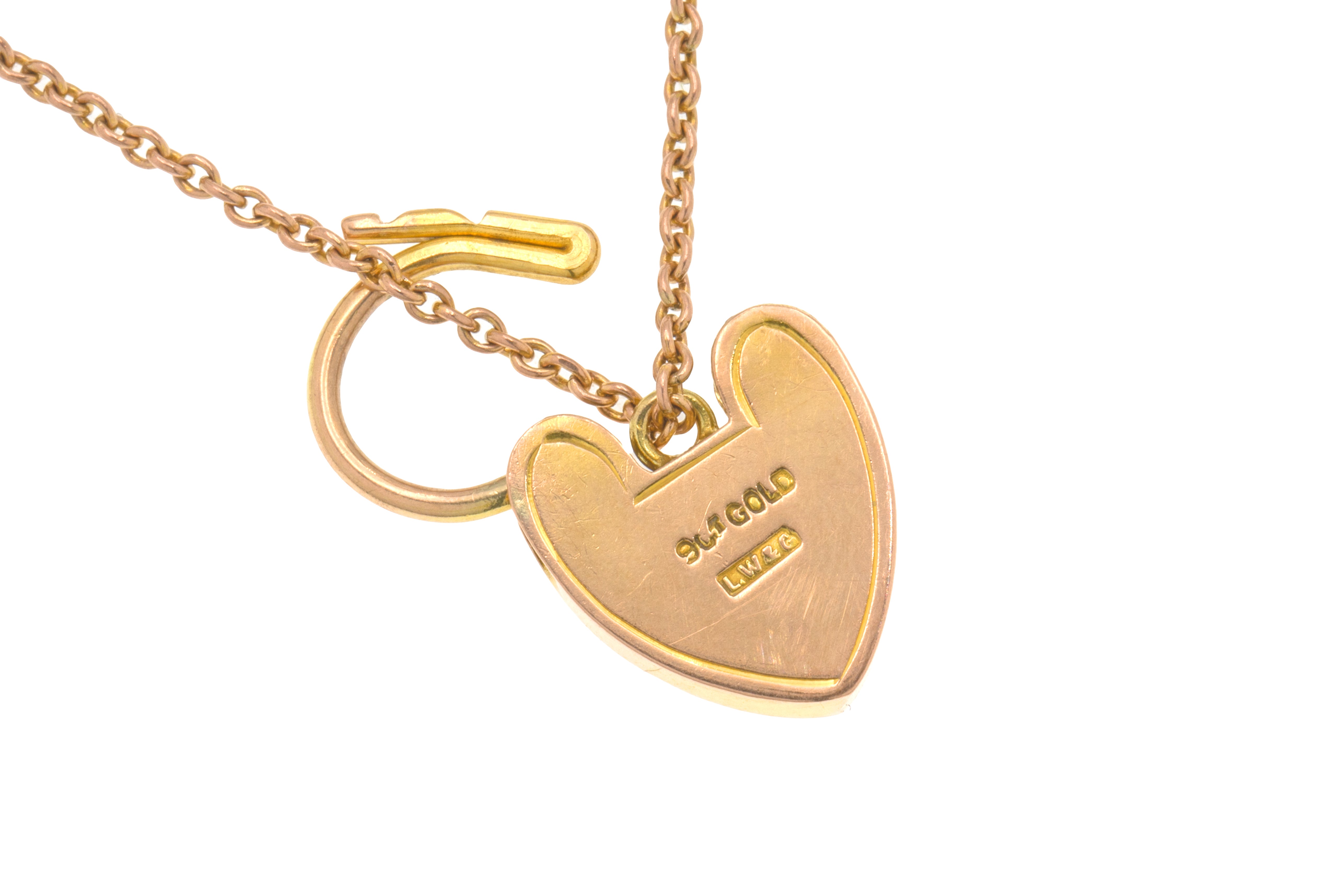 STAMPS: '9C' on every link, 'LW&G' makers mark & '9CT Gold' on back of heart padlock.