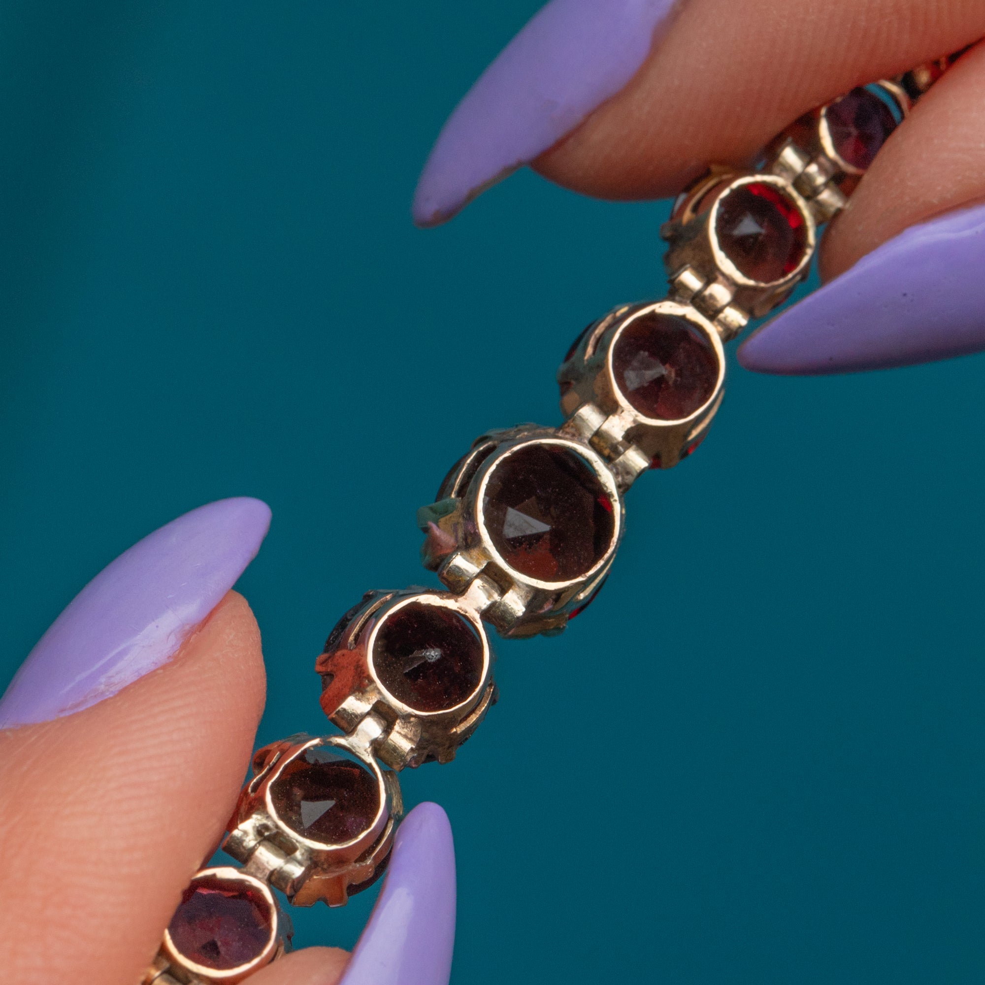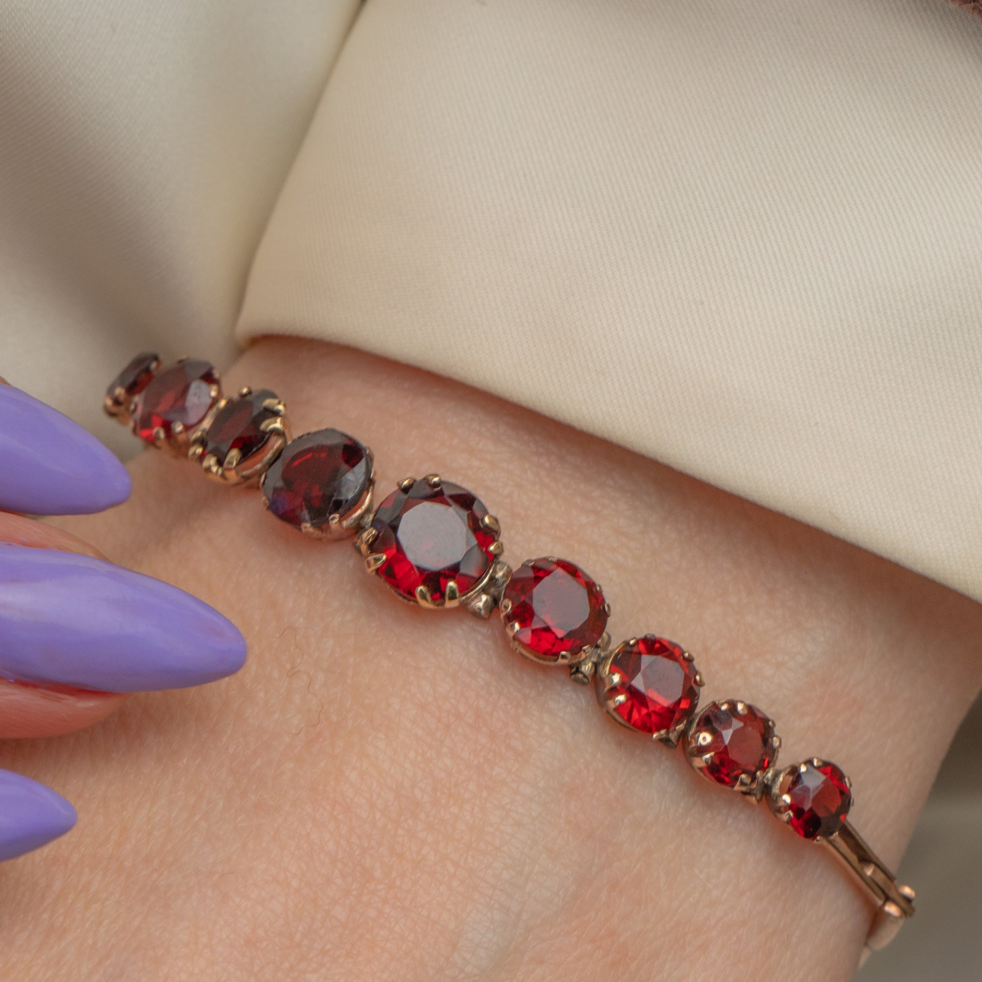 Antique 9ct Gold Graduating Garnet Bracelet, 8.20ct