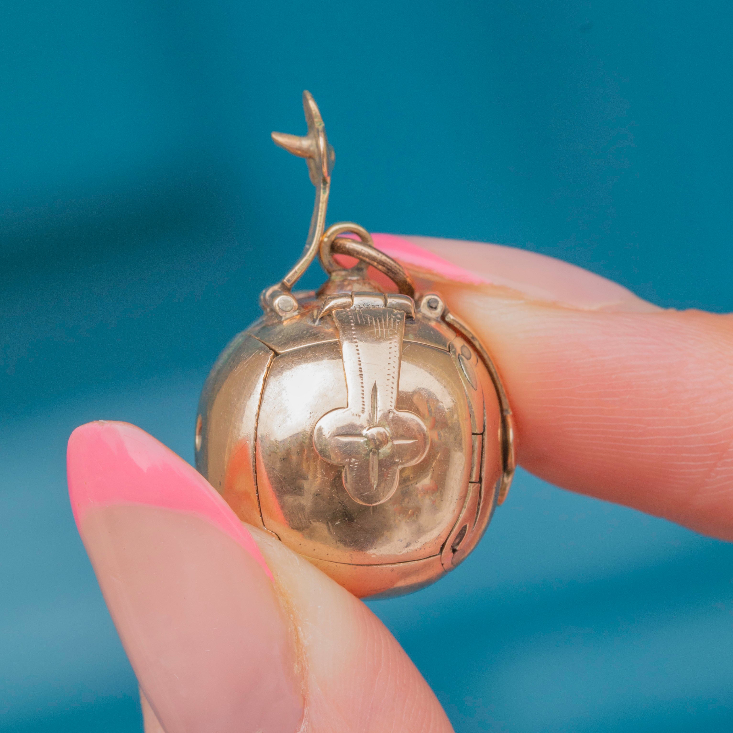 VERY GOOD: This antique 9ct Gold Masonic orb pendant is in very good condition. The Gold is a beautiful colour and quality, and while she has some wear to the surface, this is understandable considering that she is over 100 years old. The jump ring is securely fastened, as are all the hinges holding the orb in place. The engravings are all unique and strongly imprinted, so you won't find it too difficult to try and interpret them if you so desire!
