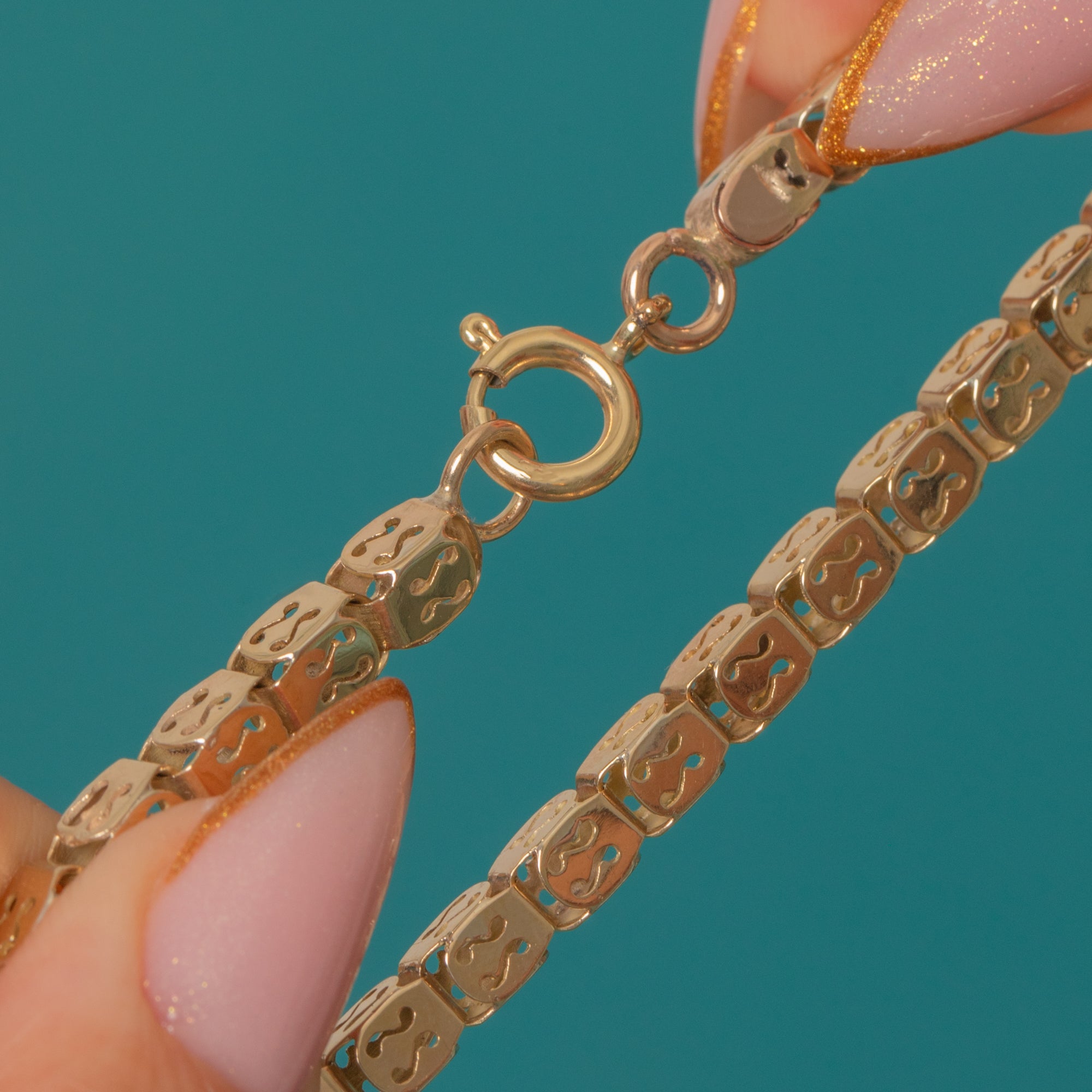 This antique 9ct Gold bracelet is a stunning example of late Victorian design, featuring a series of beautifully pierced links that flow gracefully around the wrist.