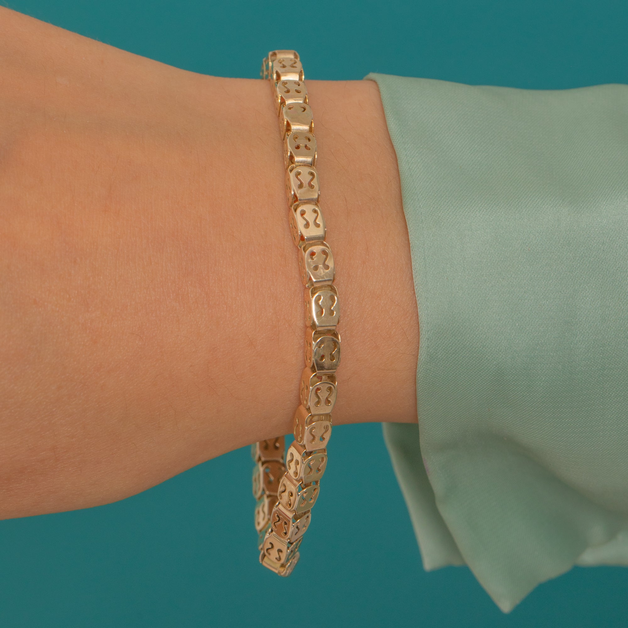 Each link is intricately shaped, allowing light to play through the openings and giving the bracelet a wonderfully elegant, airy feel.