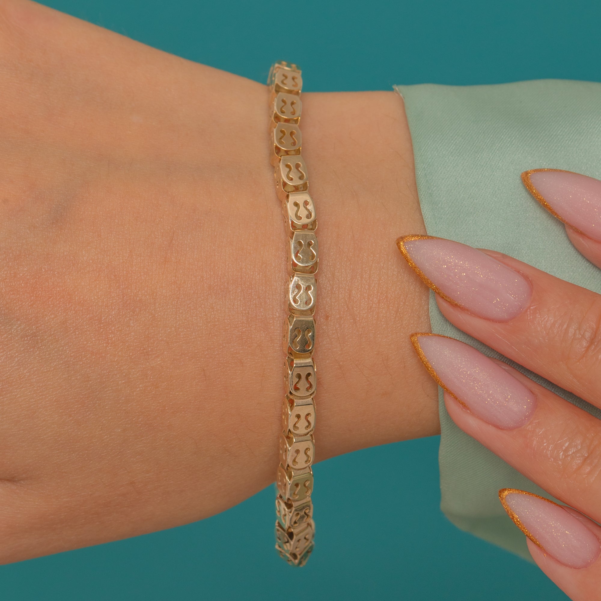 Crafted in rich 9ct Gold with a warm antique hue, this timeless bracelet layers effortlessly with other pieces or makes a refined statement worn alone.